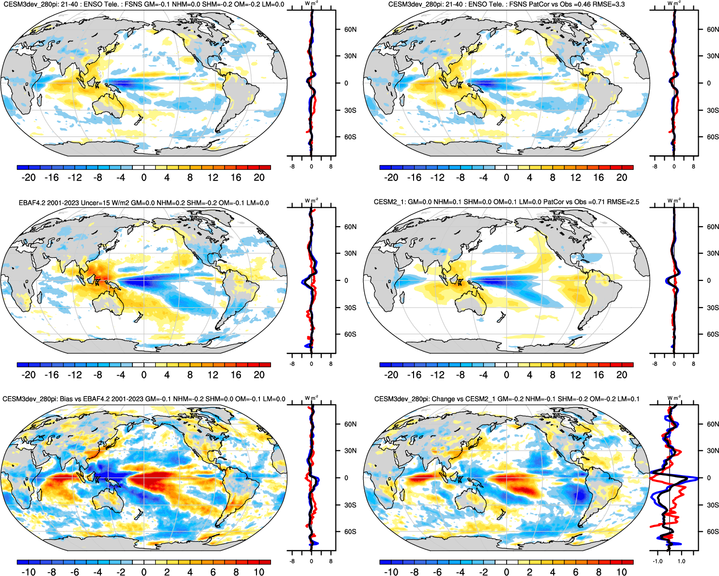 | FSNS | Annual 0.99 | JJA-DJF 0.99 | ENSO Tele 0.46 | DJF 0.98 | MAM 0.99 | JJA 0.98 | SON 0.98 |