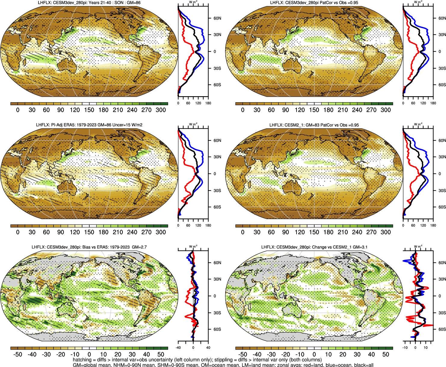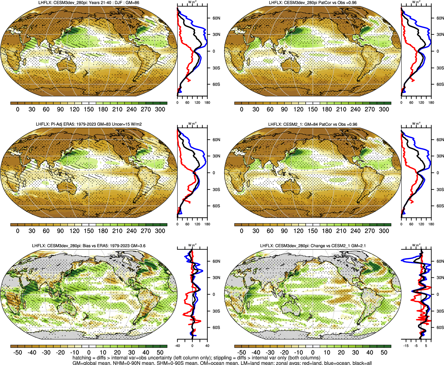 | LHFLX | OCEAN | LAND | LAND+OCEAN |
