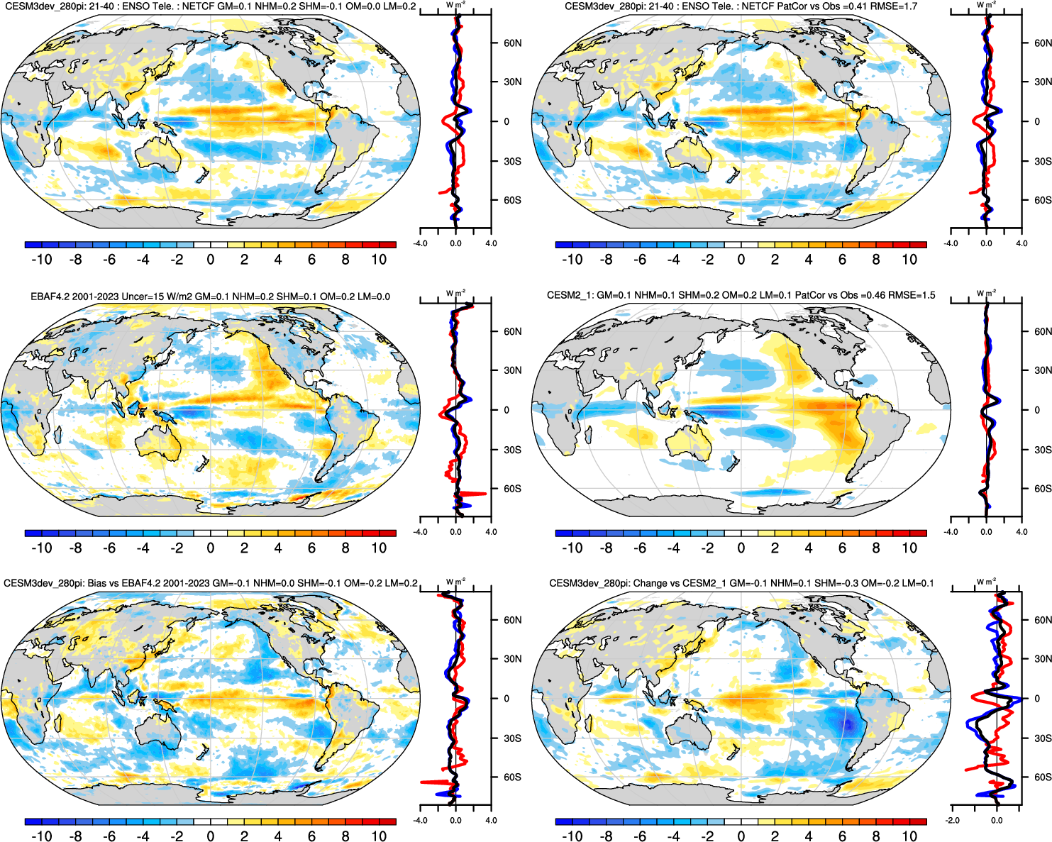 | SWCF 0.77 | Annual 0.90 | JJA-DJF 0.96 | ENSO Tele 0.46 | DJF 0.94 | MAM 0.89 | JJA 0.92 | SON 0.89 |