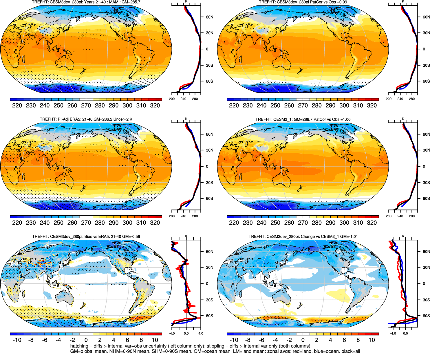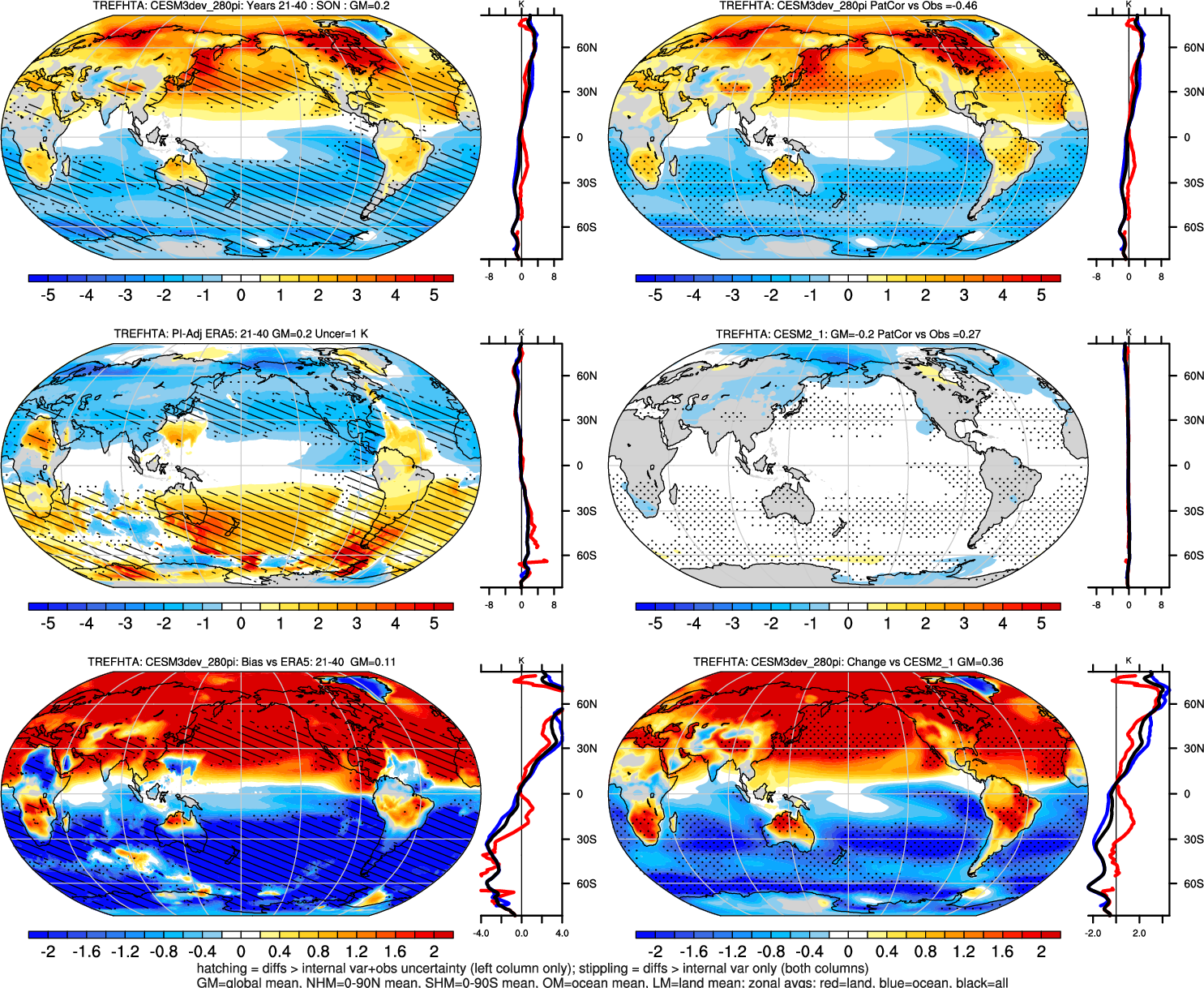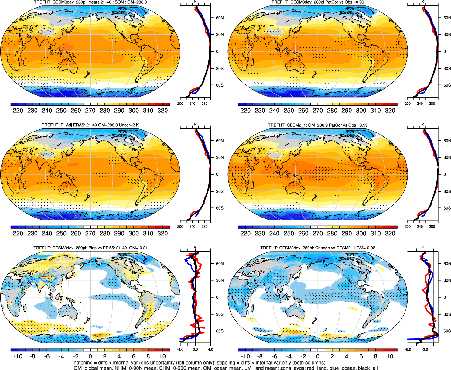| TREFHT | OCEAN | LAND | LAND+OCEAN |