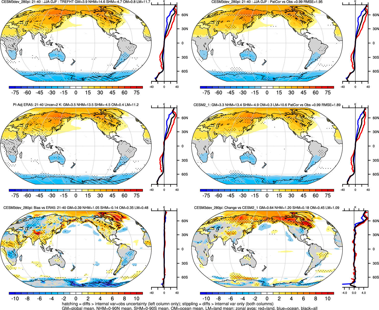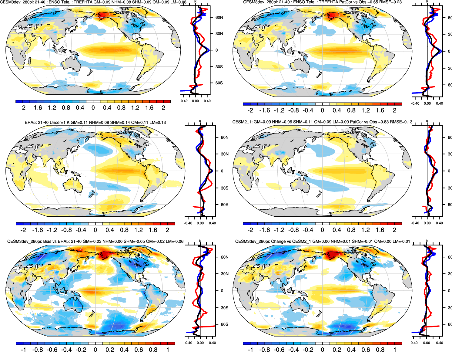 | TREFHT | Annual 0.99 | JJA-DJF 0.99 | ENSO Tele 0.65 | DJF 0.99 | MAM 0.99 | JJA 0.99 | SON 0.99 |
