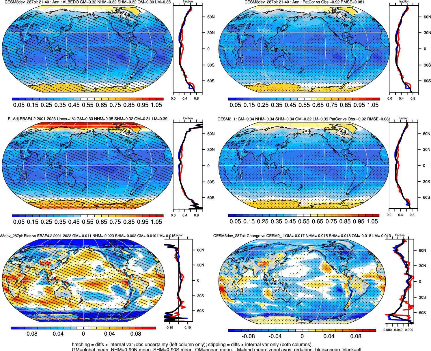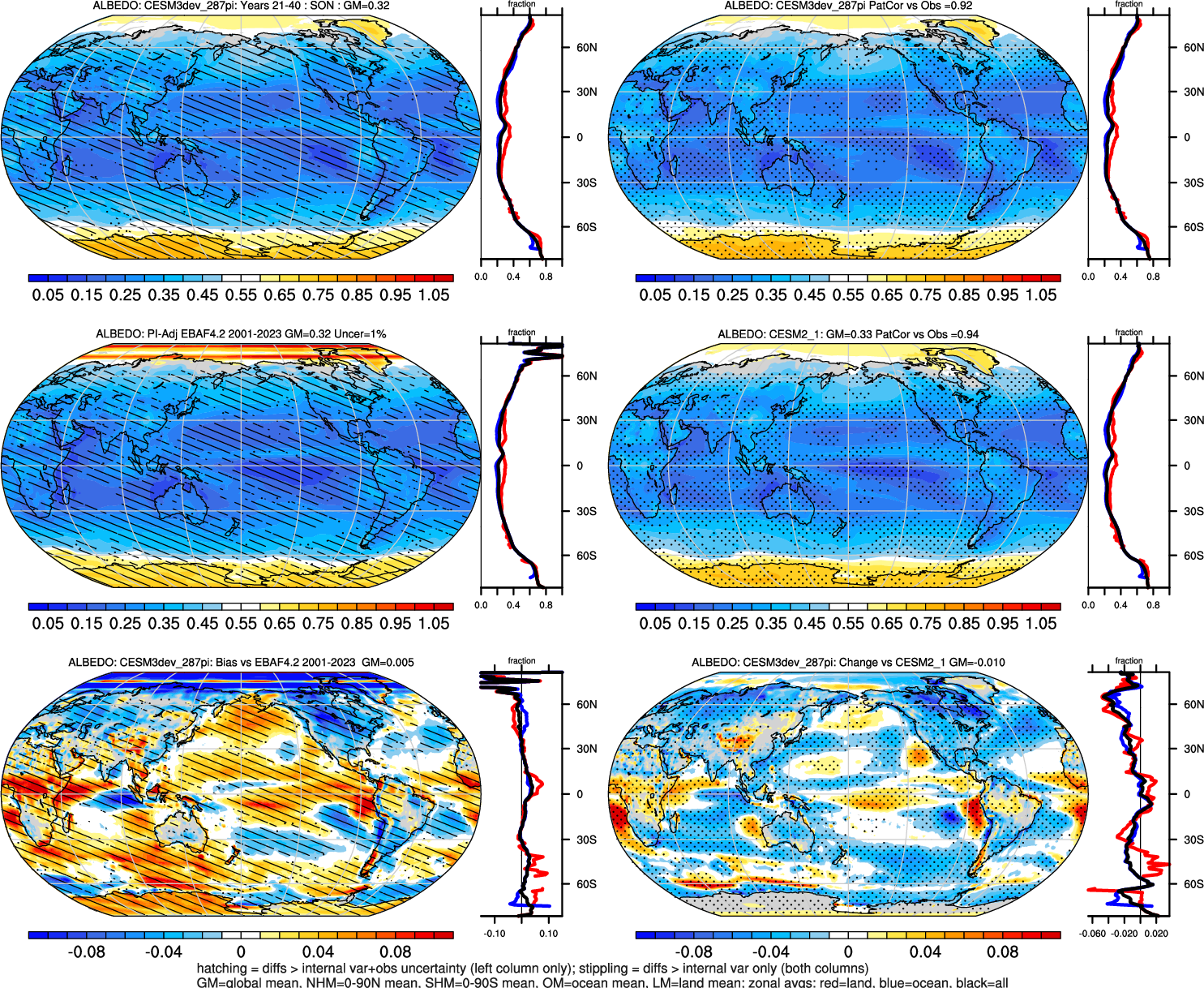 | ALBEDO | OCEAN | LAND | LAND+OCEAN |