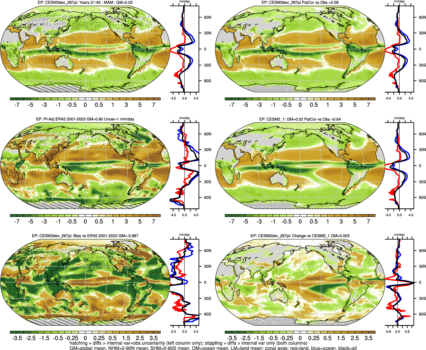 CMAT 1.0 CESM3dev CESM3dev_287pi: vs CESM2_1: |