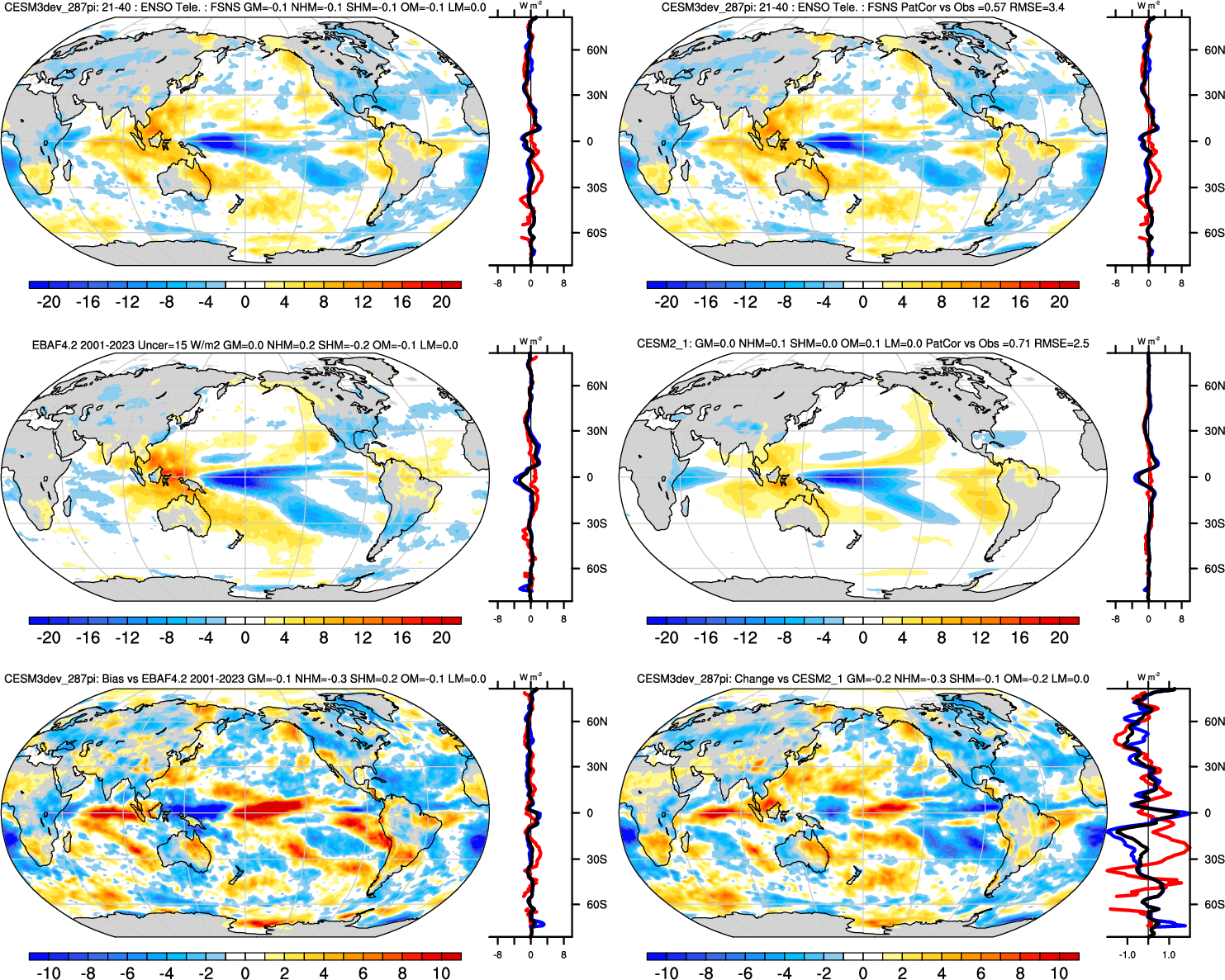 | FSNS | Annual 0.99 | JJA-DJF 0.99 | ENSO Tele 0.57 | DJF 0.98 | MAM 0.99 | JJA 0.98 | SON 0.98 |