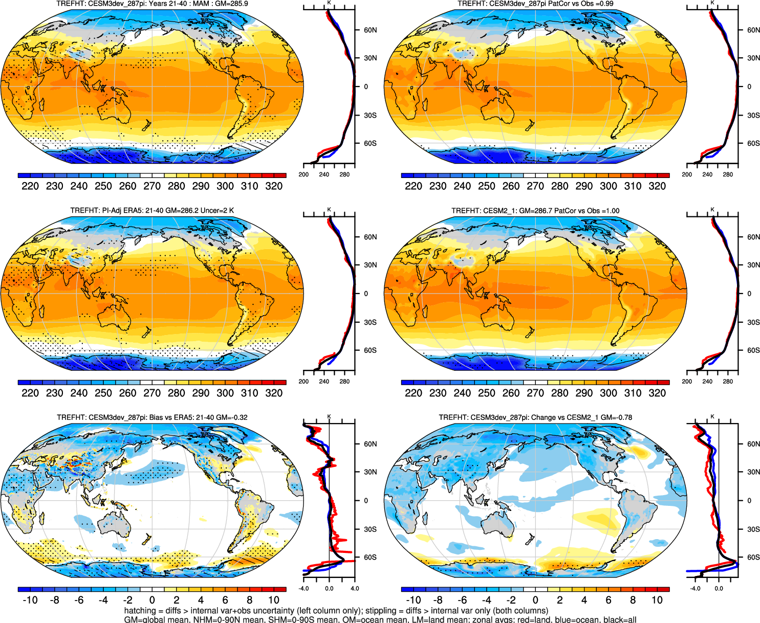 | TREFHT | OCEAN | LAND | LAND+OCEAN |