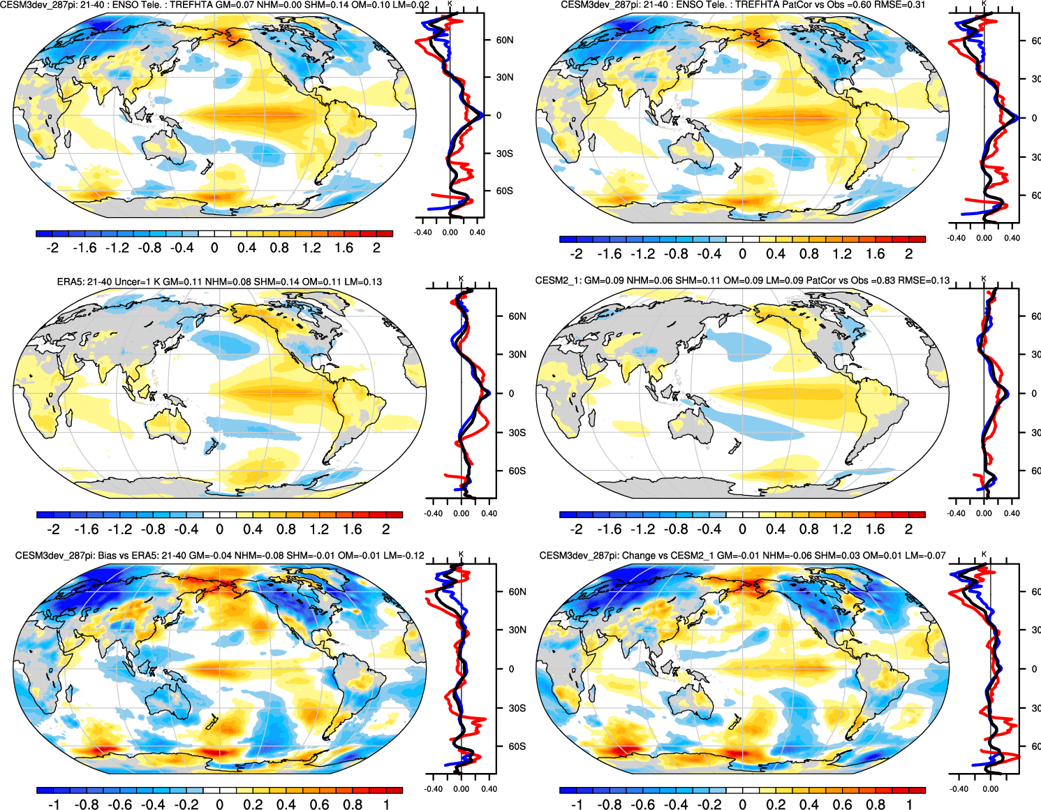 | TREFHT | Annual 1.00 | JJA-DJF 0.99 | ENSO Tele 0.60 | DJF 1.00 | MAM 0.99 | JJA 0.99 | SON 0.99 |