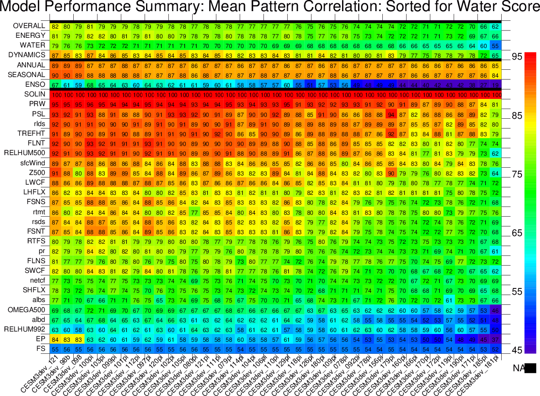 *Scoring is based on mean of the pattern correlations for the annual mean, seasonal contrast, and ENSO teleconnections. COLOR TABLE SUMMARY