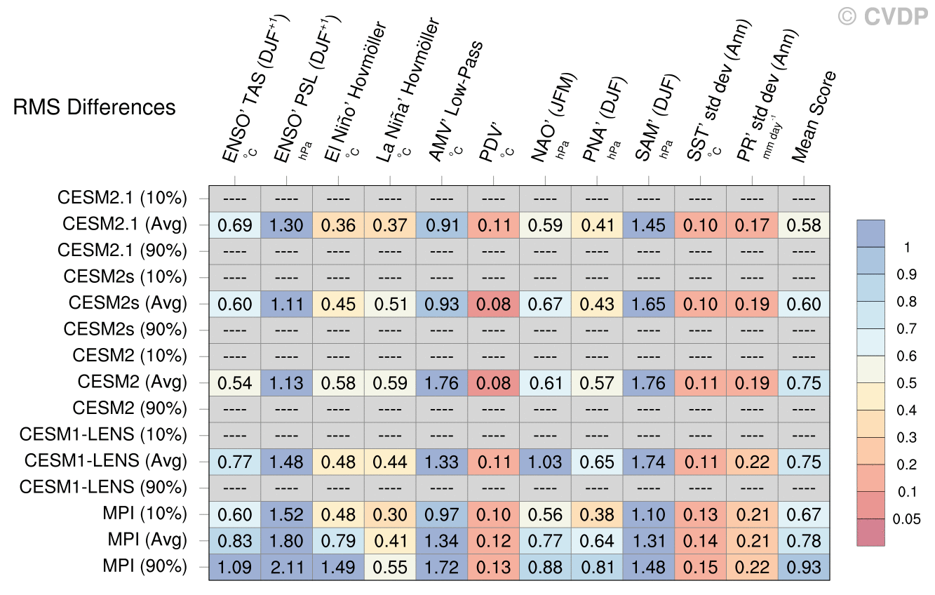 | Sort By: | Namelist (default) | Namelist (Alphabetically) | ENSO' TAS | ENSO' PSL | El Niño' Hovmöller La Niña' Hovmöller | AMV' Low-Pass | PDV' | NAO' | PNA' | SAM' | SST' std dev | PR' std dev | Mean Score |