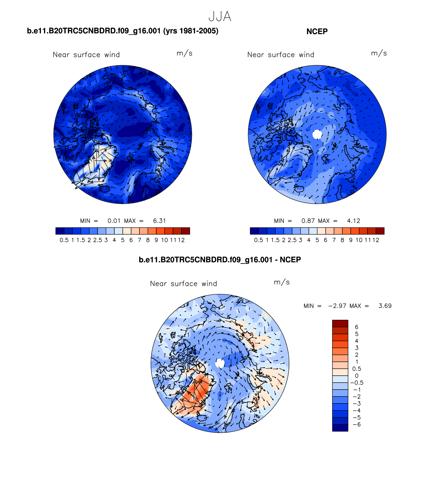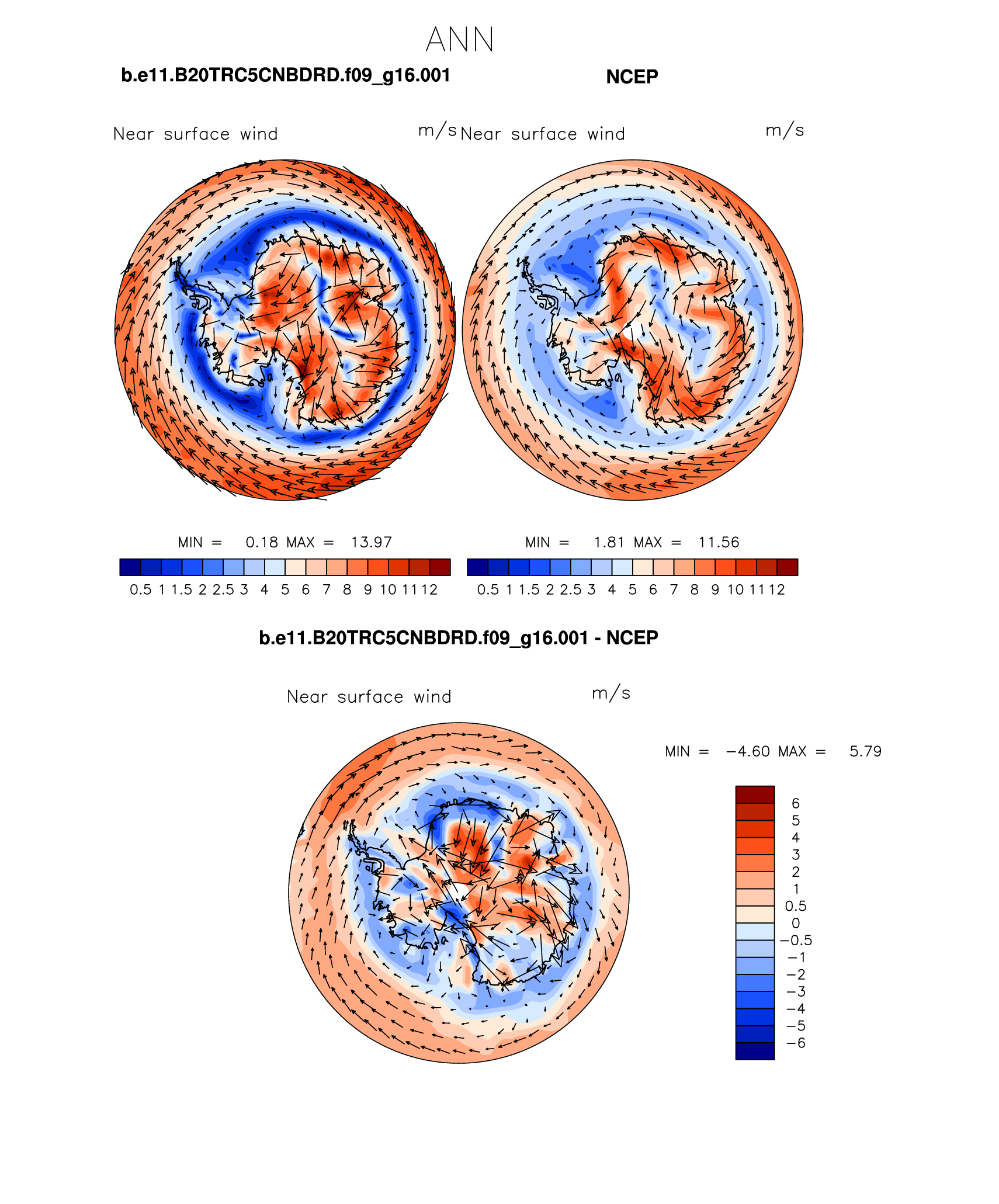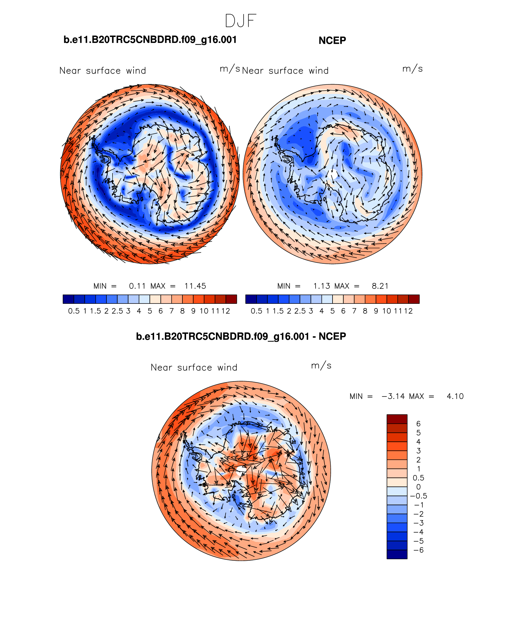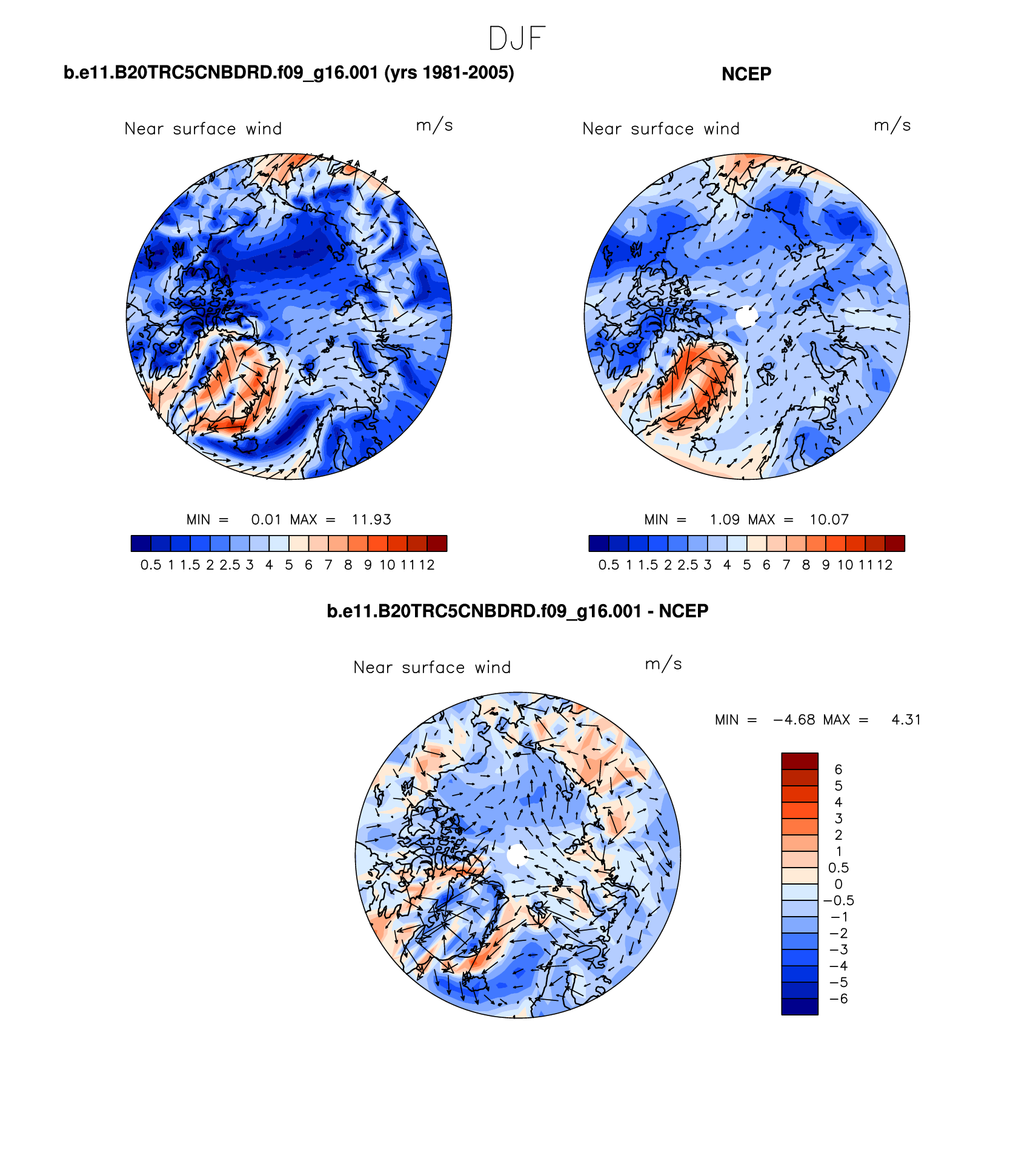 b.e11.B20TRC5CNBDRD.f09_g16.001 DIAG Set 7 - Polar contour/vector plots of DJF, JJA and ANN means