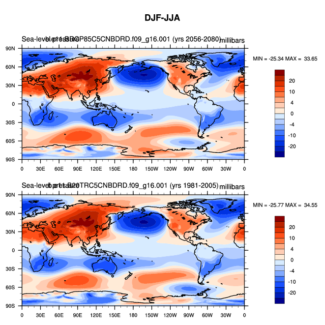 DIAG Set 9 - Horizontal contour plots of DJF-JJA differences
