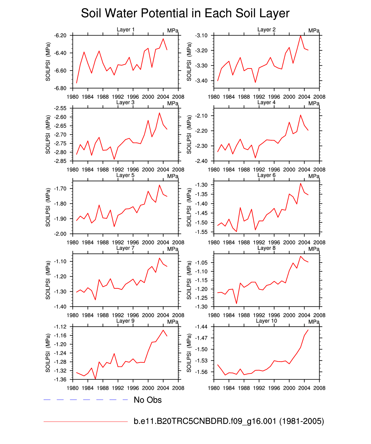 | Soil Water Potential in Each Soil Layer (SOILPSI) | plot |