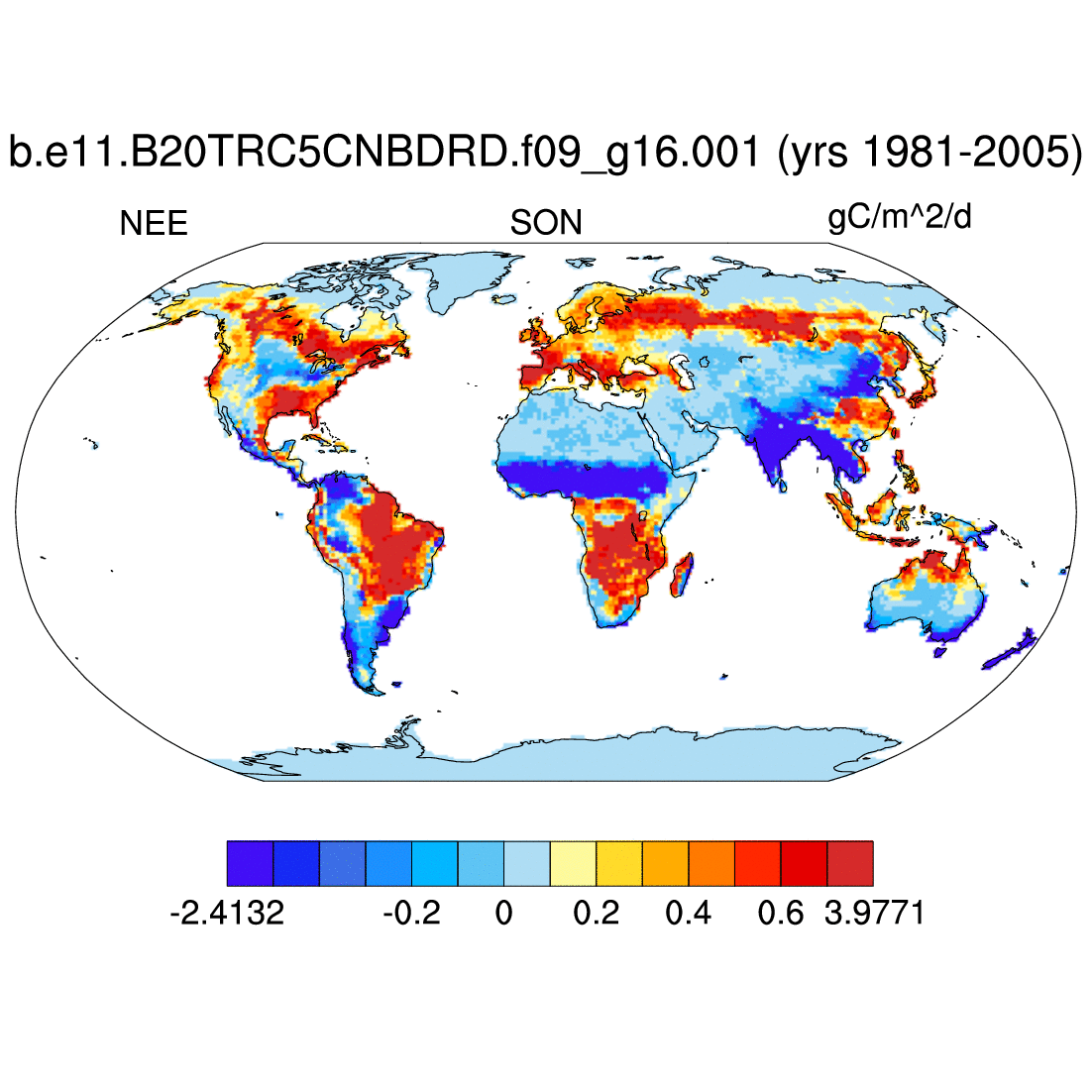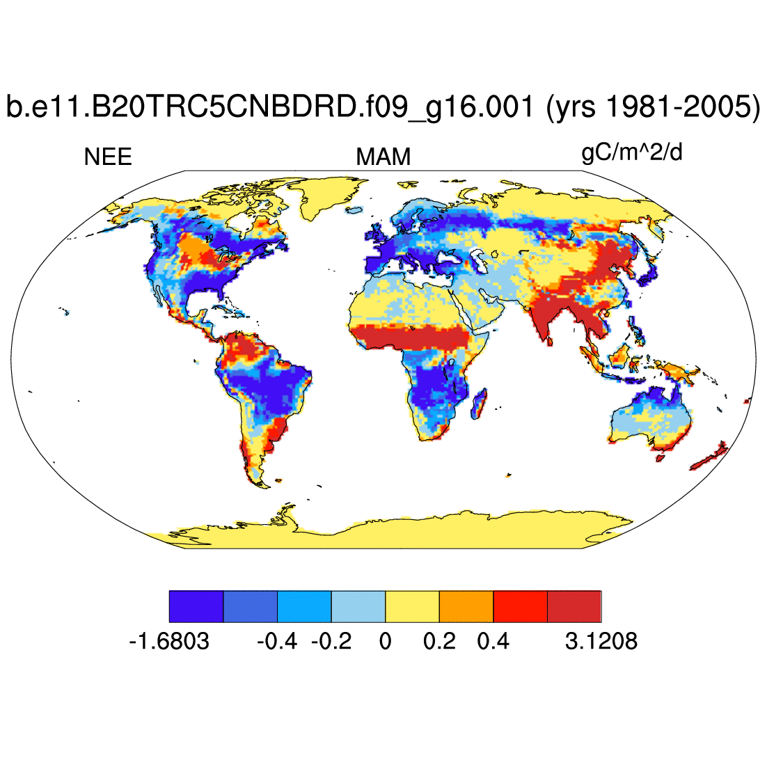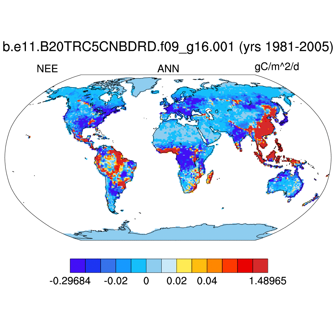 | NEE     | net ecosys exchange of C;incl fire flx;pos for source     | plot | plot | plot | plot | plot |