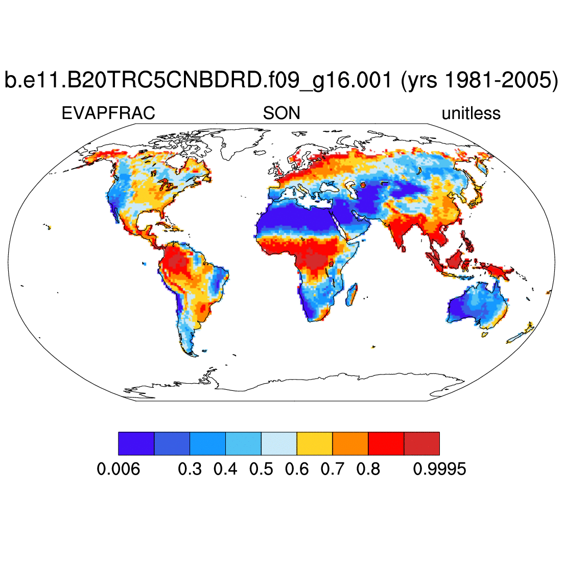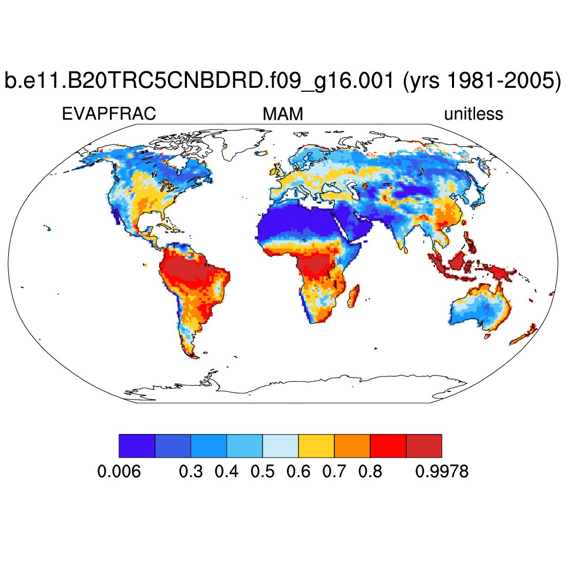 | EVAPFRAC     | LHEAT/(LHEAT+FSH)     | plot | plot | plot | plot | plot |