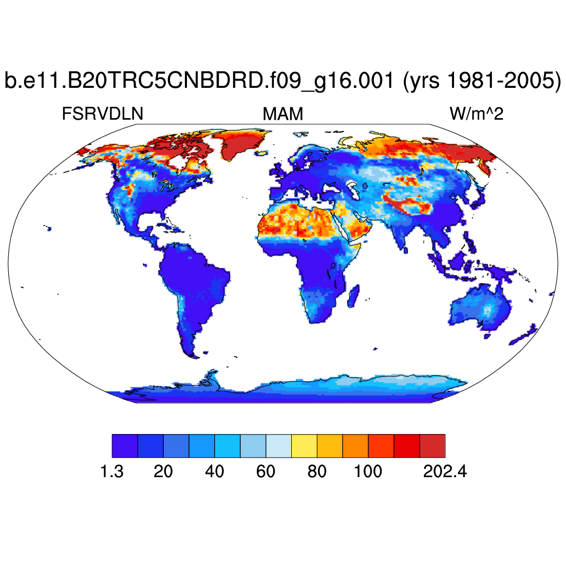 | FSDSVDLN     | direct vis incident solar radiation at local noon     | plot | plot | plot | plot | plot |