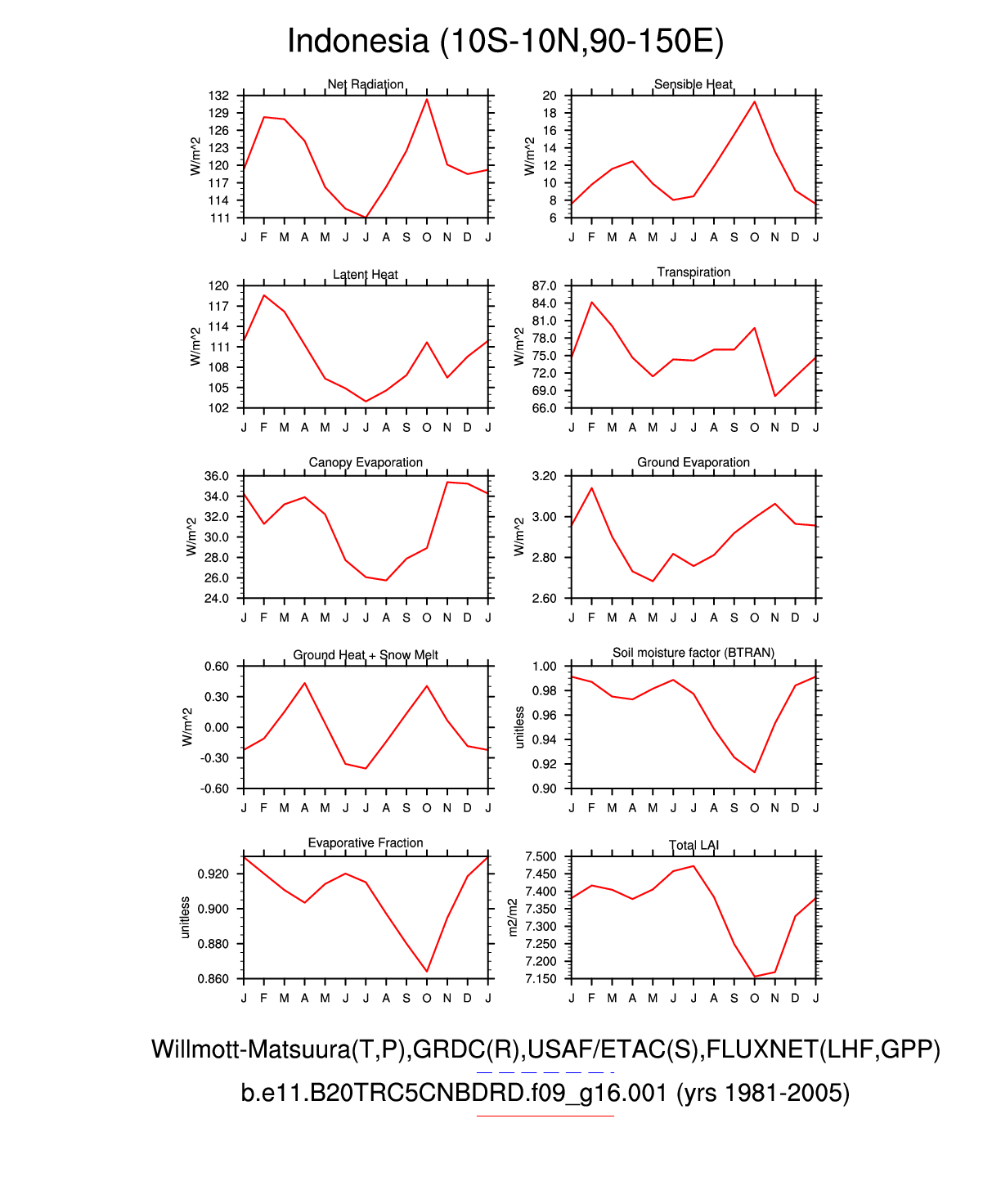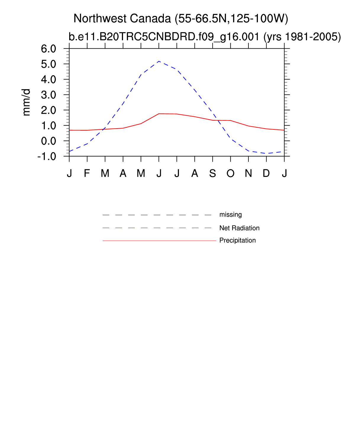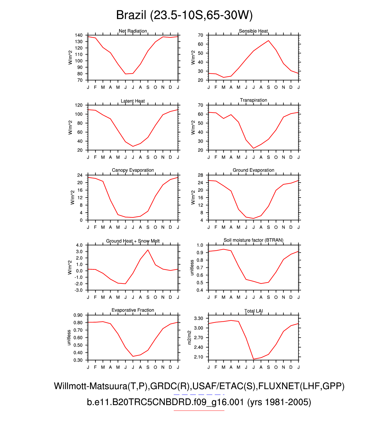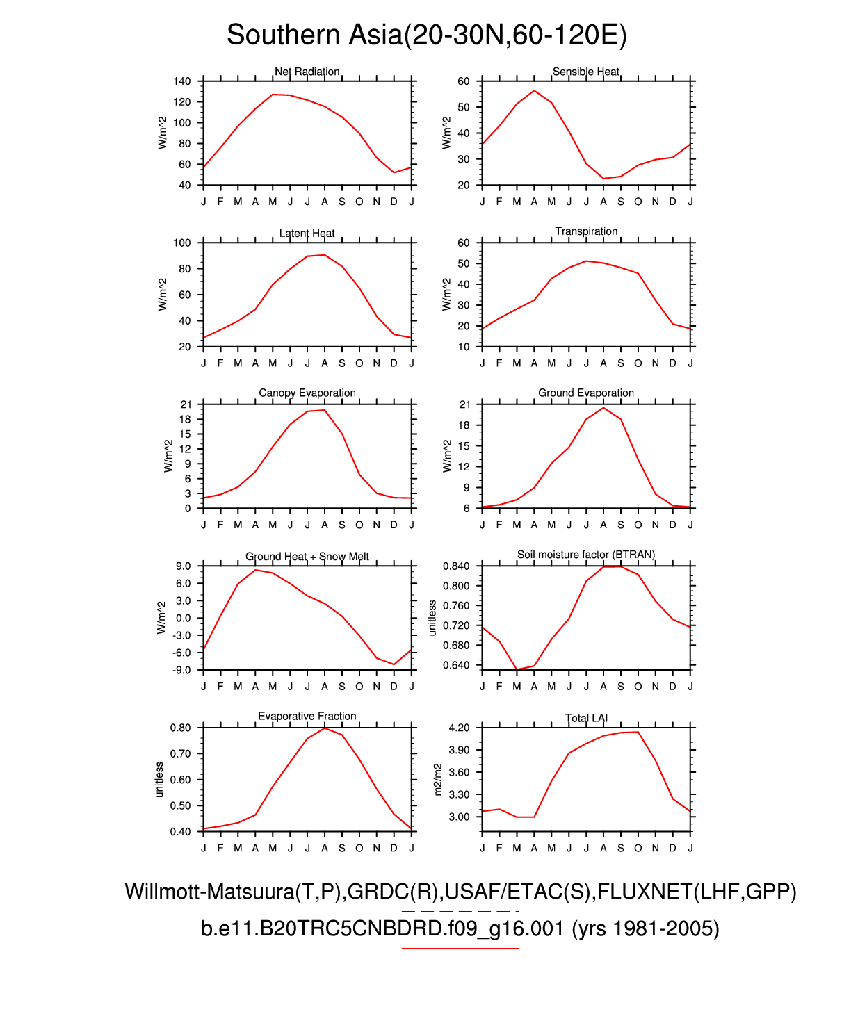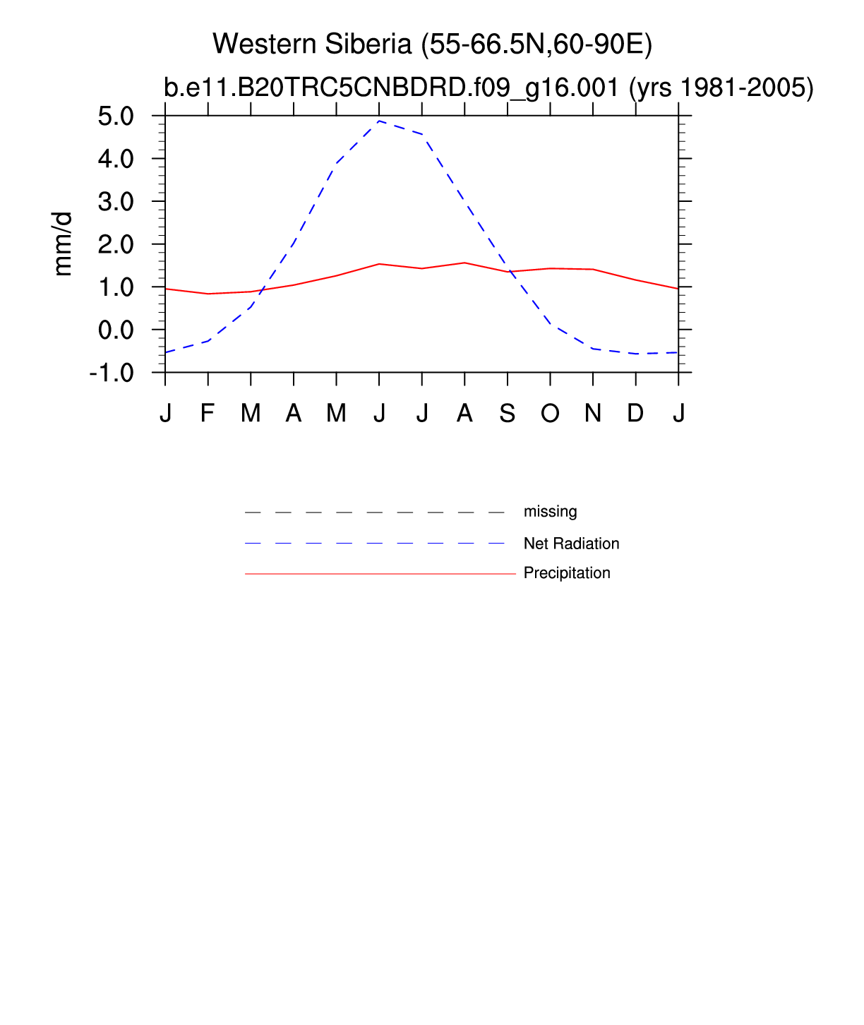 Set 3 Description: Line plots of monthly climatology: regional air temperature, precipitation, runoff, snow depth, radiative fluxes, and turbulent fluxes