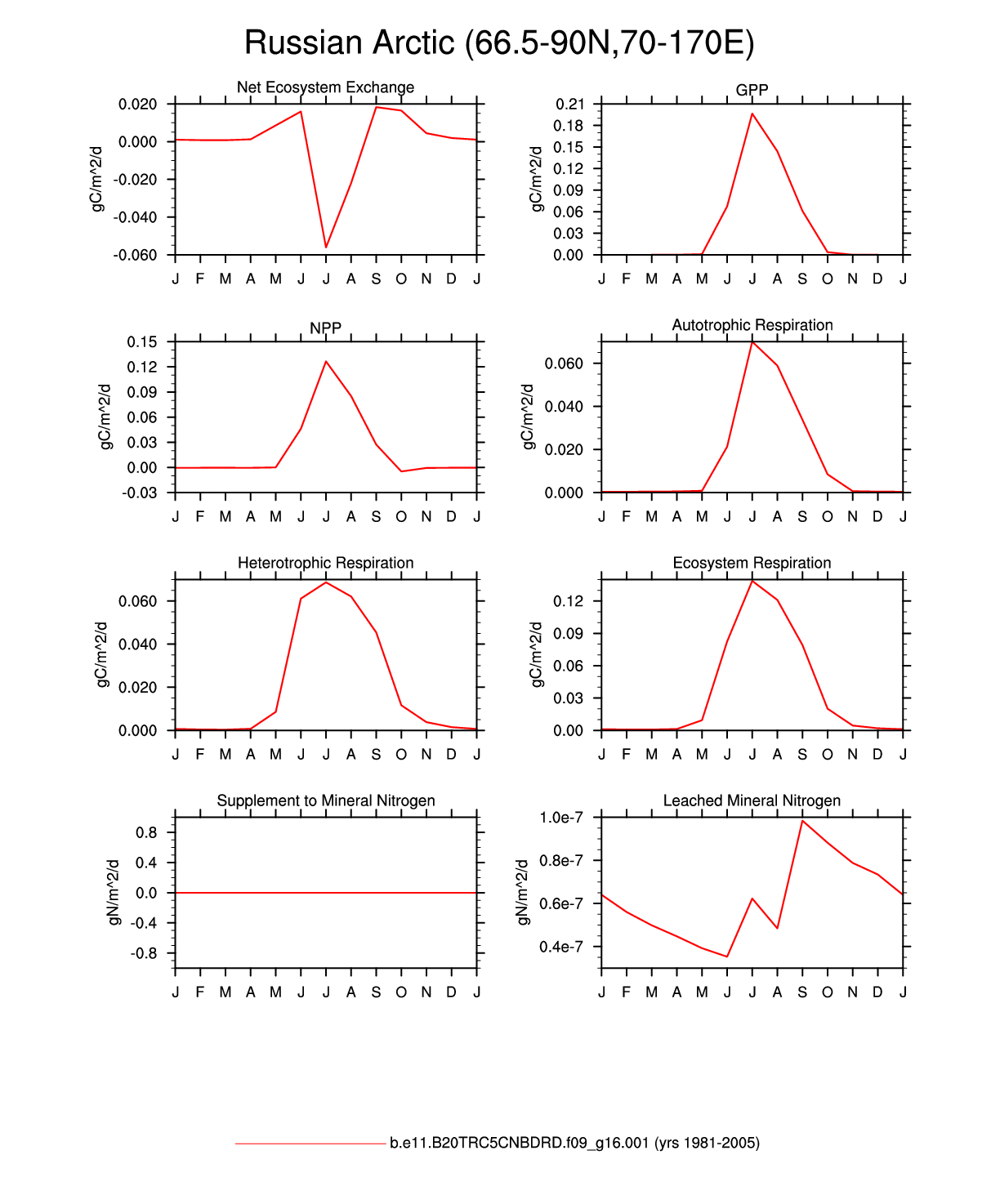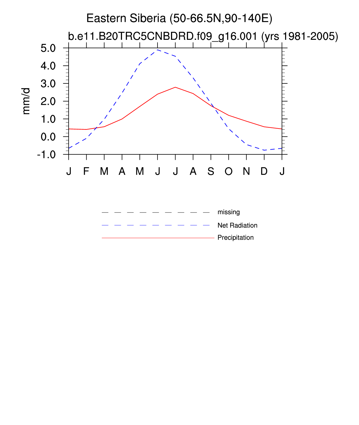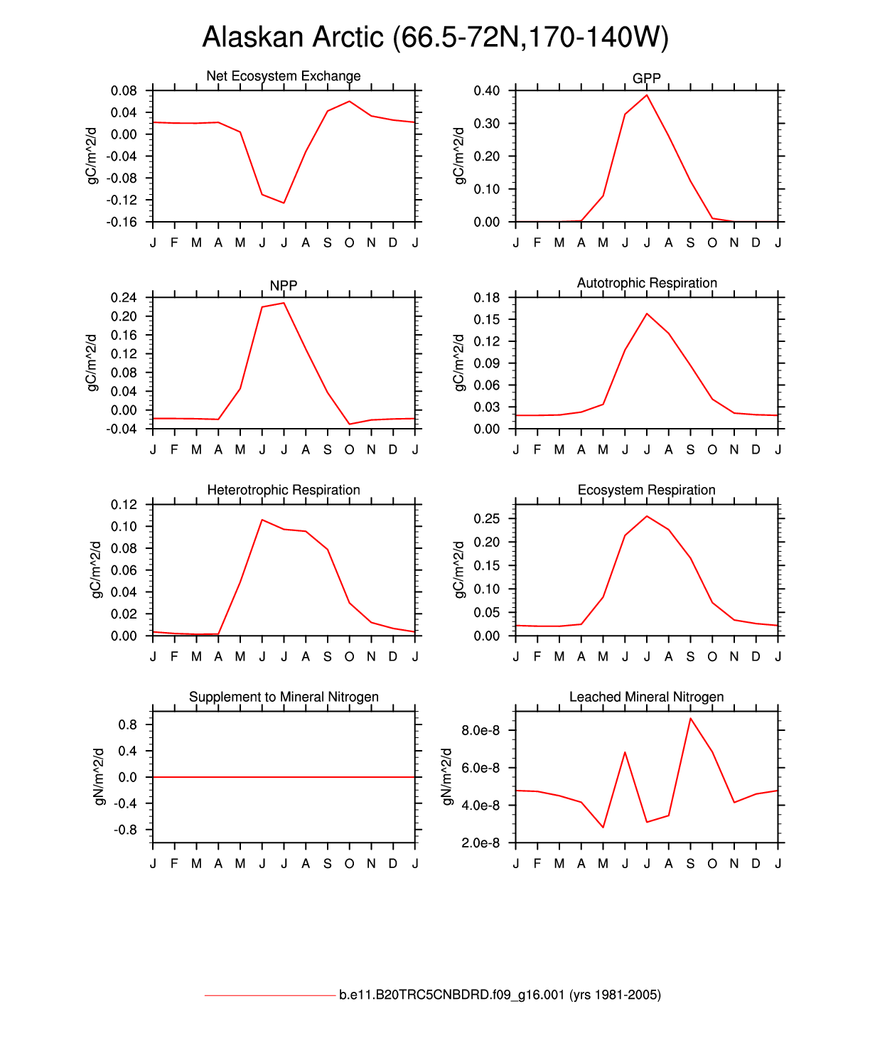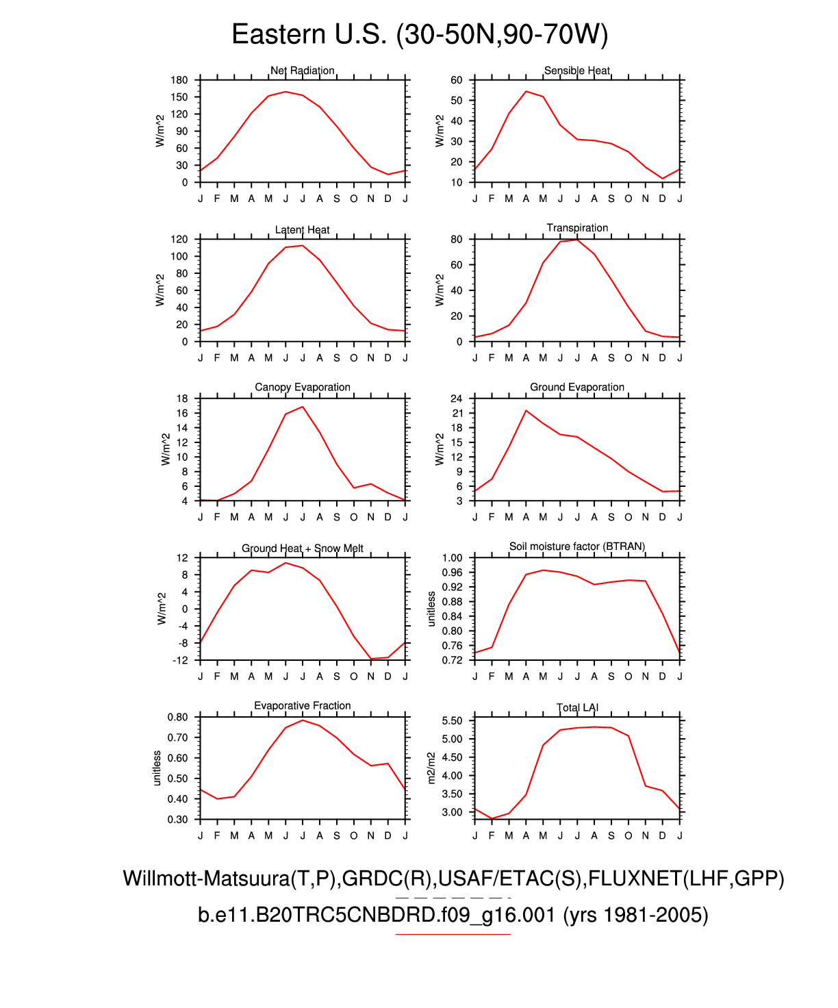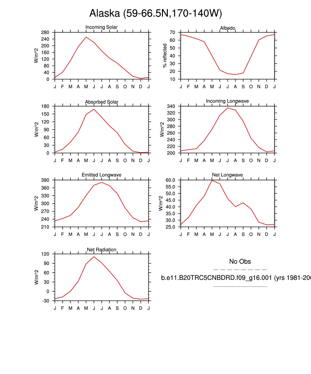 Set 3 Description: Line plots of monthly climatology: regional air temperature, precipitation, runoff, snow depth, radiative fluxes, and turbulent fluxes