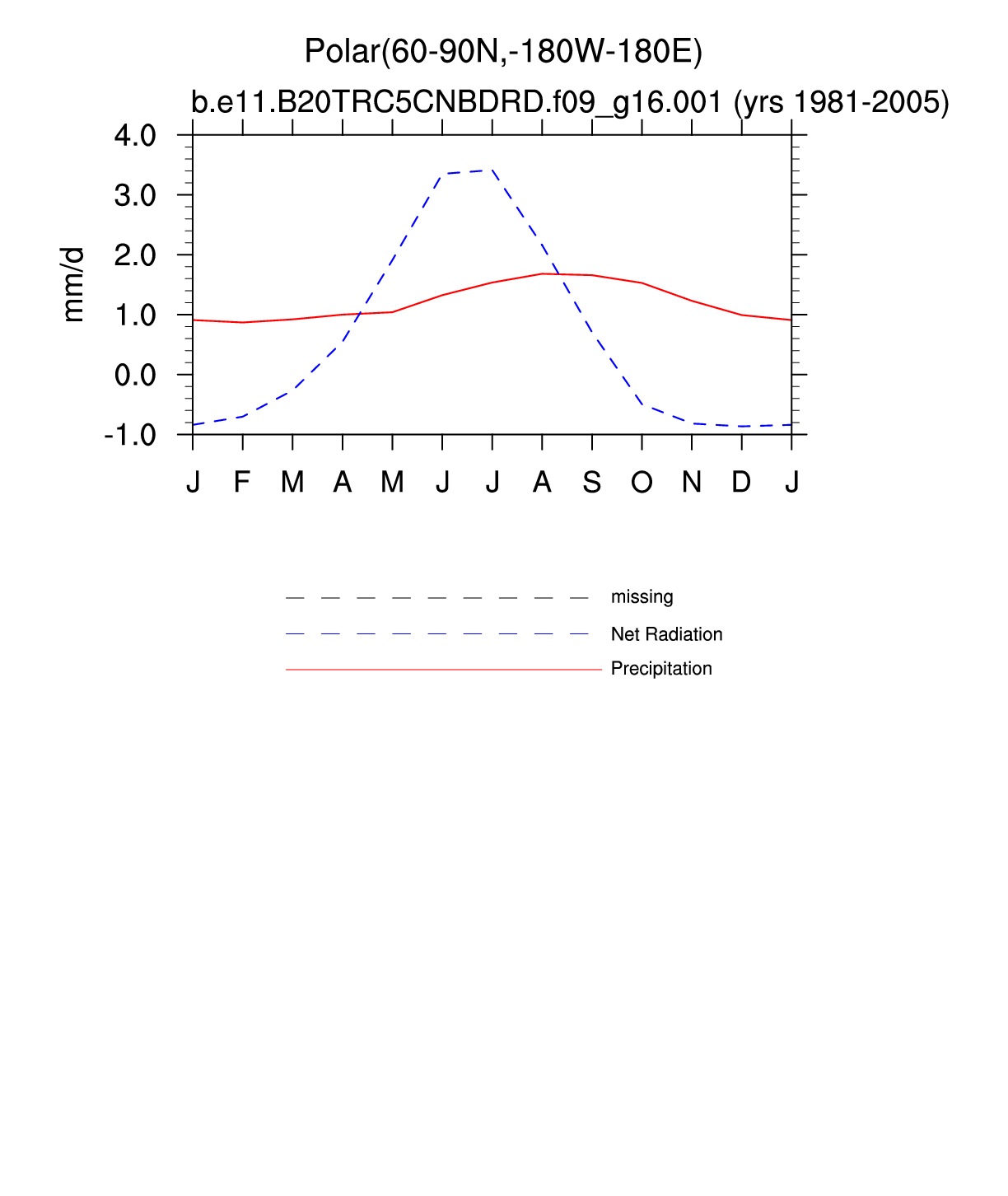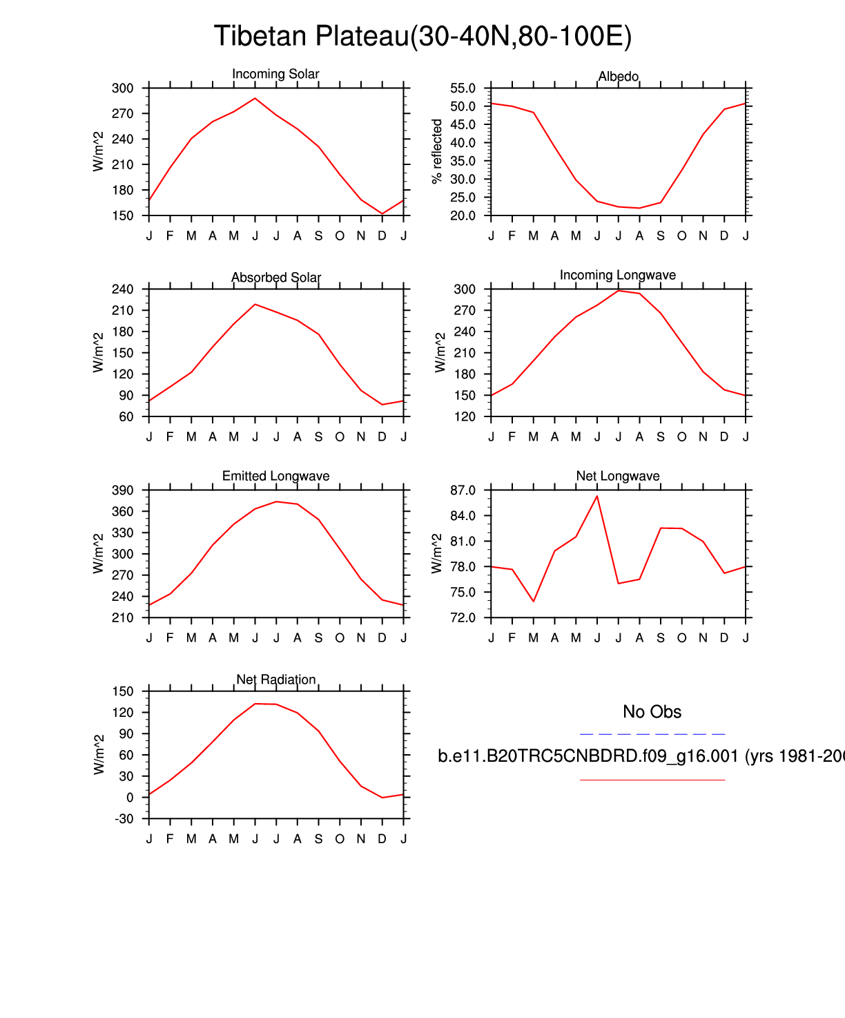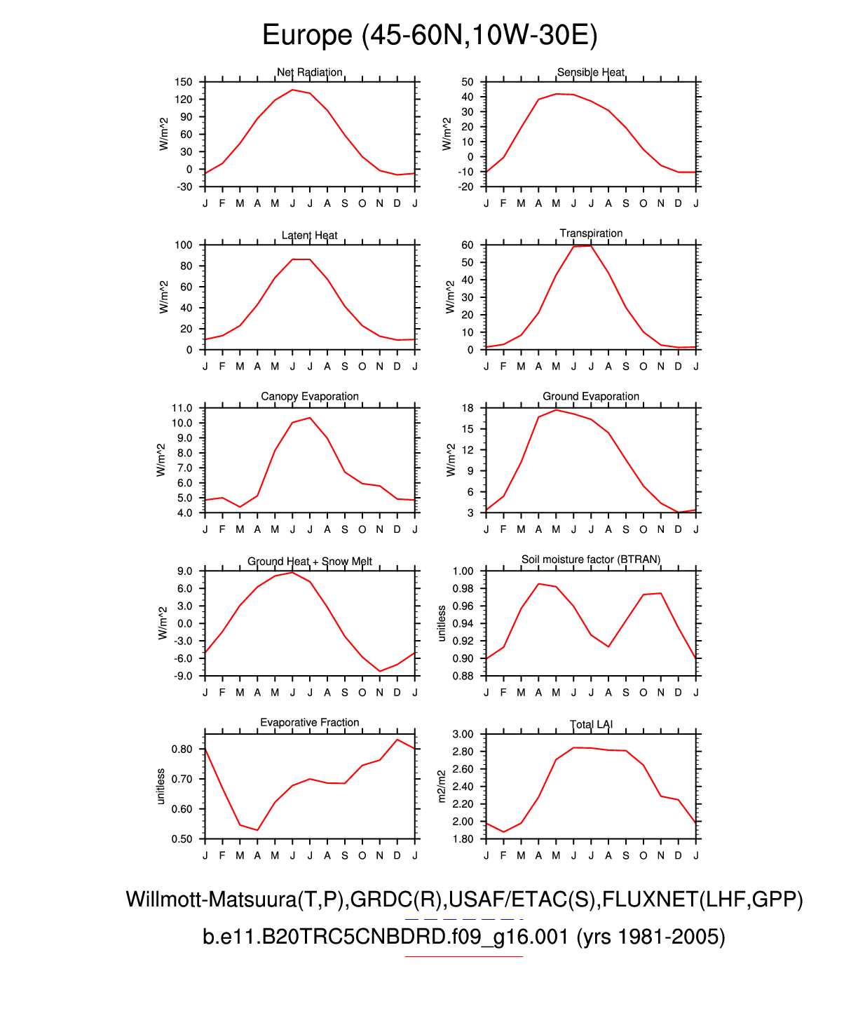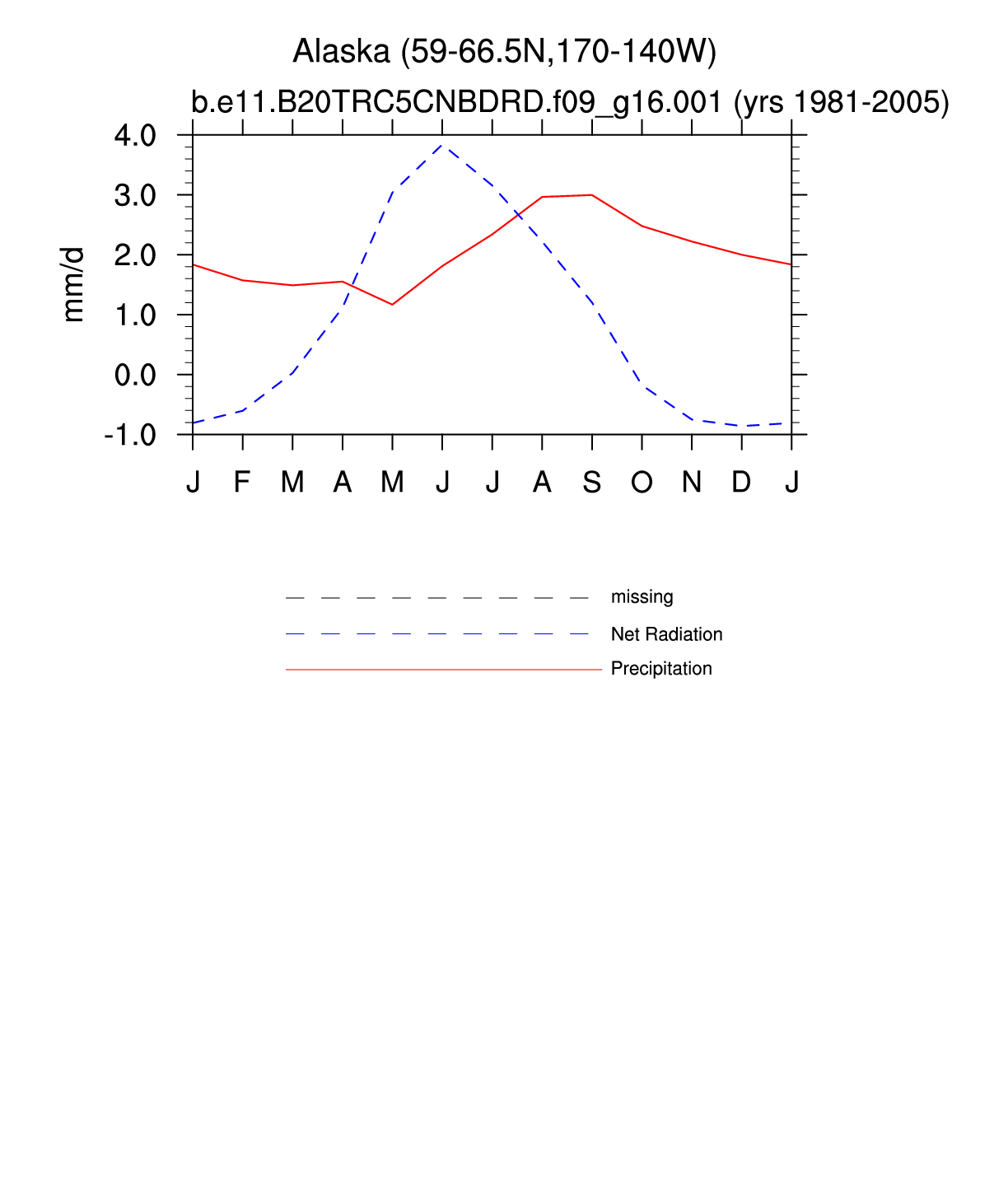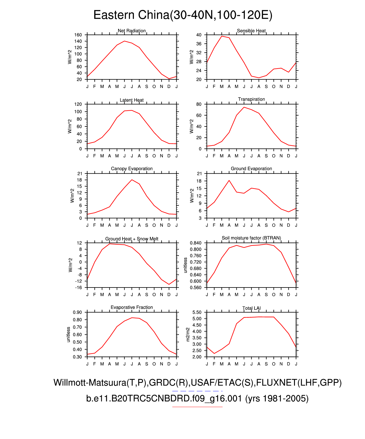 Set 3 Description: Line plots of monthly climatology: regional air temperature, precipitation, runoff, snow depth, radiative fluxes, and turbulent fluxes