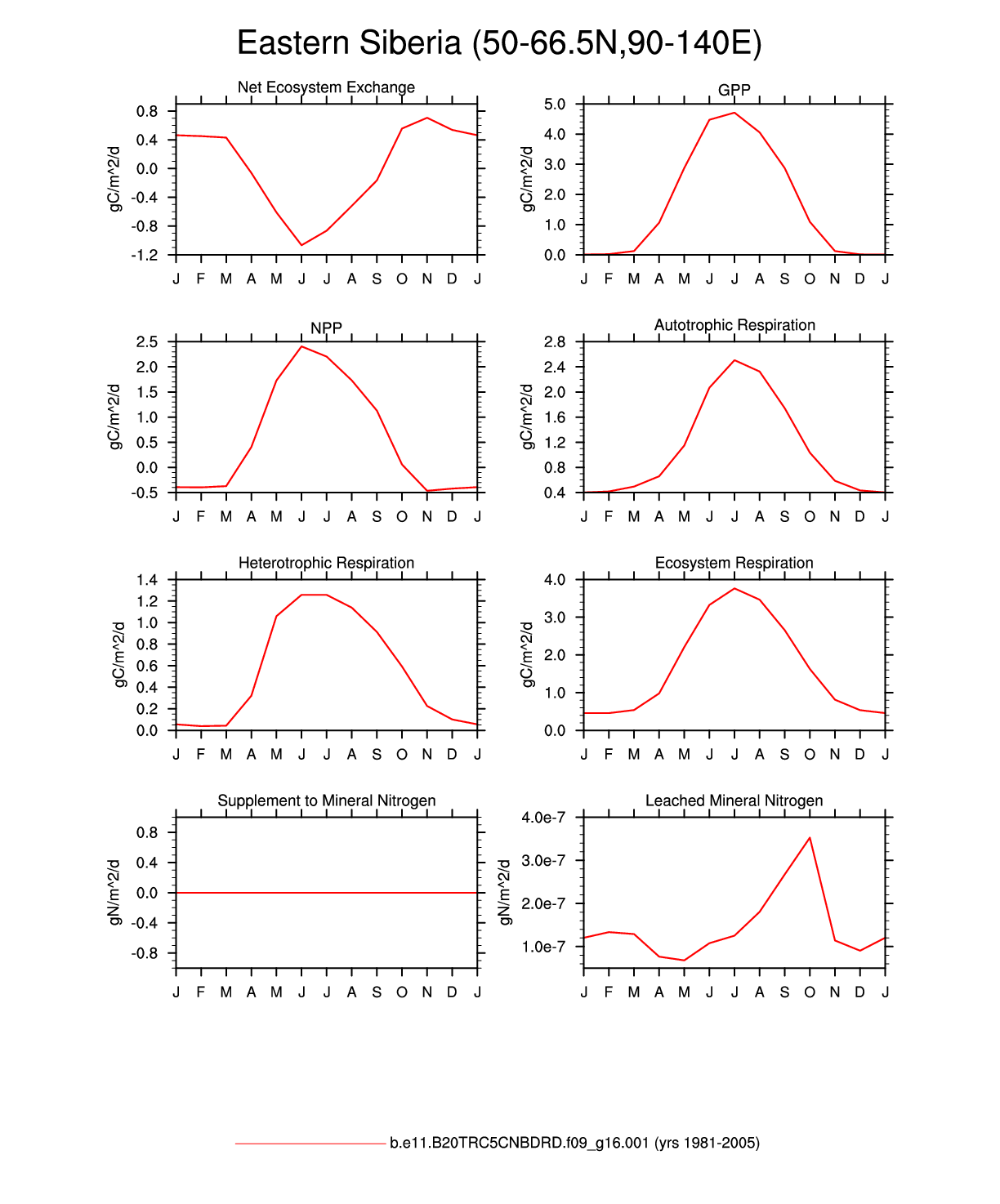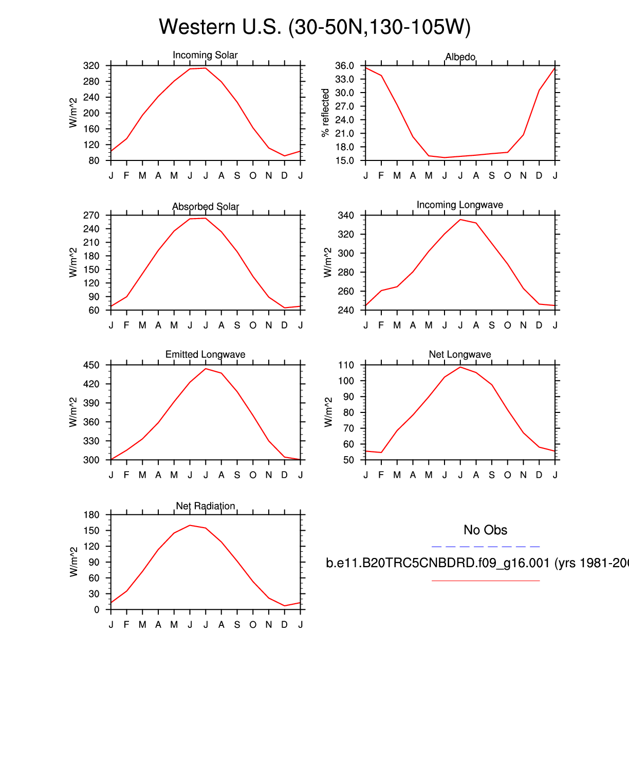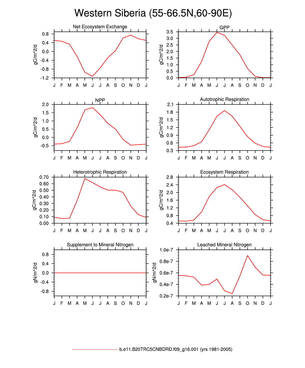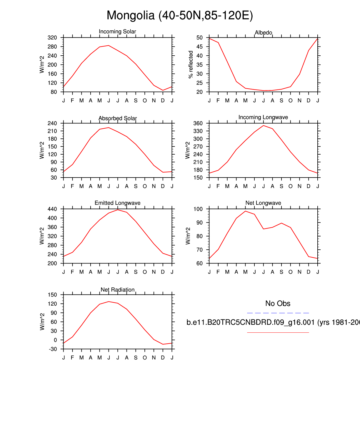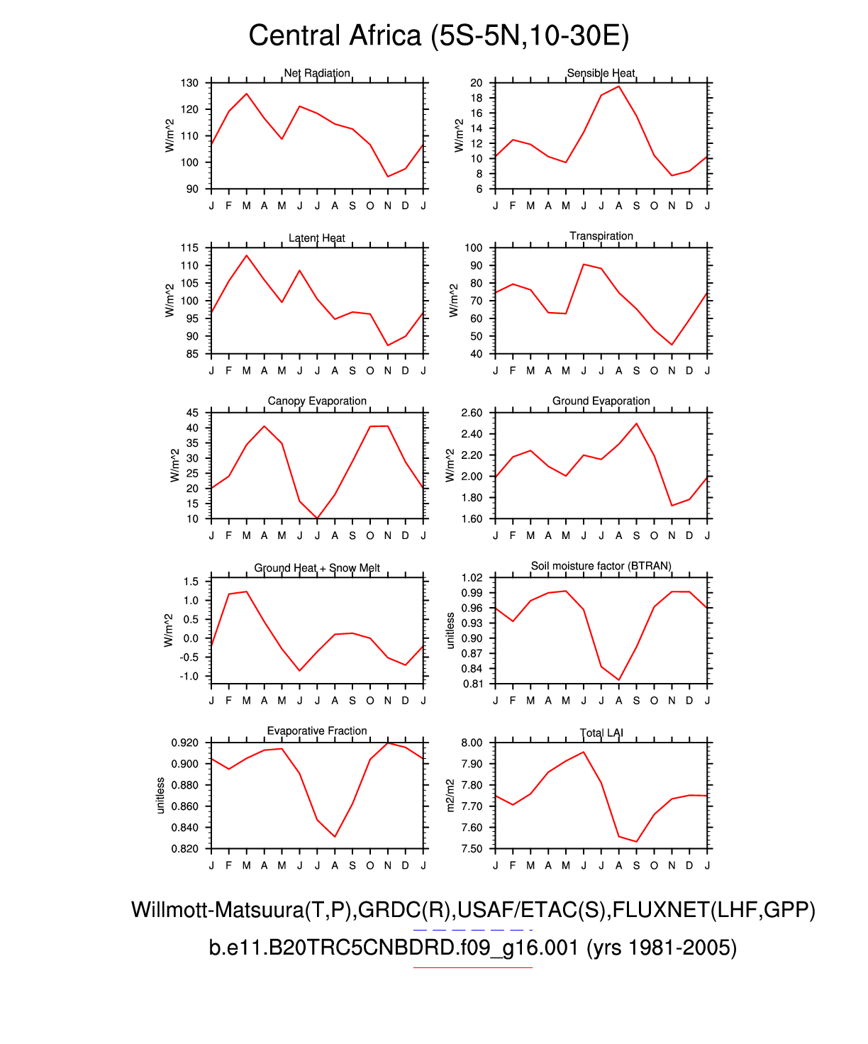 Set 3 Description: Line plots of monthly climatology: regional air temperature, precipitation, runoff, snow depth, radiative fluxes, and turbulent fluxes