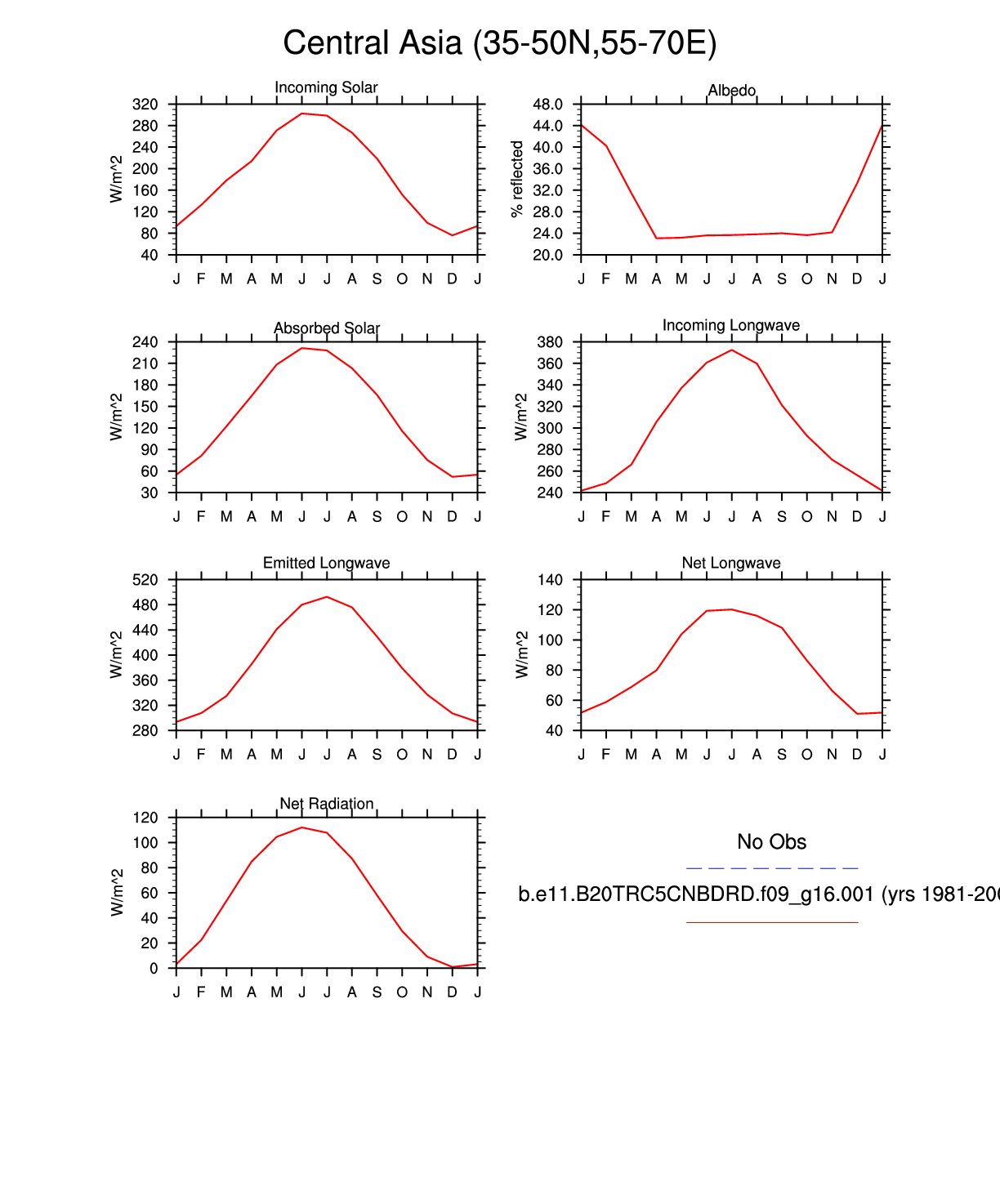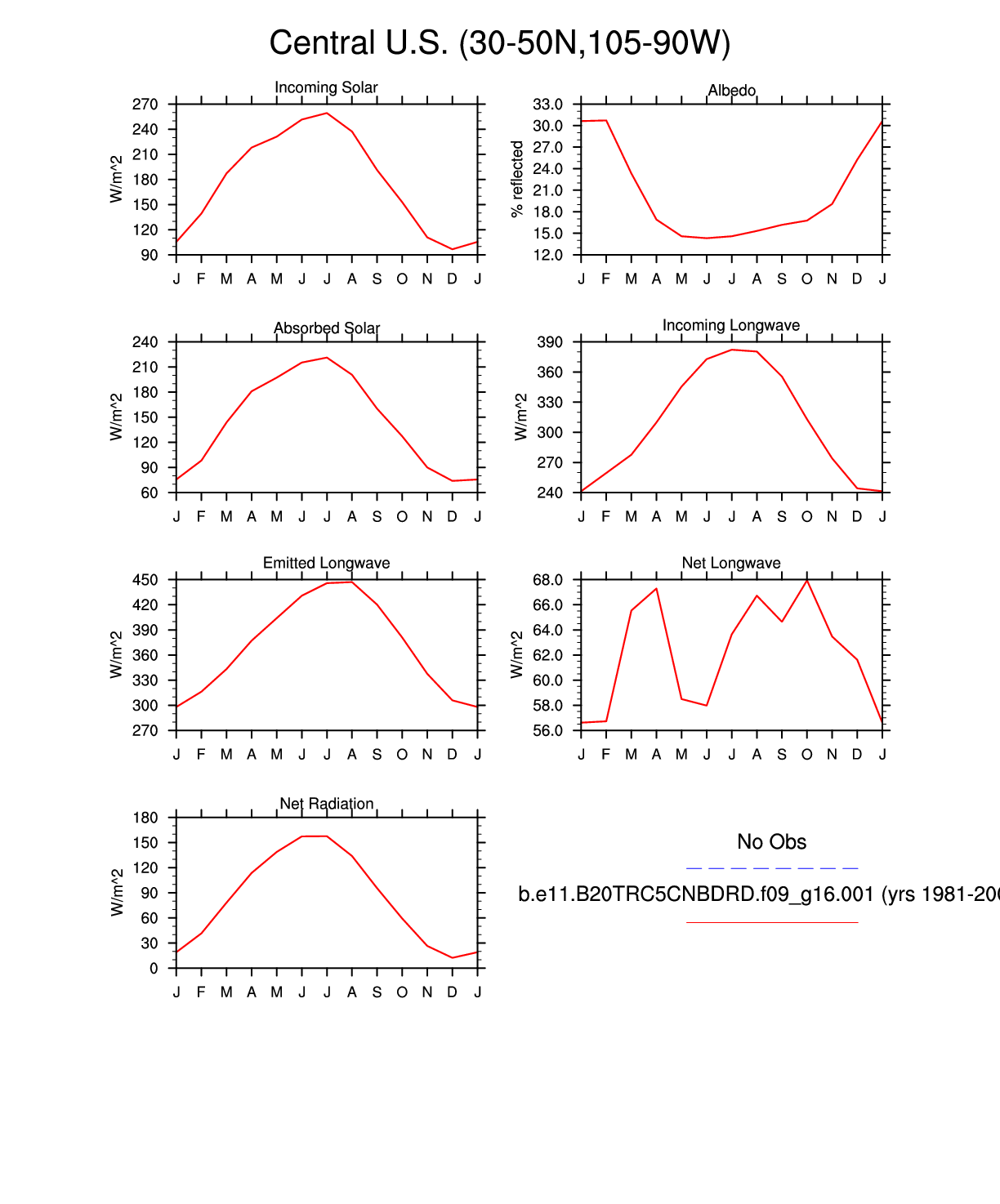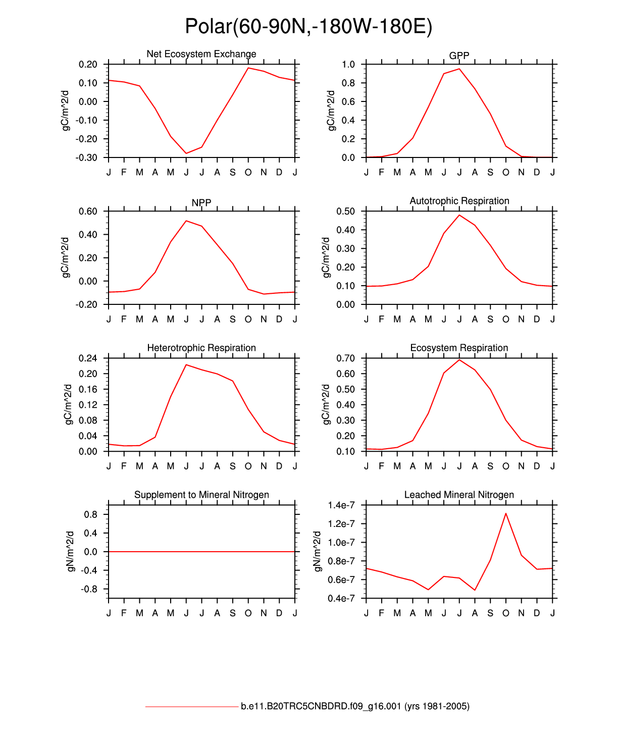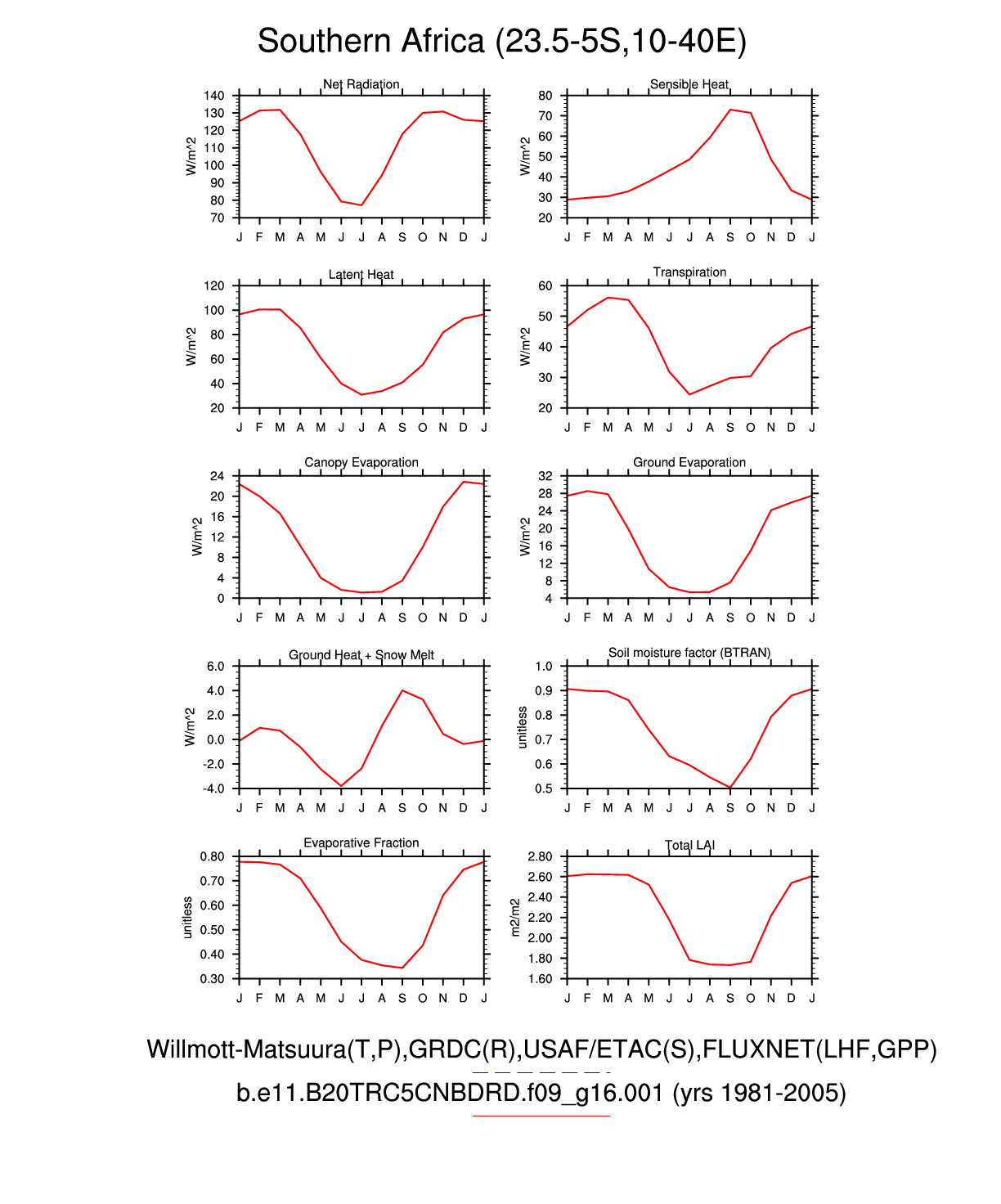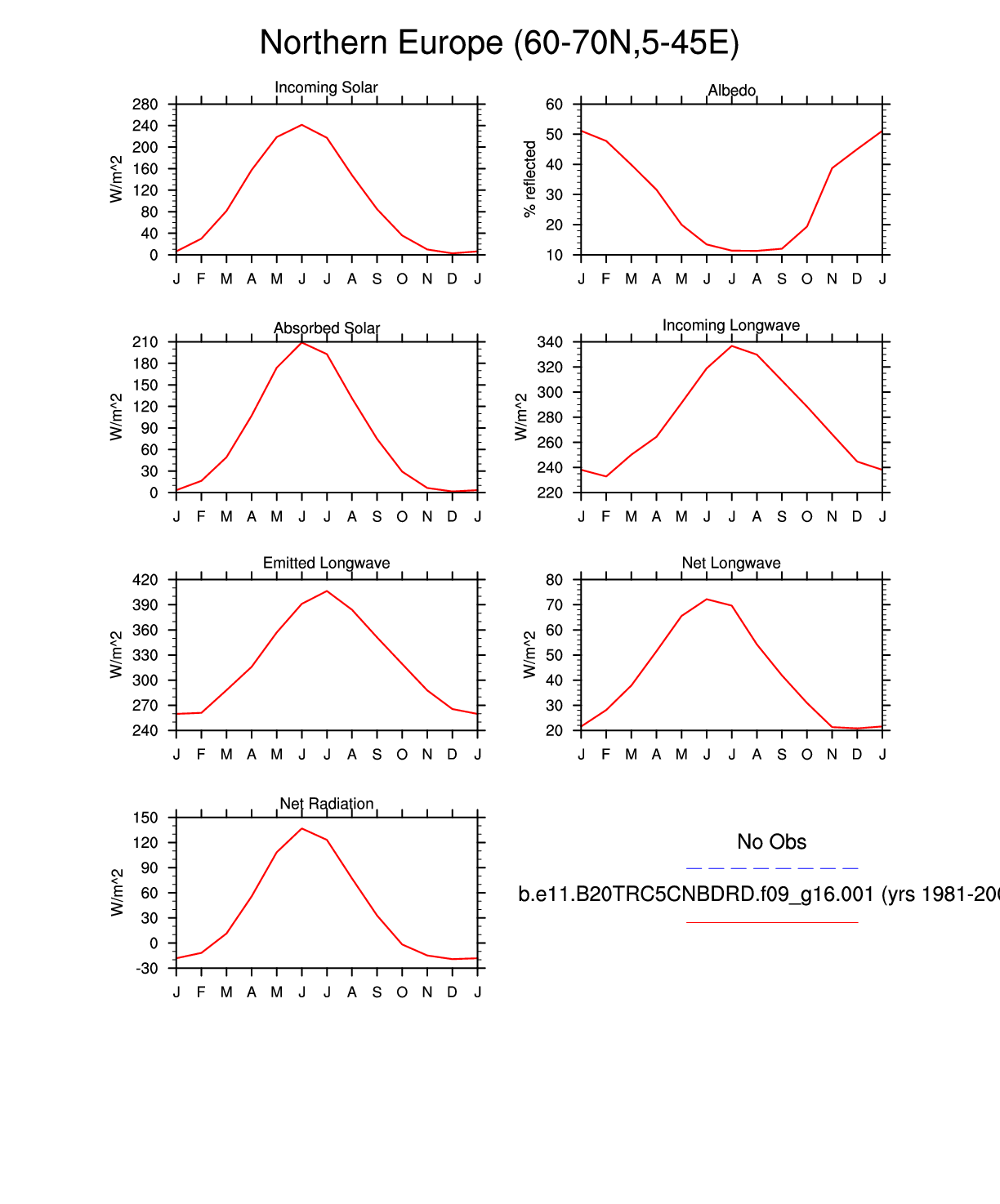 Set 3 Description: Line plots of monthly climatology: regional air temperature, precipitation, runoff, snow depth, radiative fluxes, and turbulent fluxes