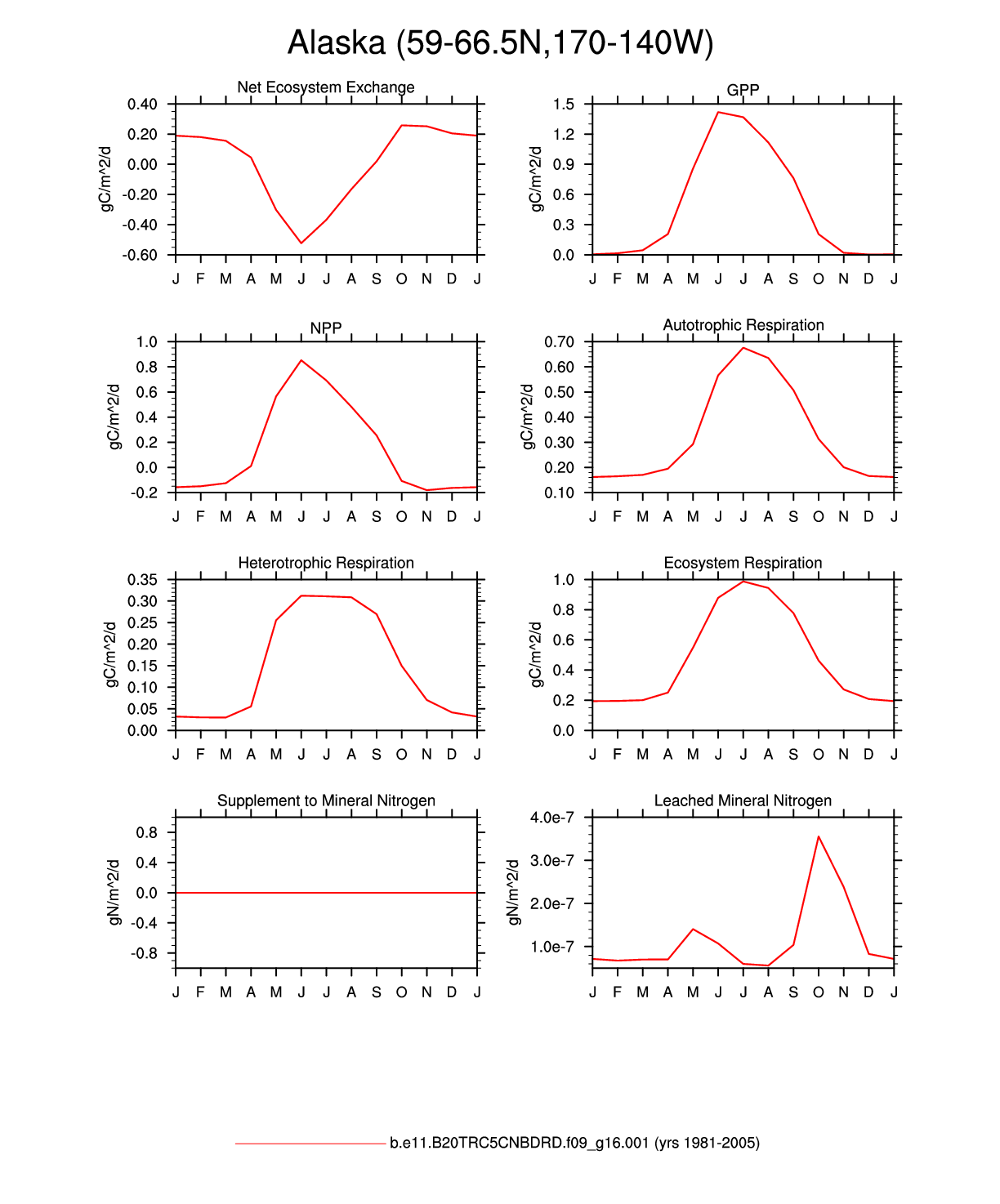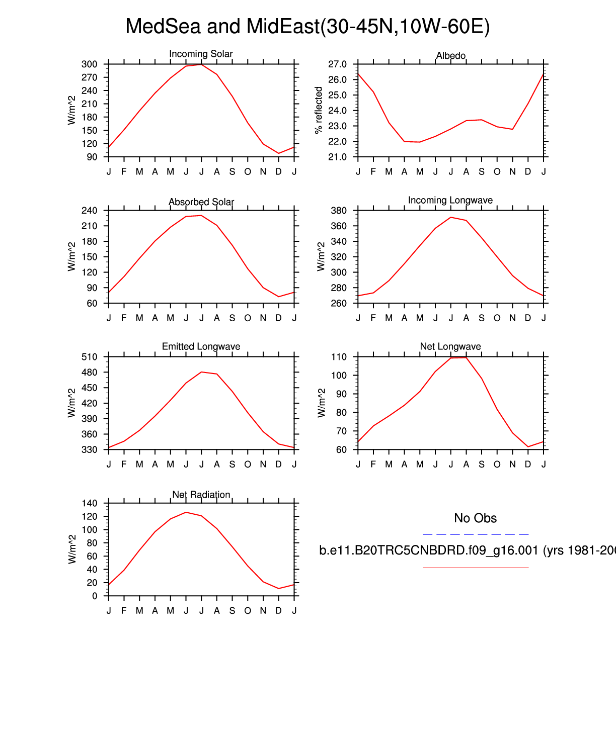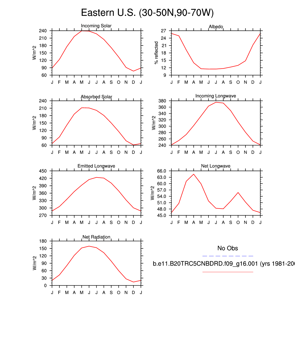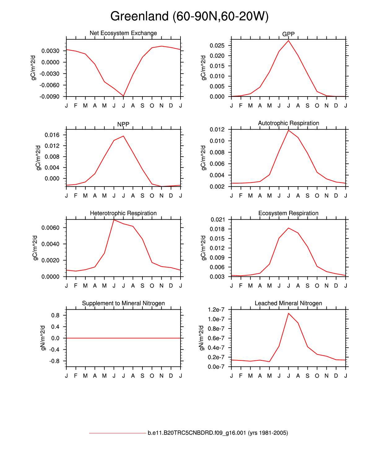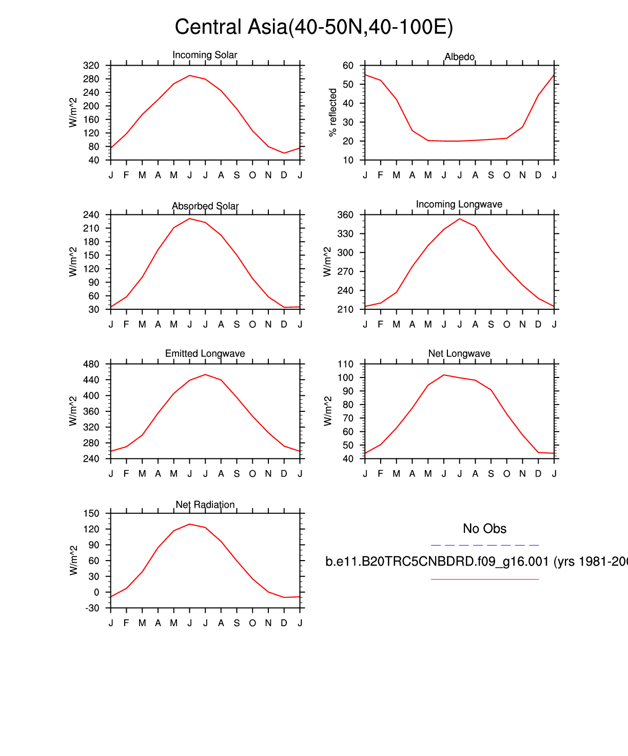 Set 3 Description: Line plots of monthly climatology: regional air temperature, precipitation, runoff, snow depth, radiative fluxes, and turbulent fluxes