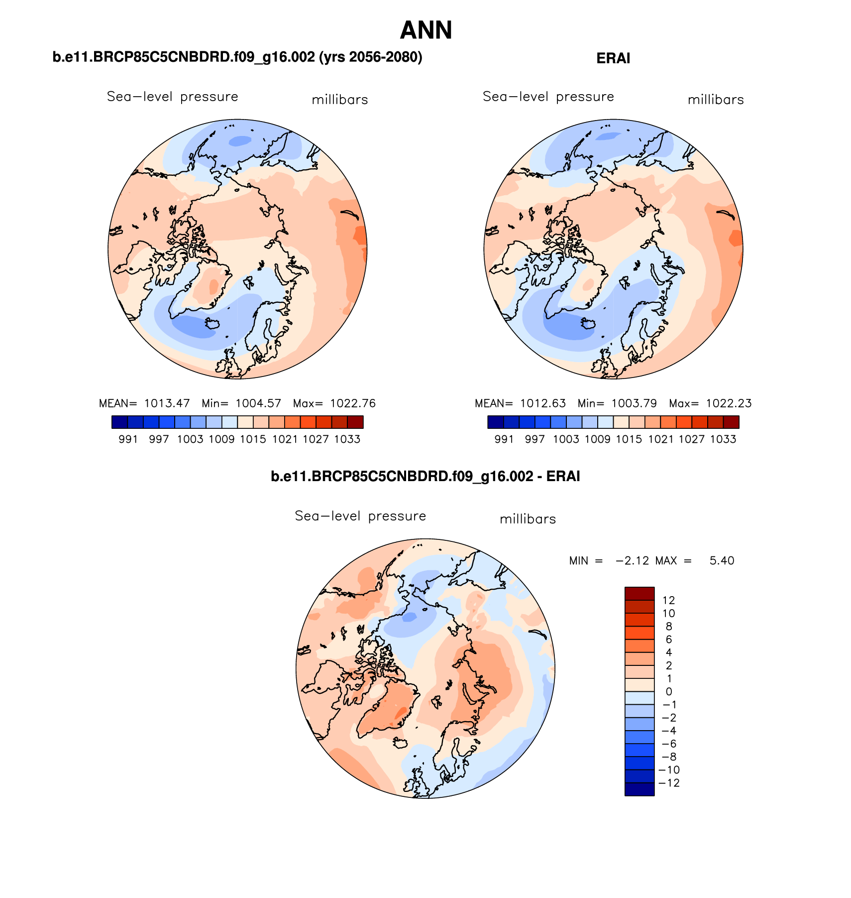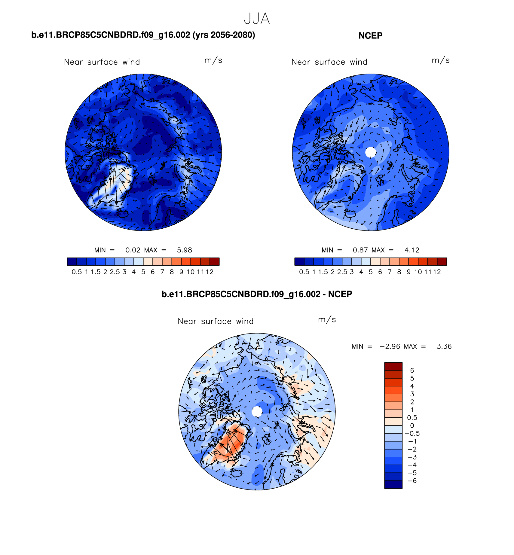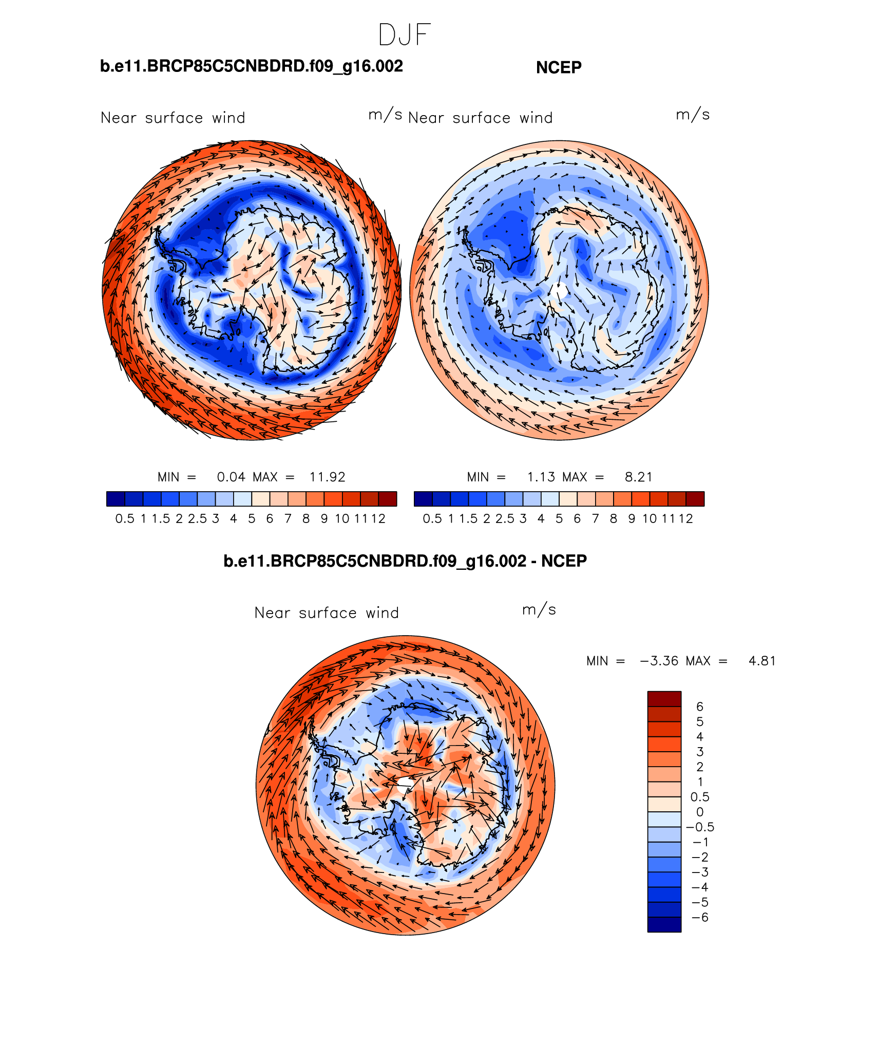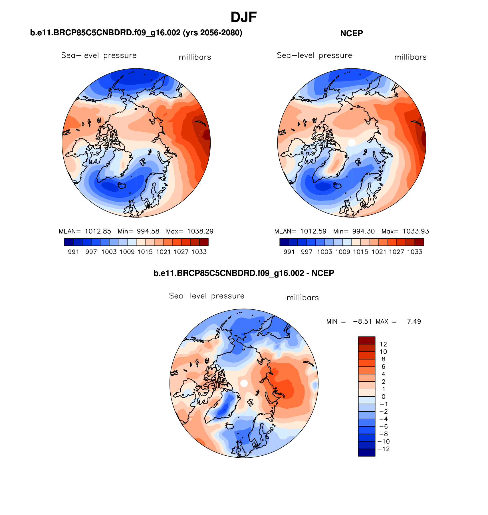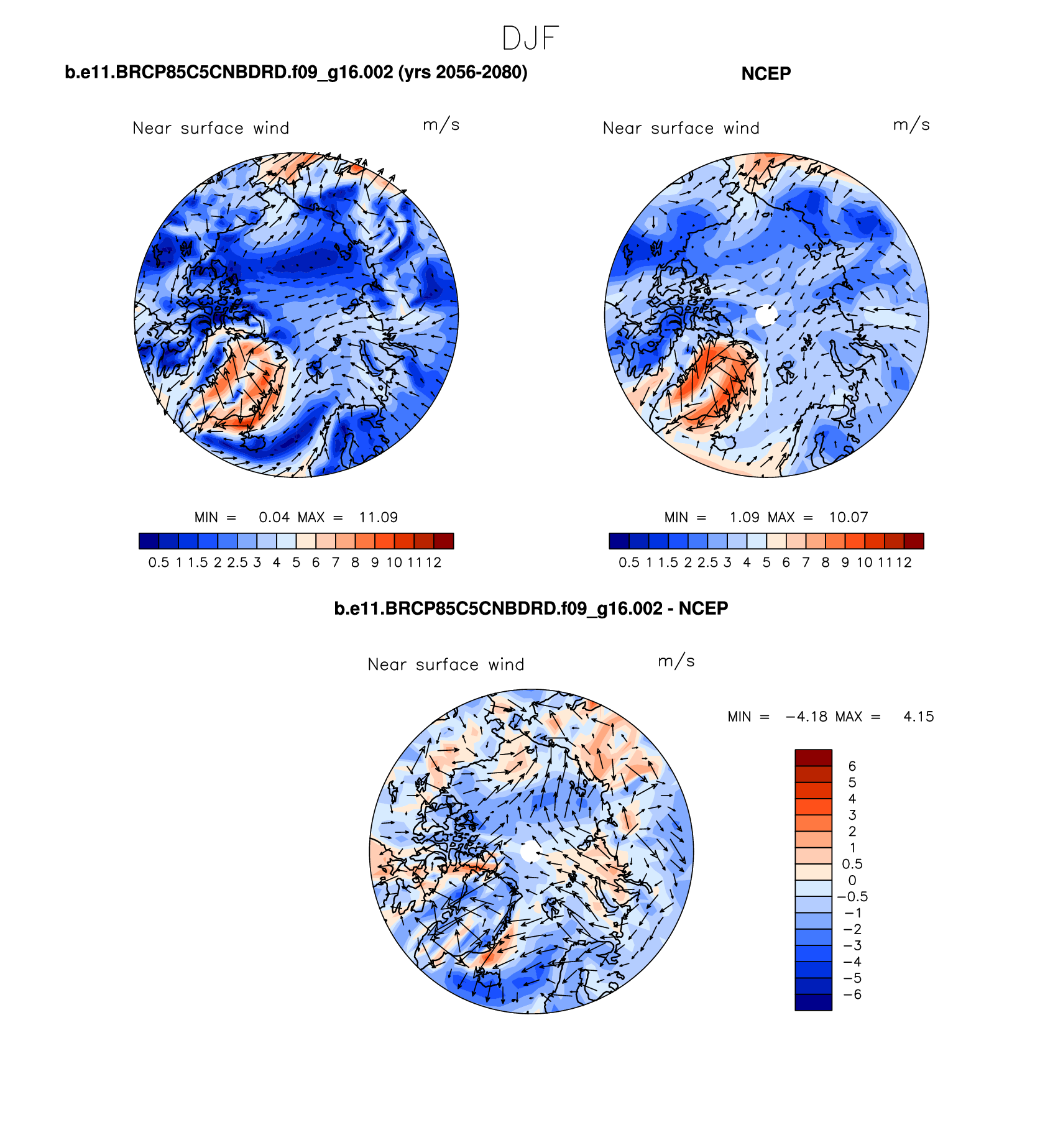 b.e11.BRCP85C5CNBDRD.f09_g16.002 DIAG Set 7 - Polar contour/vector plots of DJF, JJA and ANN means