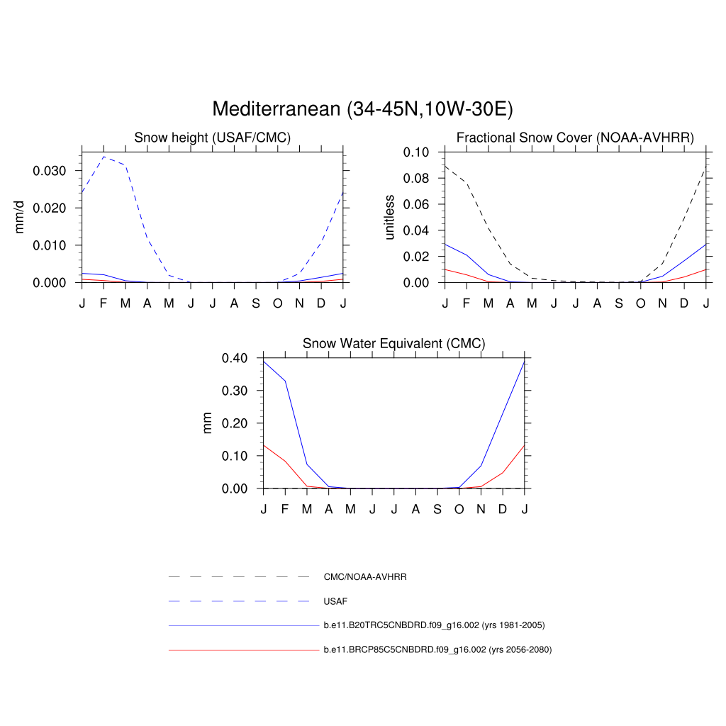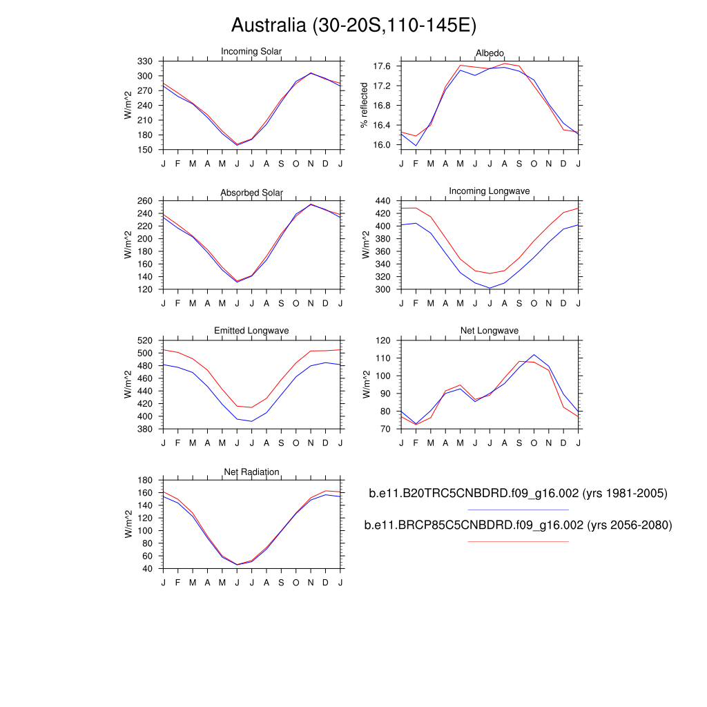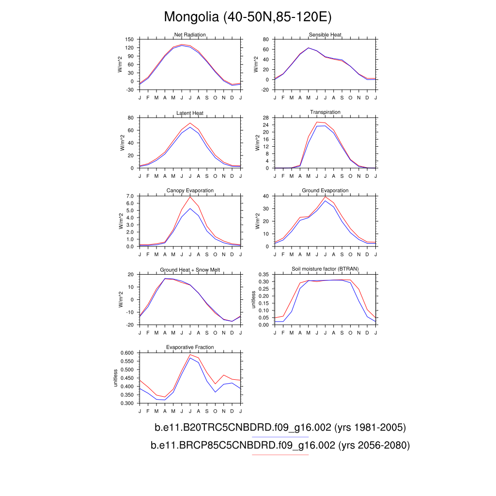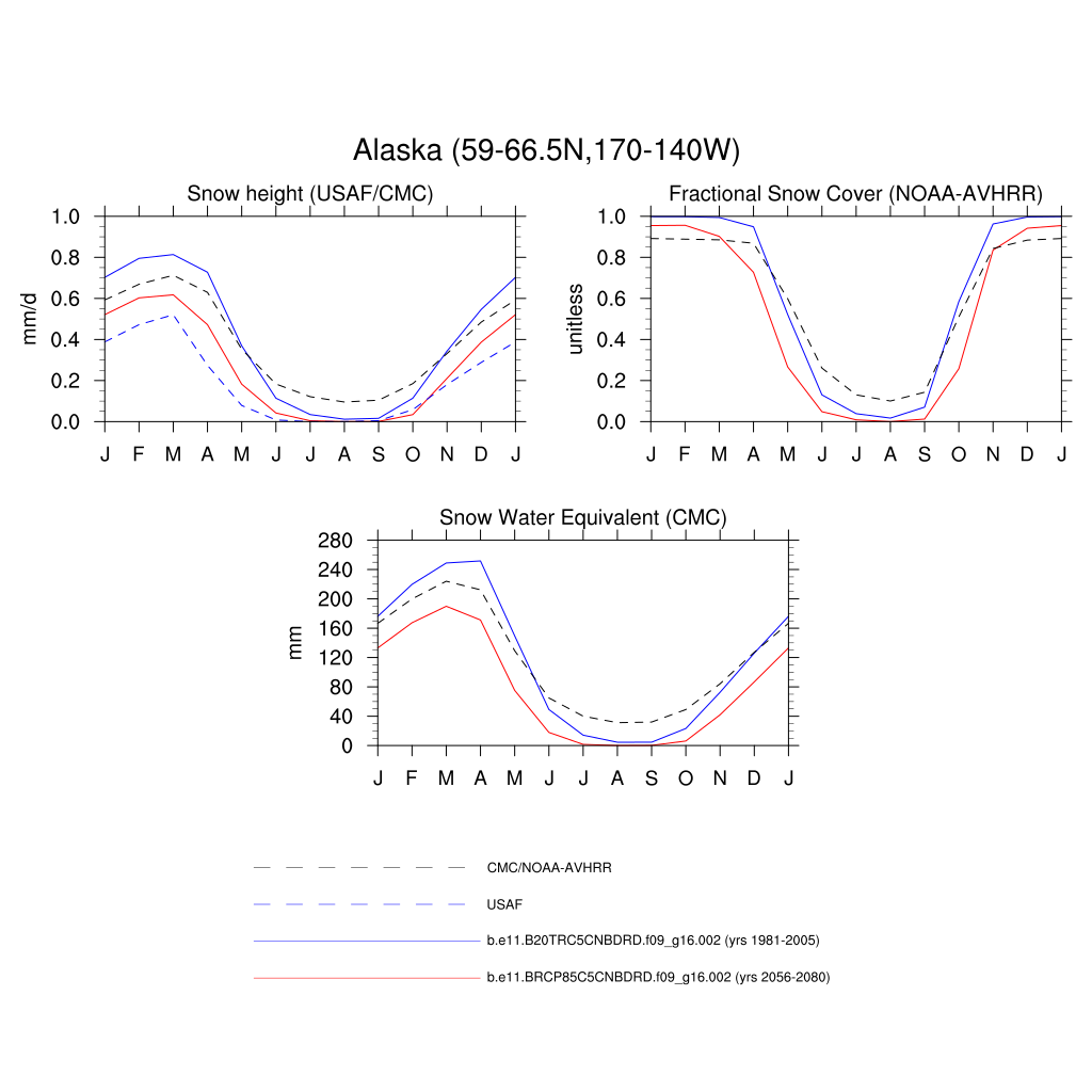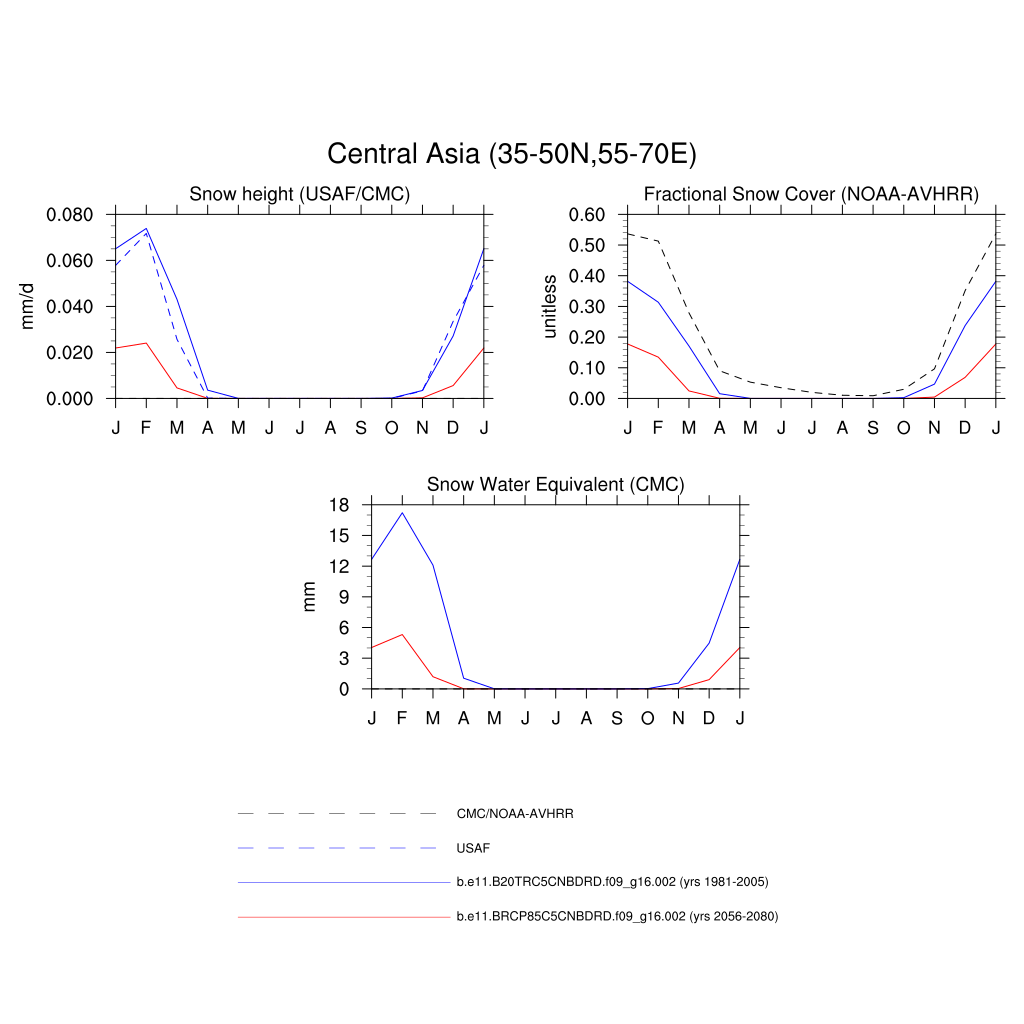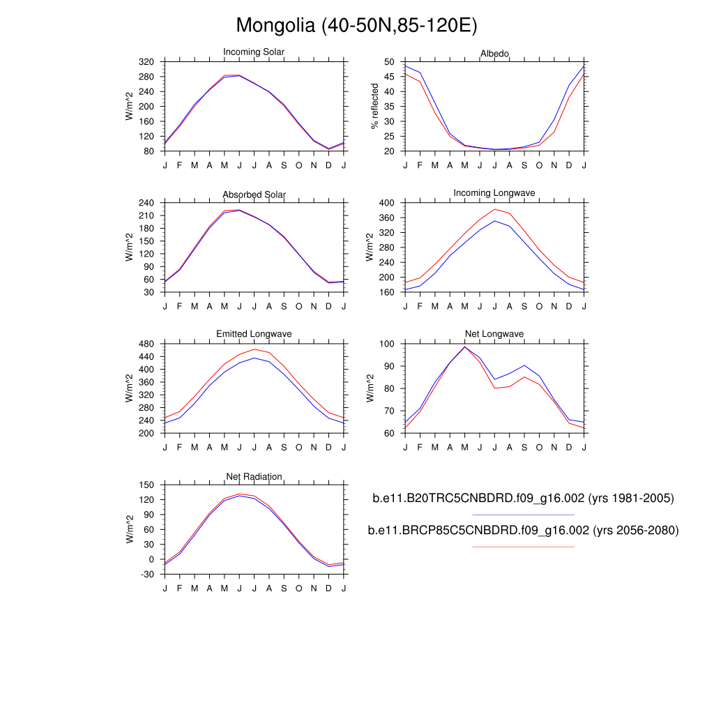 Set 3 Description: Line plots of monthly climatology: regional air temperature, precipitation, runoff, snow depth, radiative fluxes, and turbulent fluxes