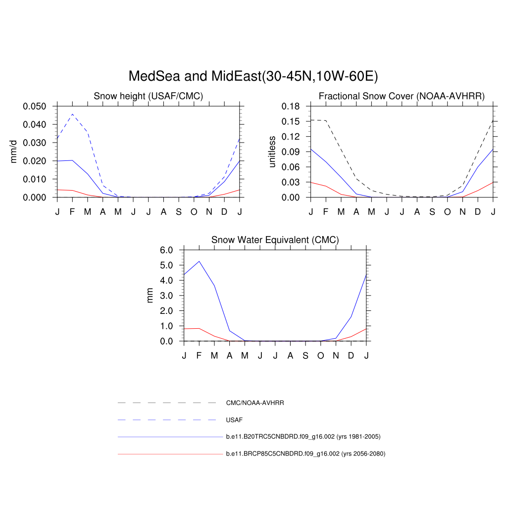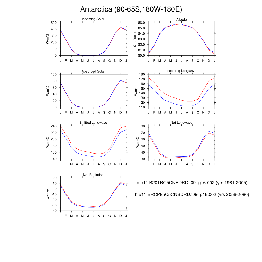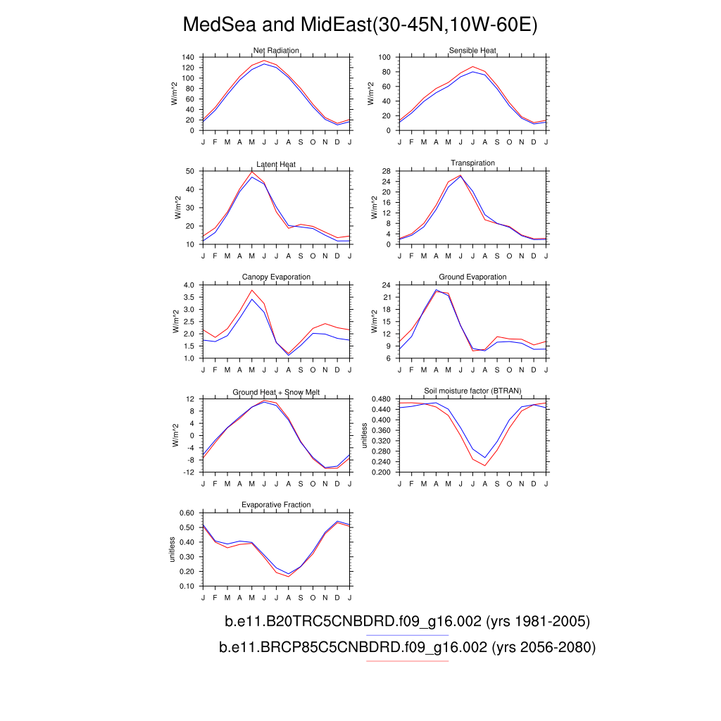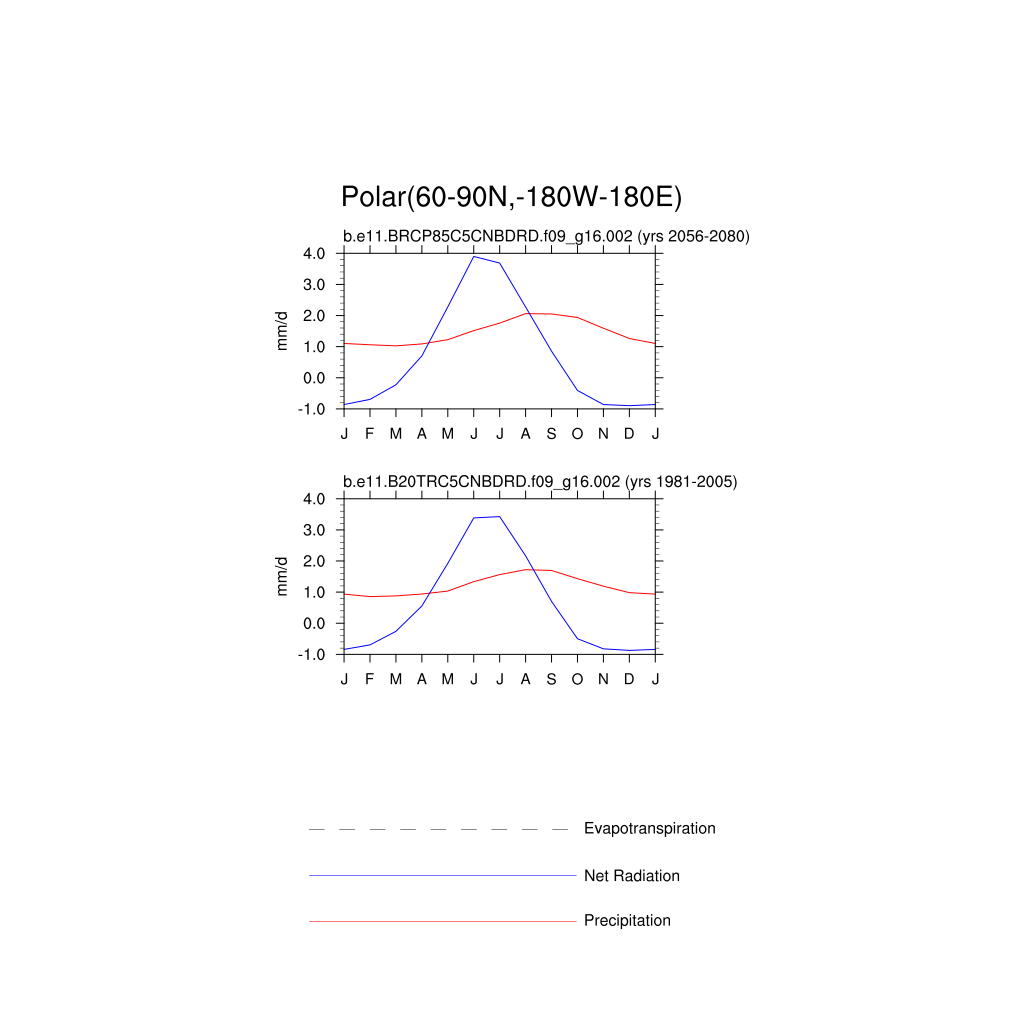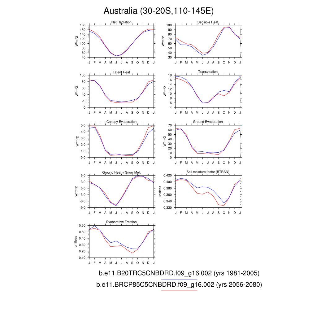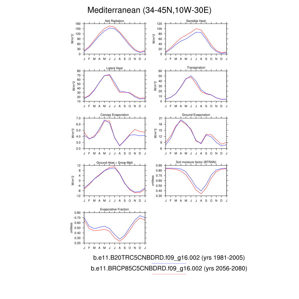 Set 3 Description: Line plots of monthly climatology: regional air temperature, precipitation, runoff, snow depth, radiative fluxes, and turbulent fluxes