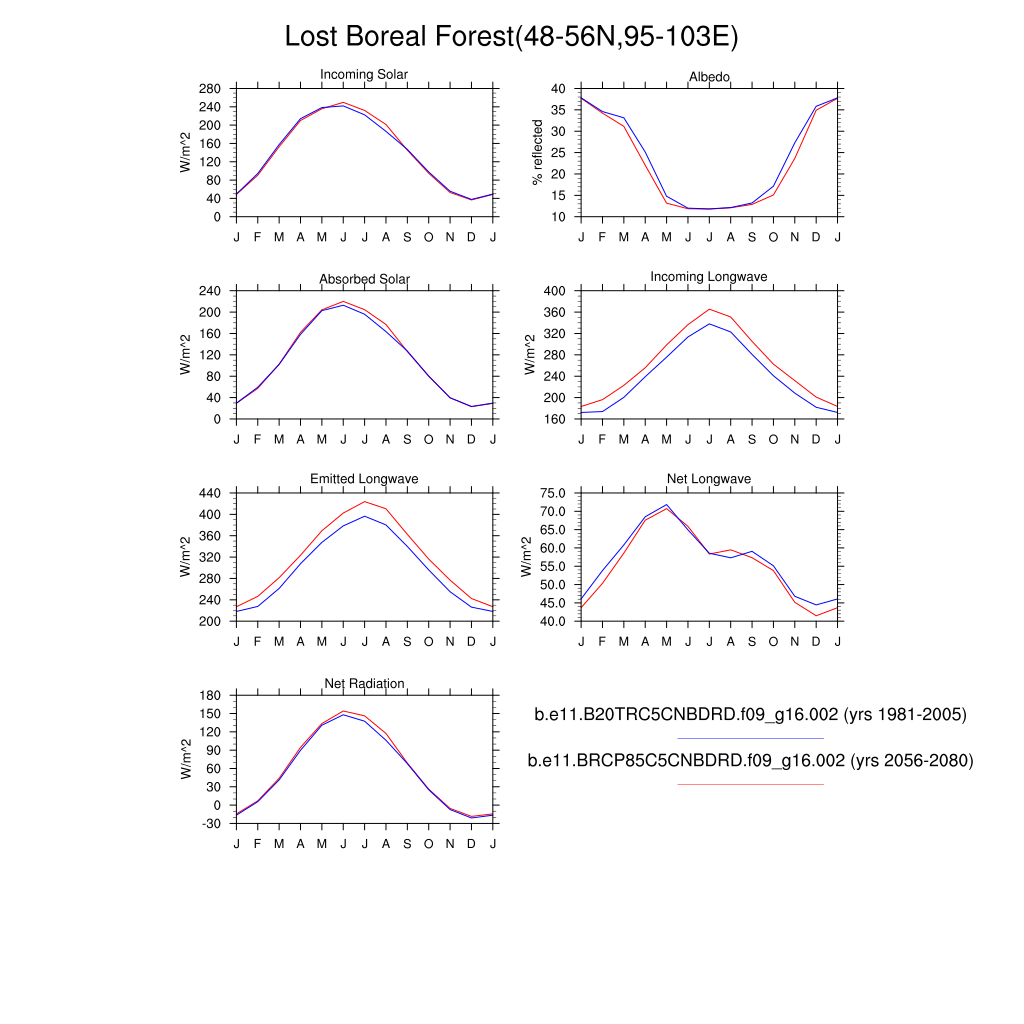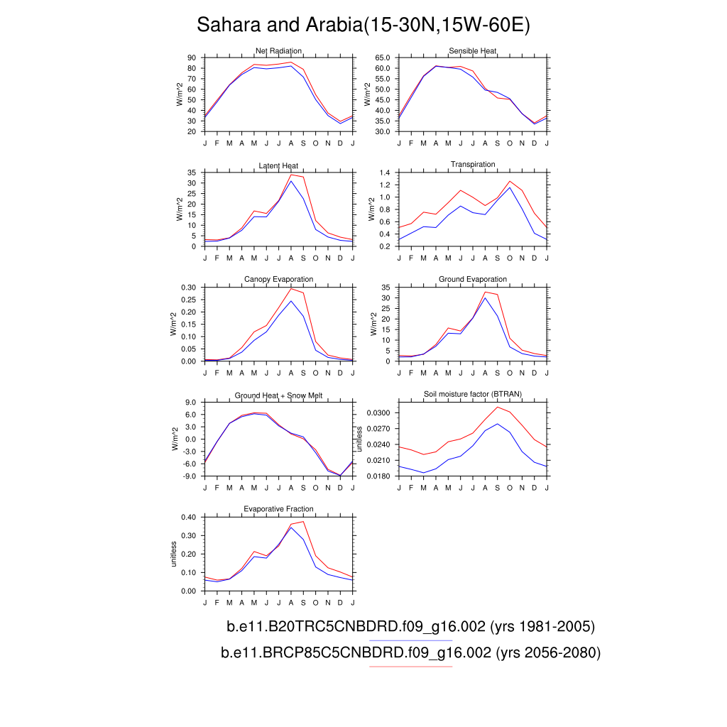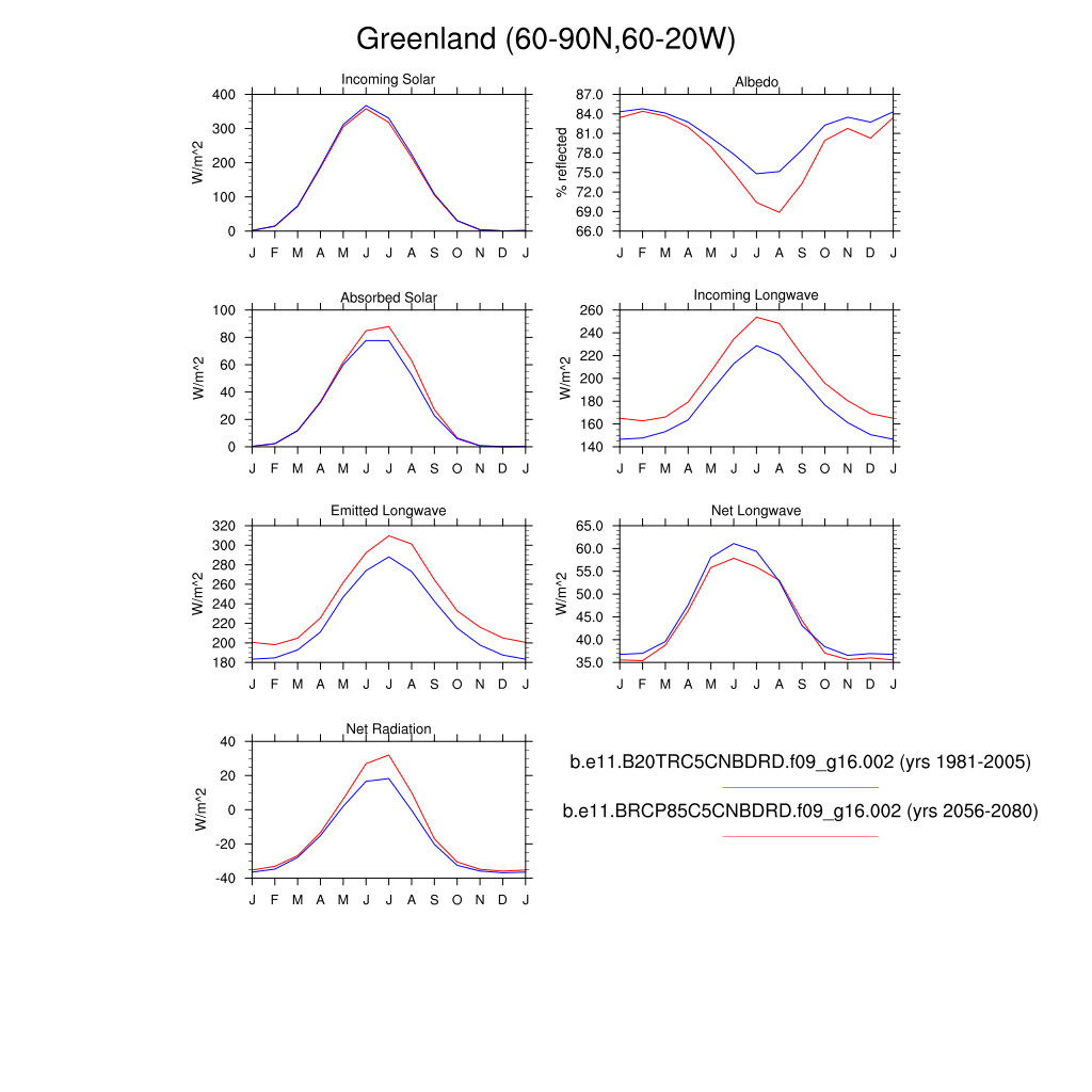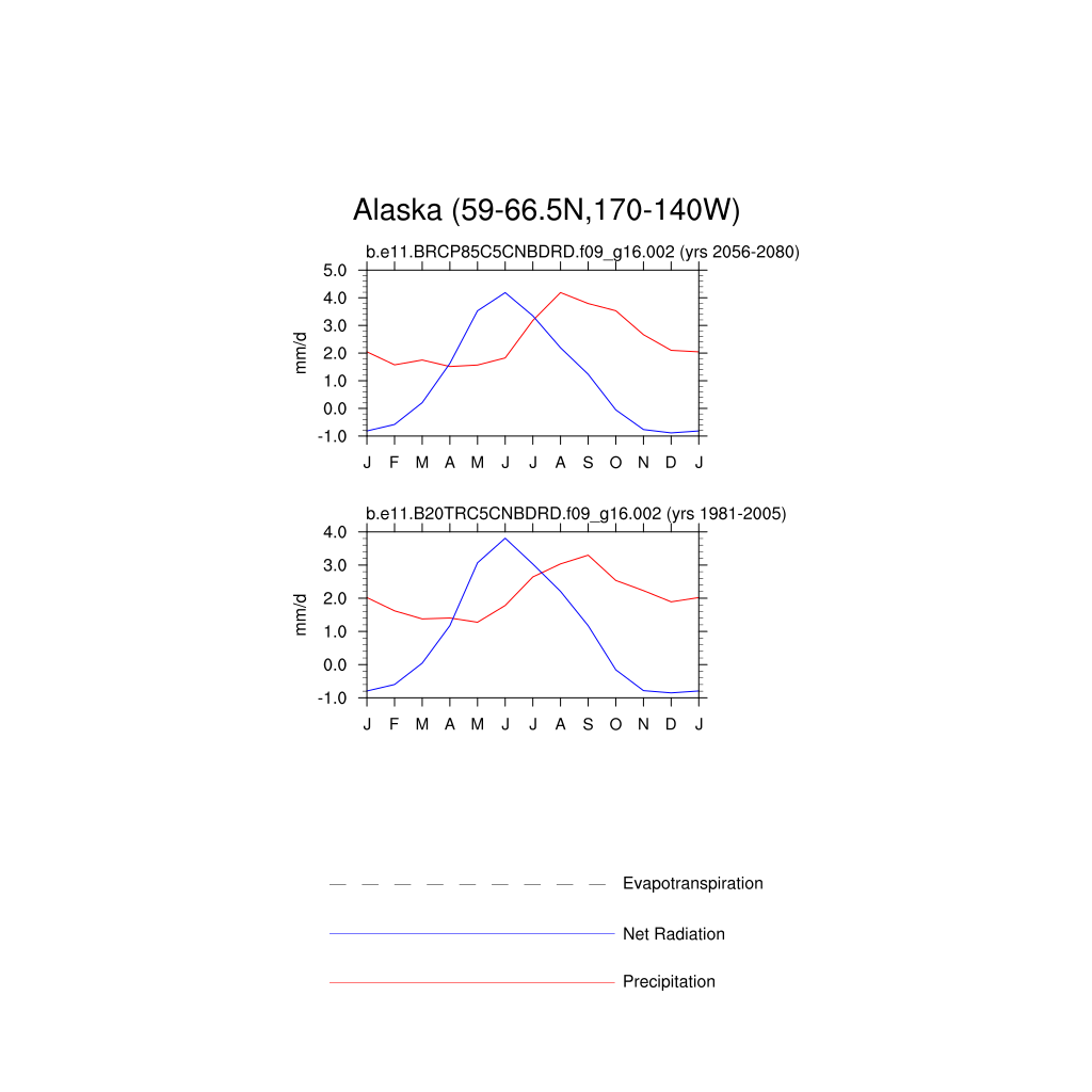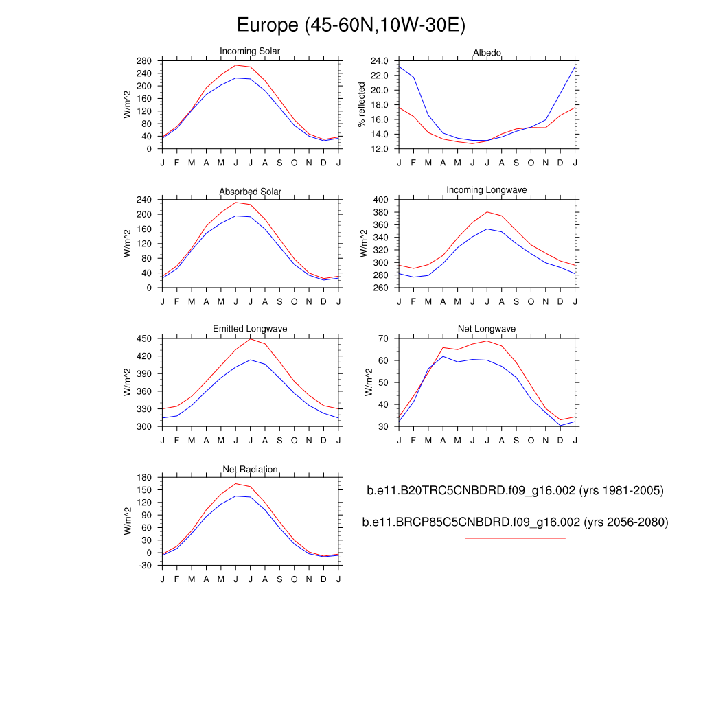 Set 3 Description: Line plots of monthly climatology: regional air temperature, precipitation, runoff, snow depth, radiative fluxes, and turbulent fluxes
