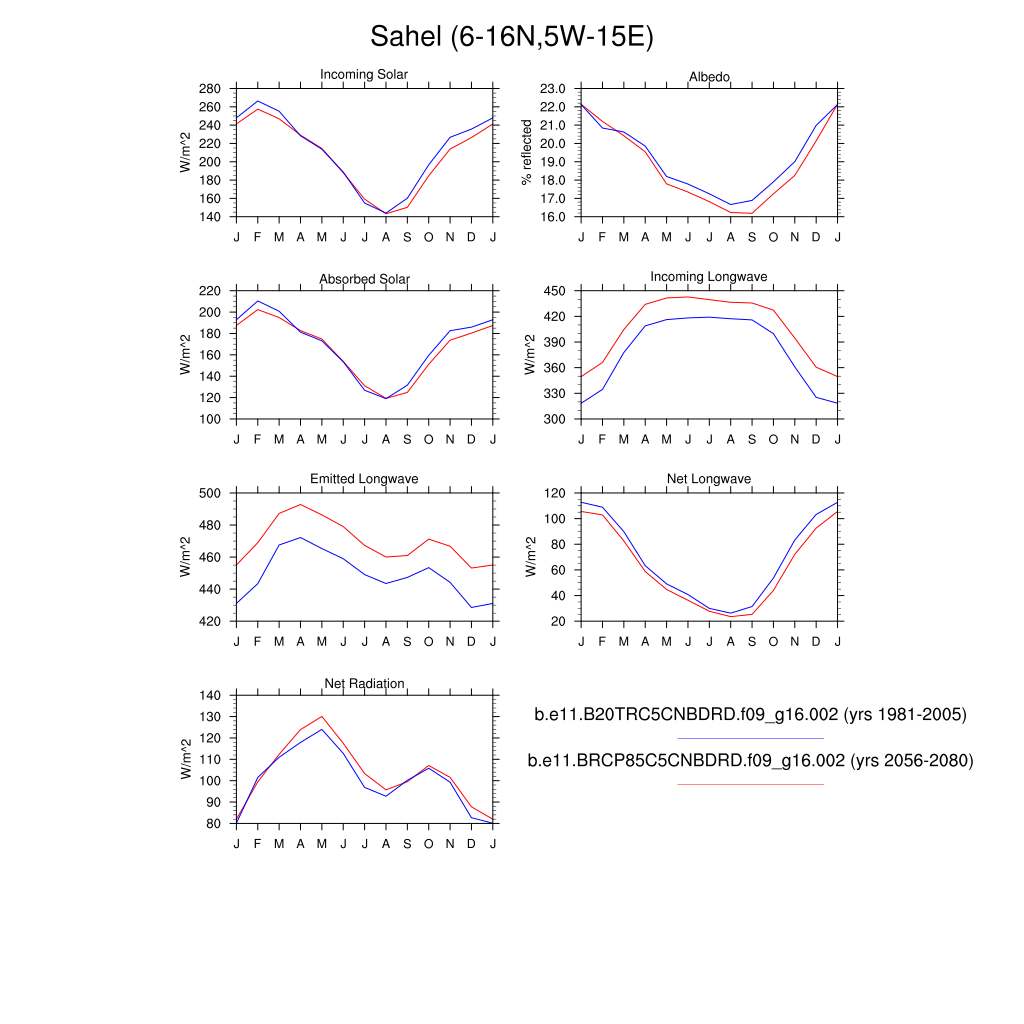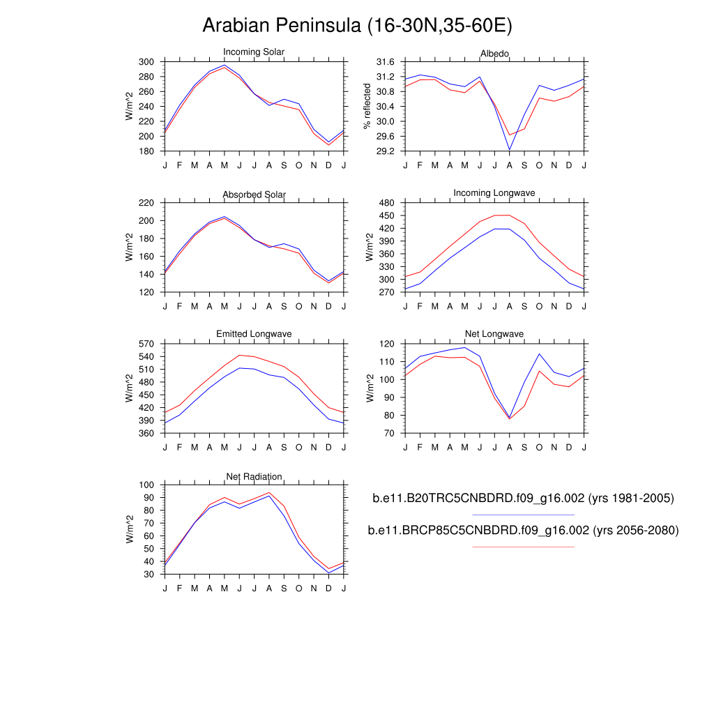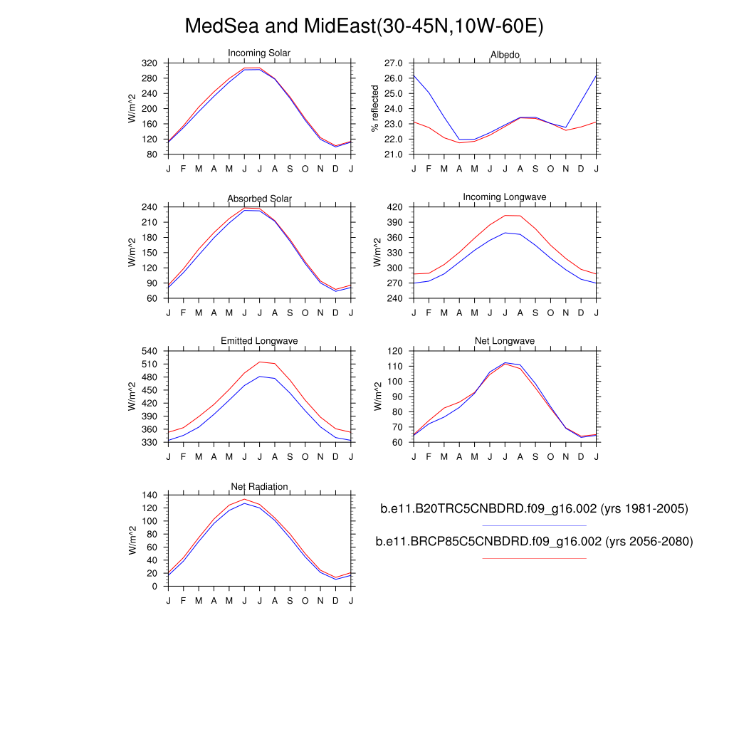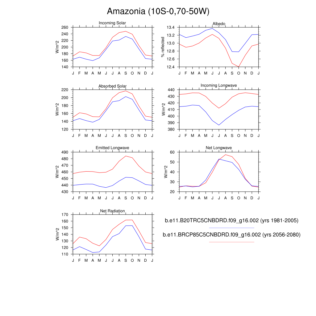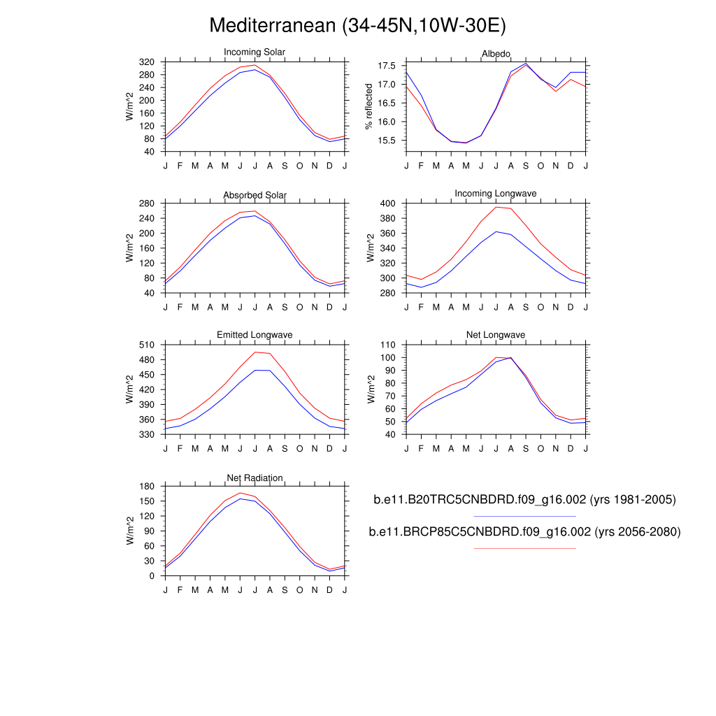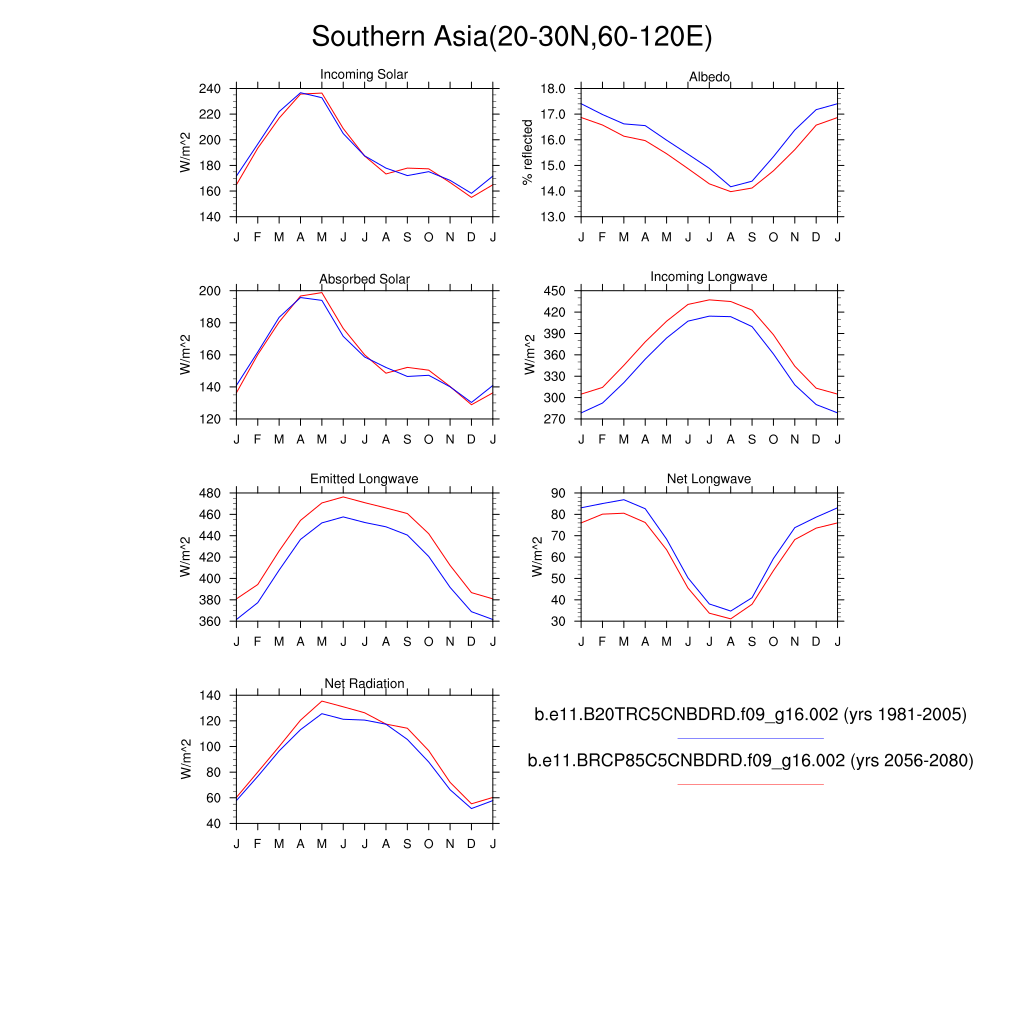 Set 3 Description: Line plots of monthly climatology: regional air temperature, precipitation, runoff, snow depth, radiative fluxes, and turbulent fluxes