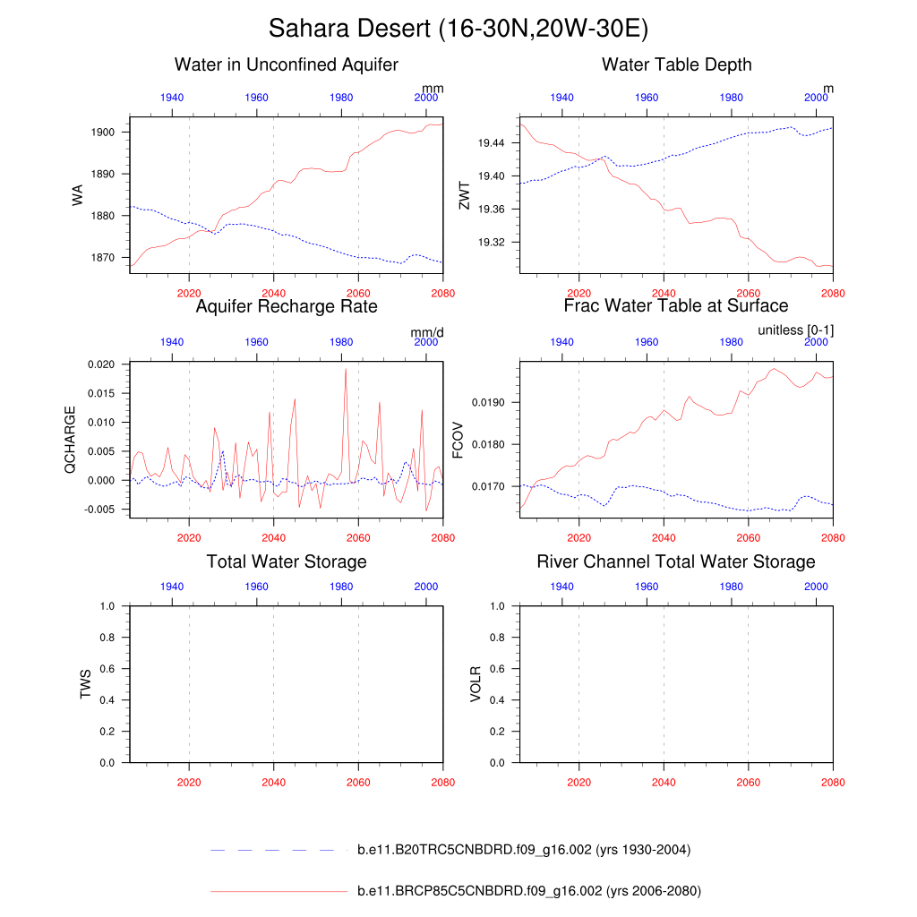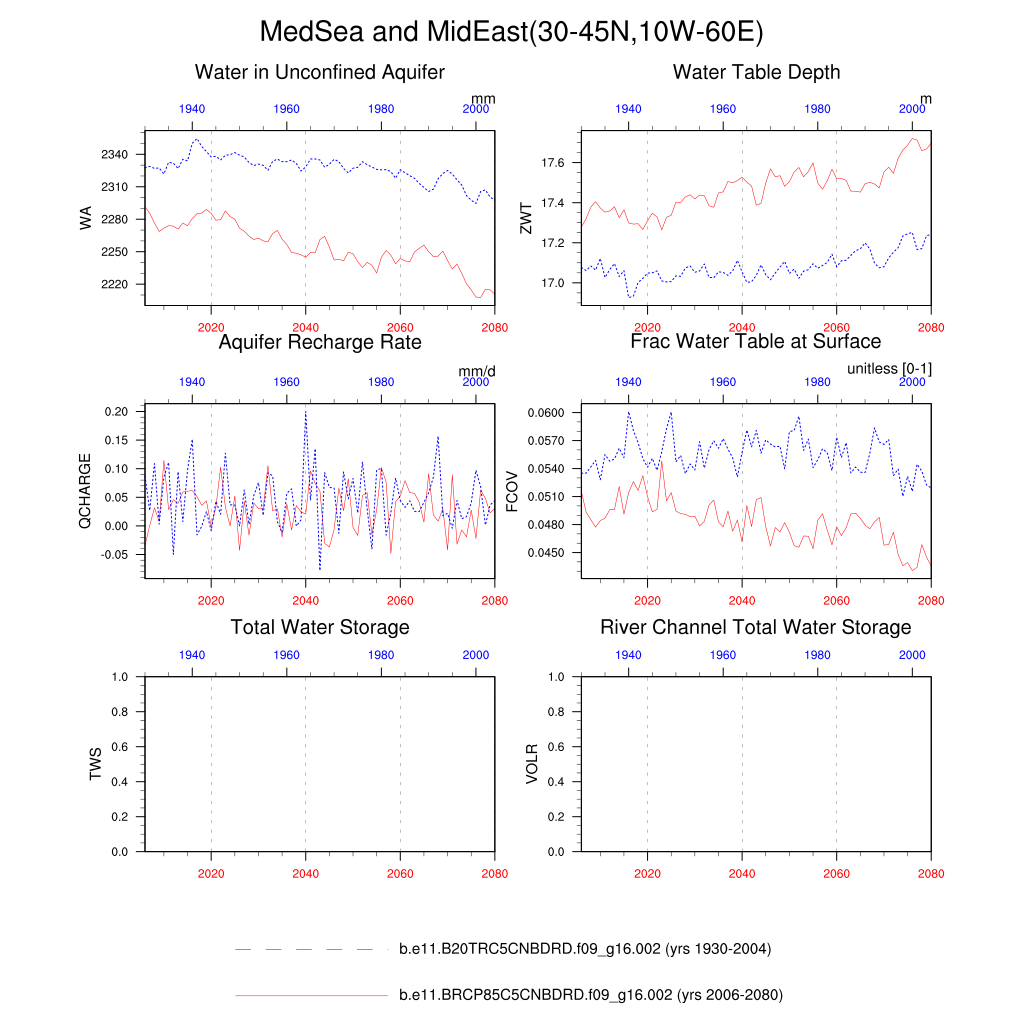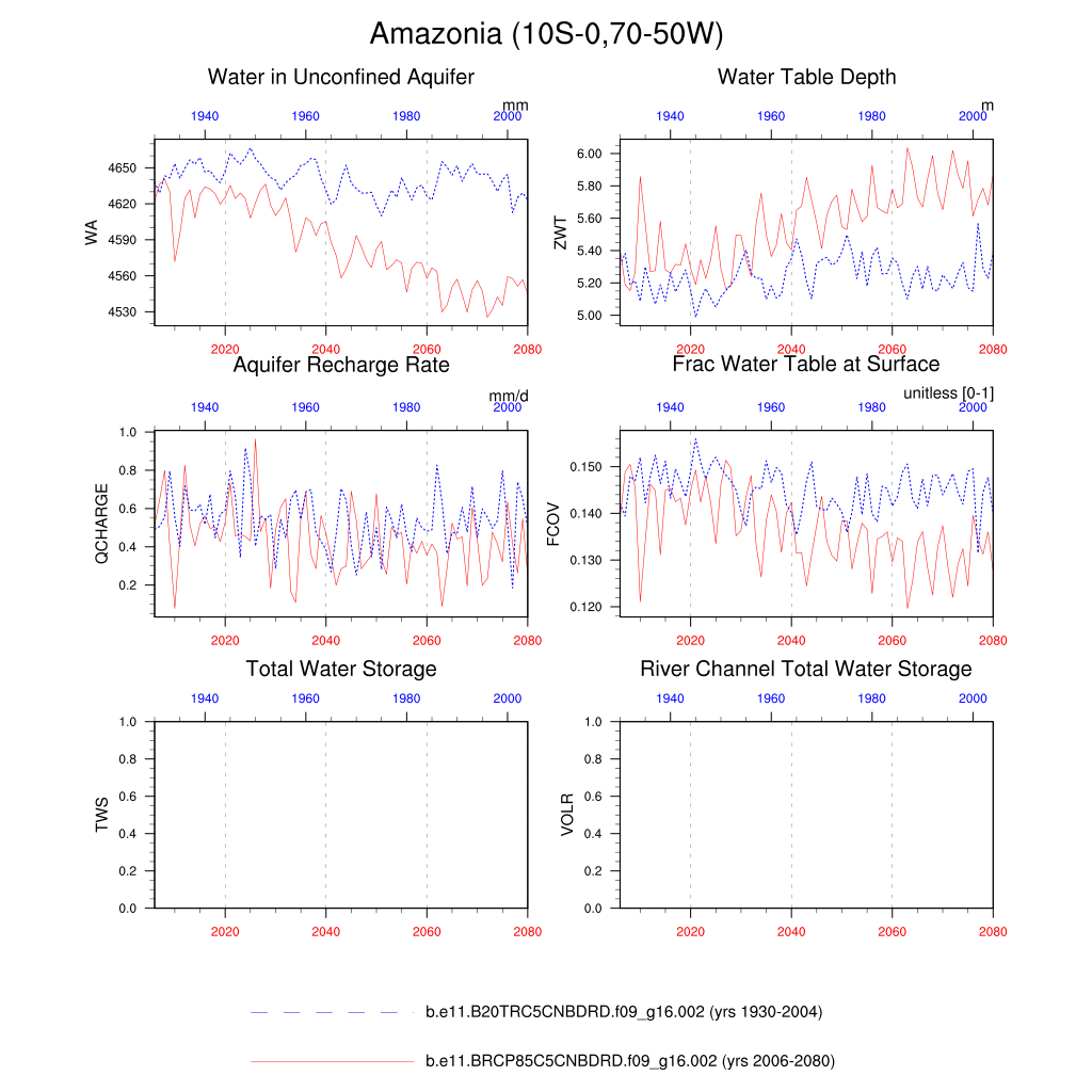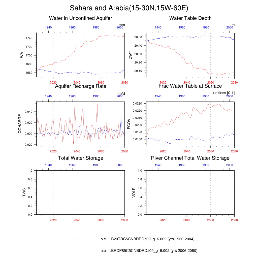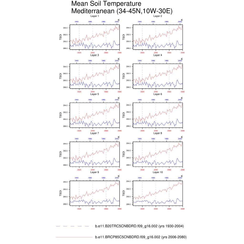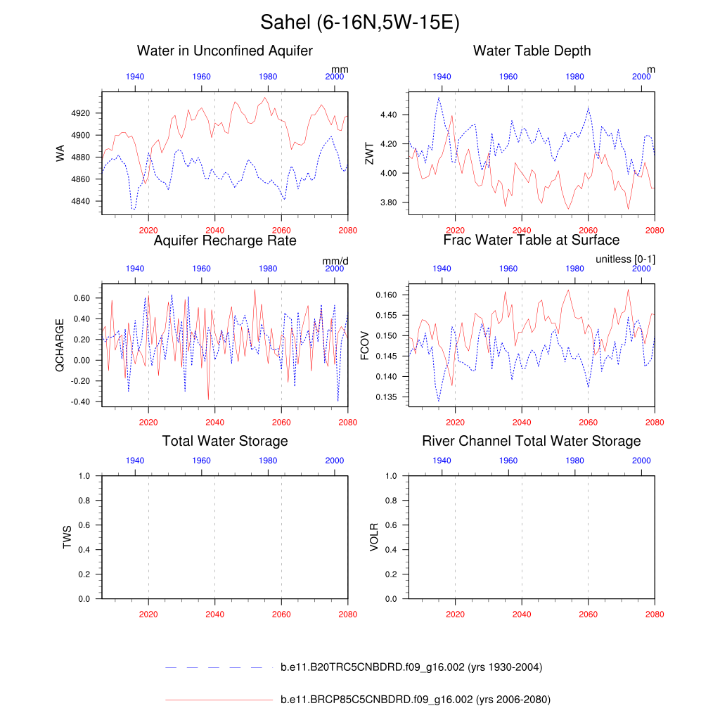 Set 6 Description: Line plots of annual trends in regional soil water/ice and temperature, runoff, snow water/ice, photosynthesis