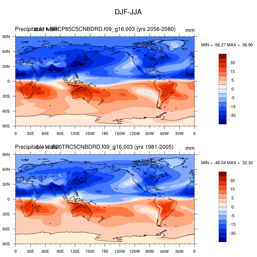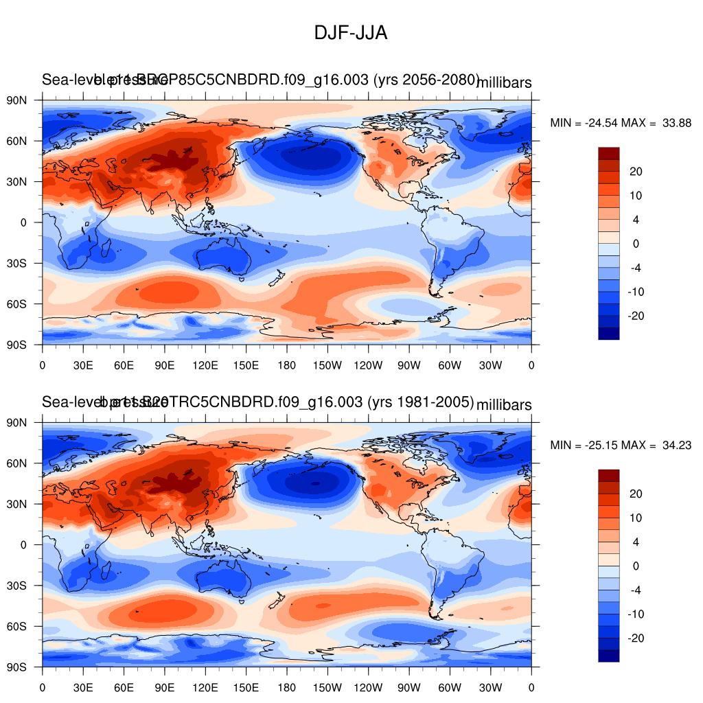 DIAG Set 9 - Horizontal contour plots of DJF-JJA differences