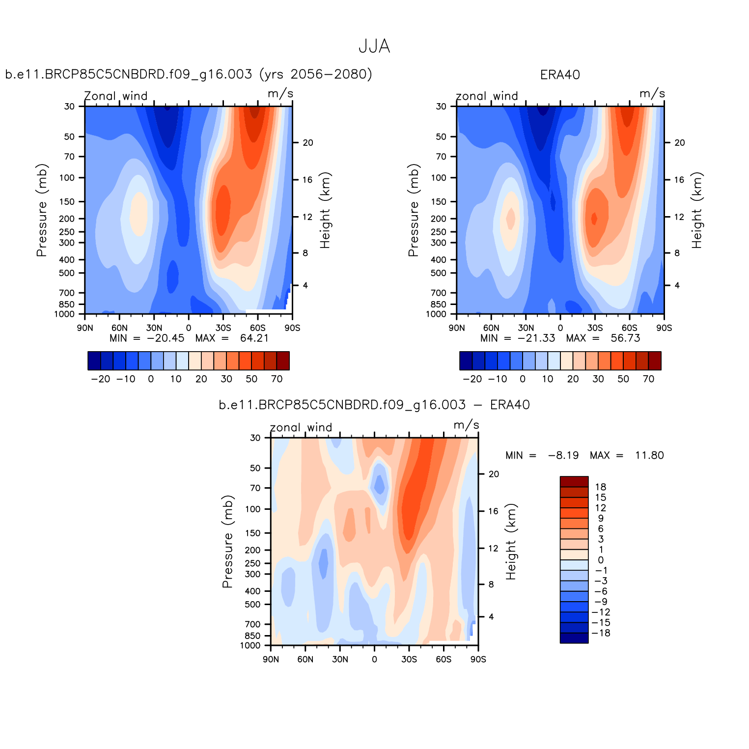 DIAG Set 4 - Vertical contour plots of DJF, JJA and ANN zonal means