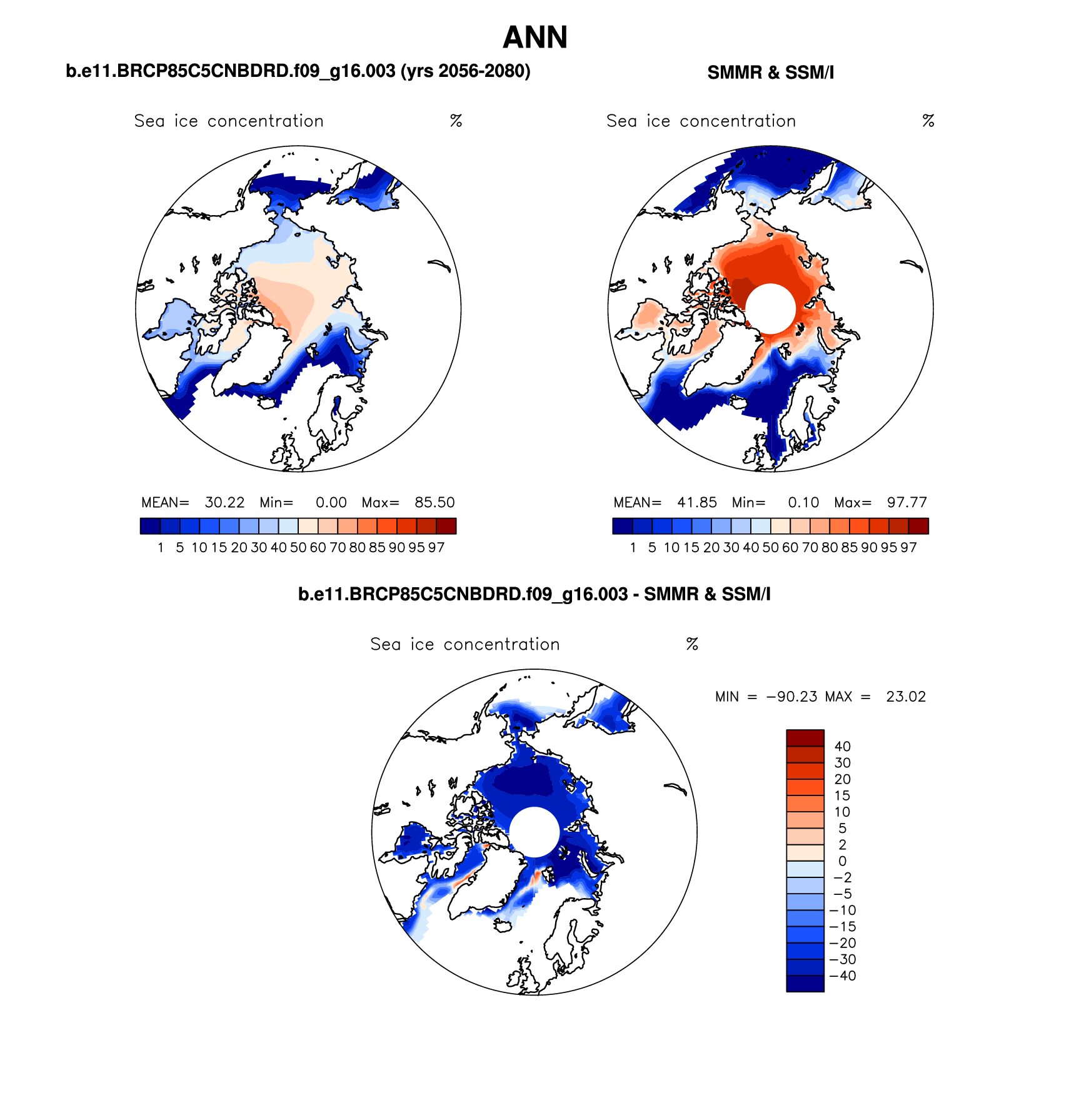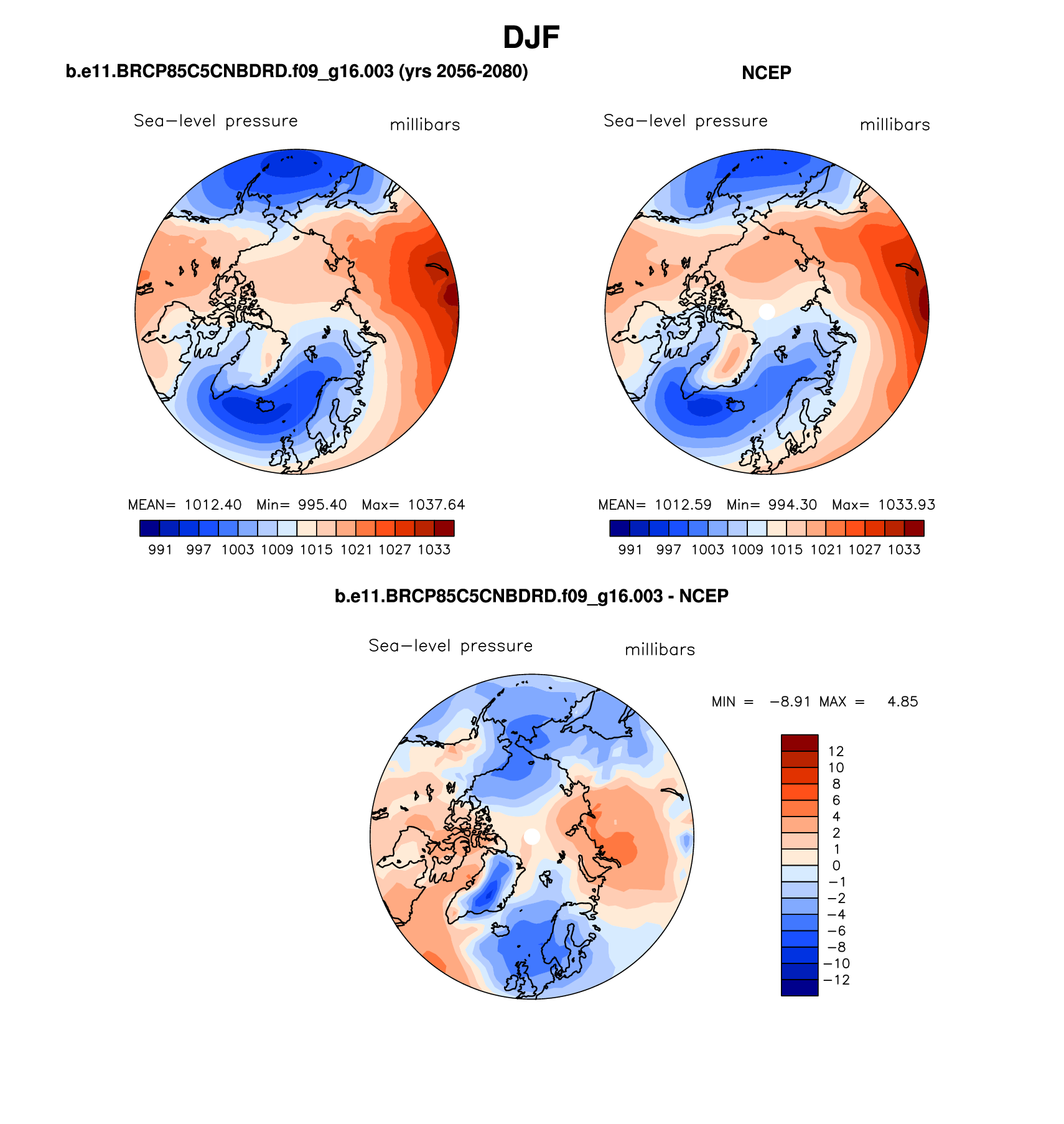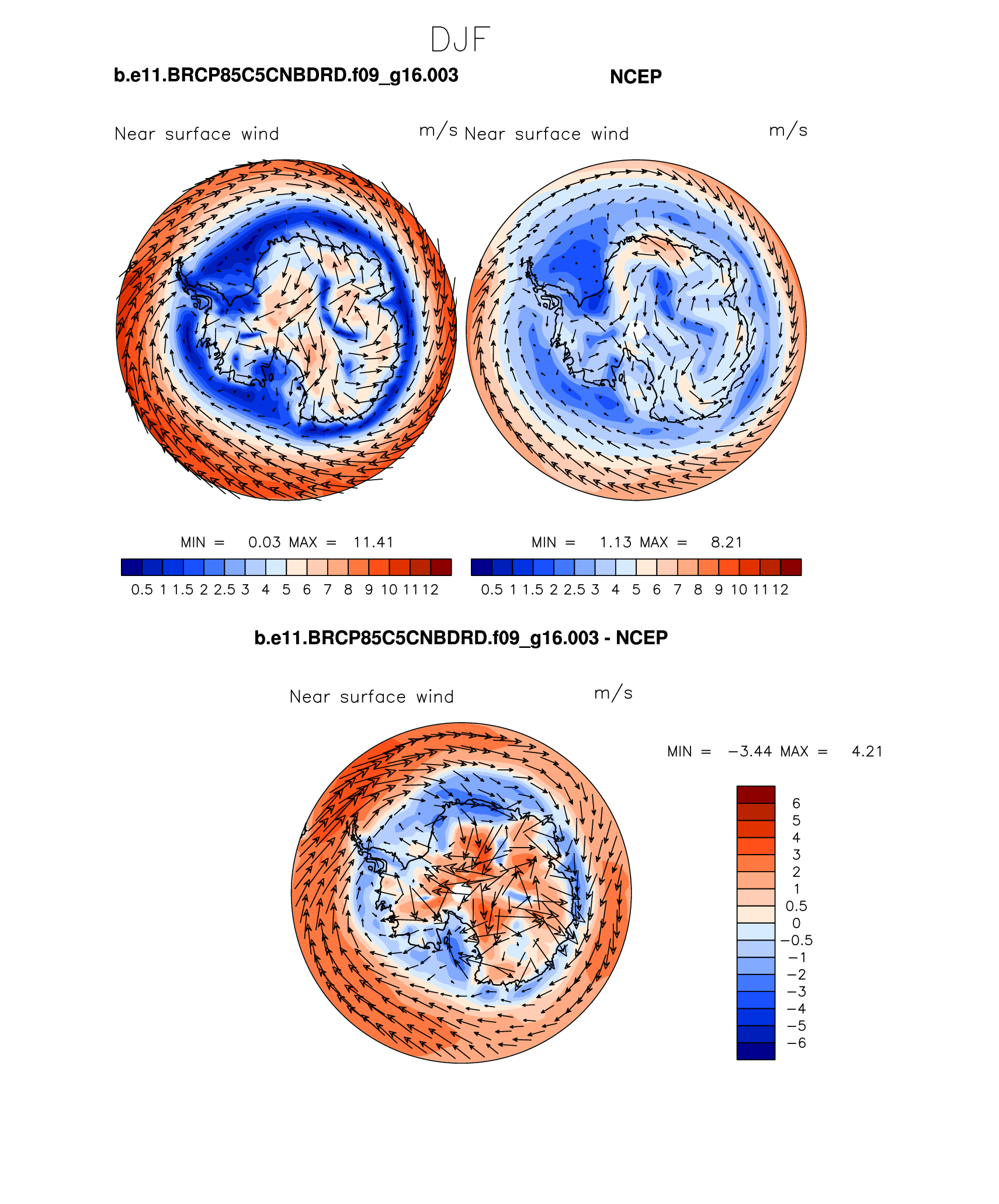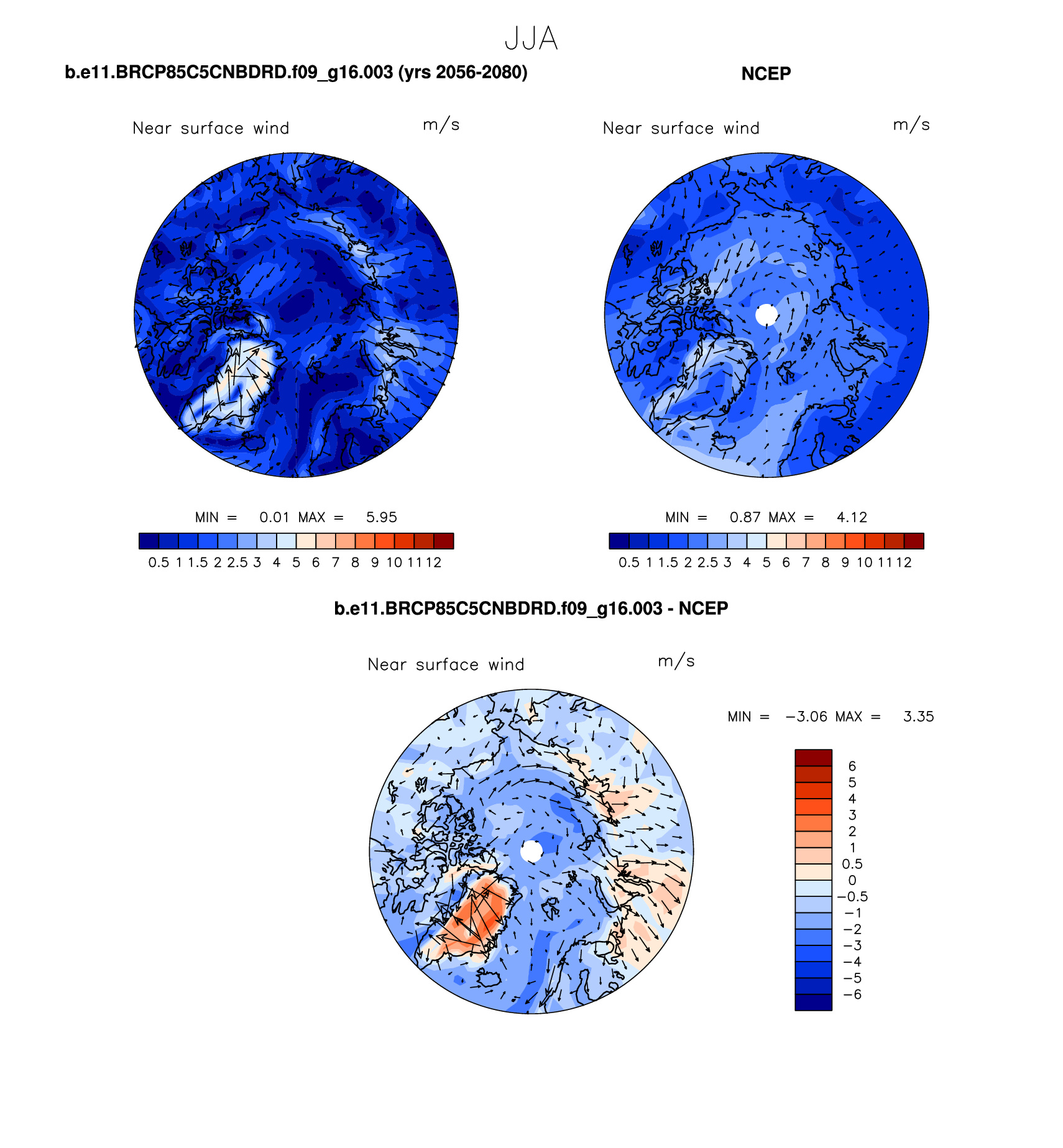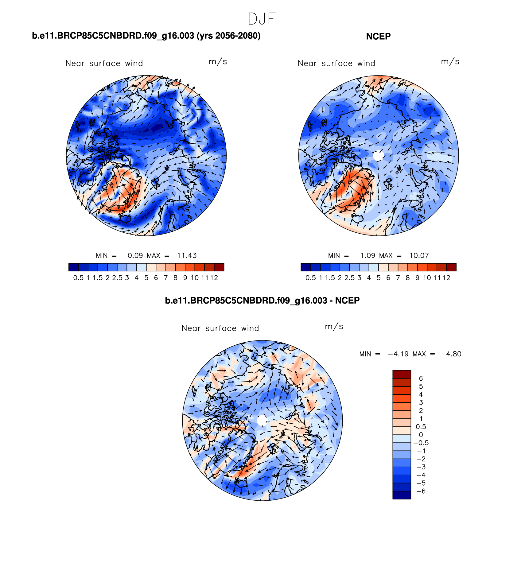 b.e11.BRCP85C5CNBDRD.f09_g16.003 DIAG Set 7 - Polar contour/vector plots of DJF, JJA and ANN means