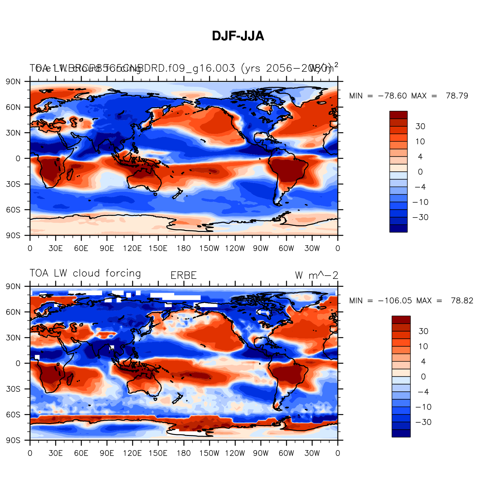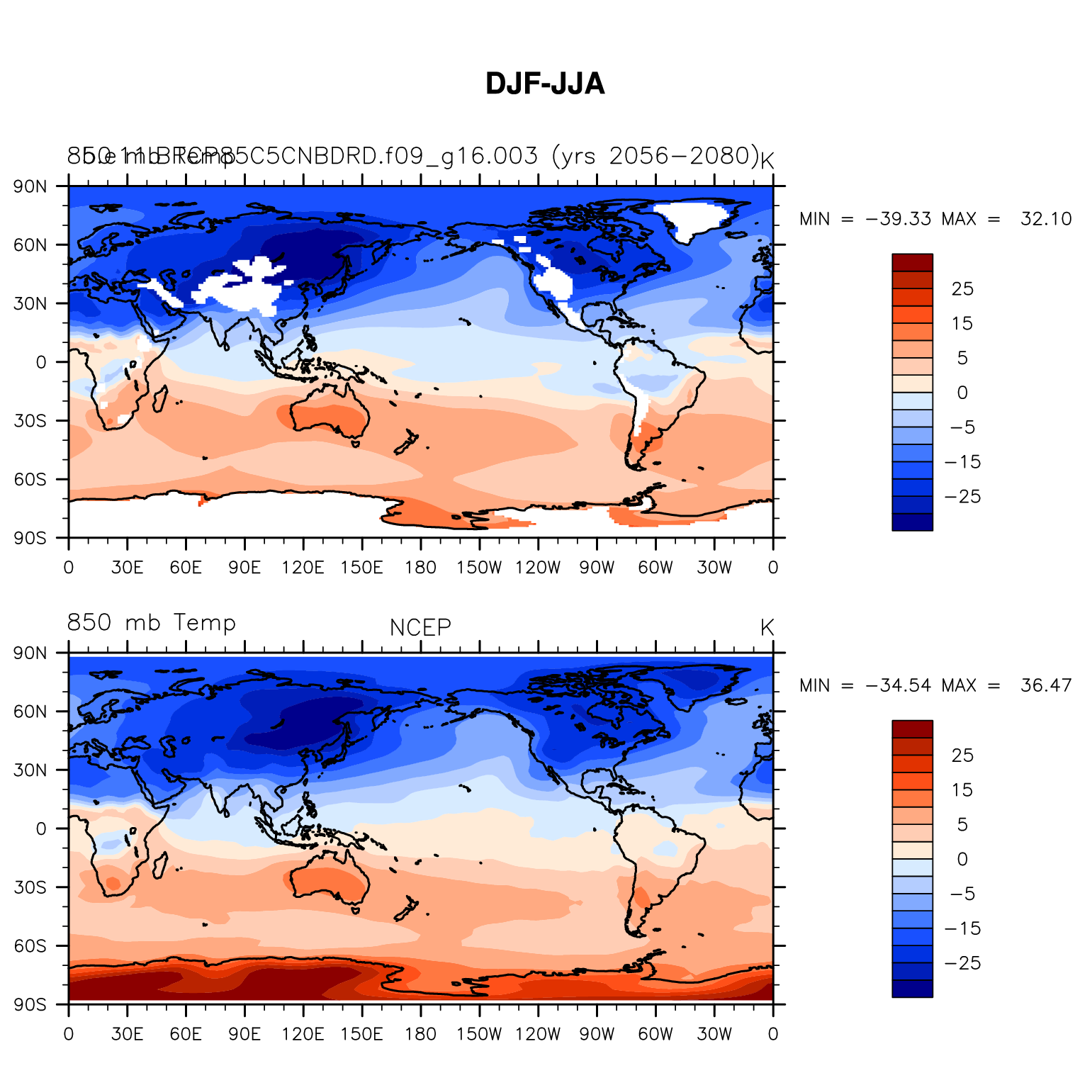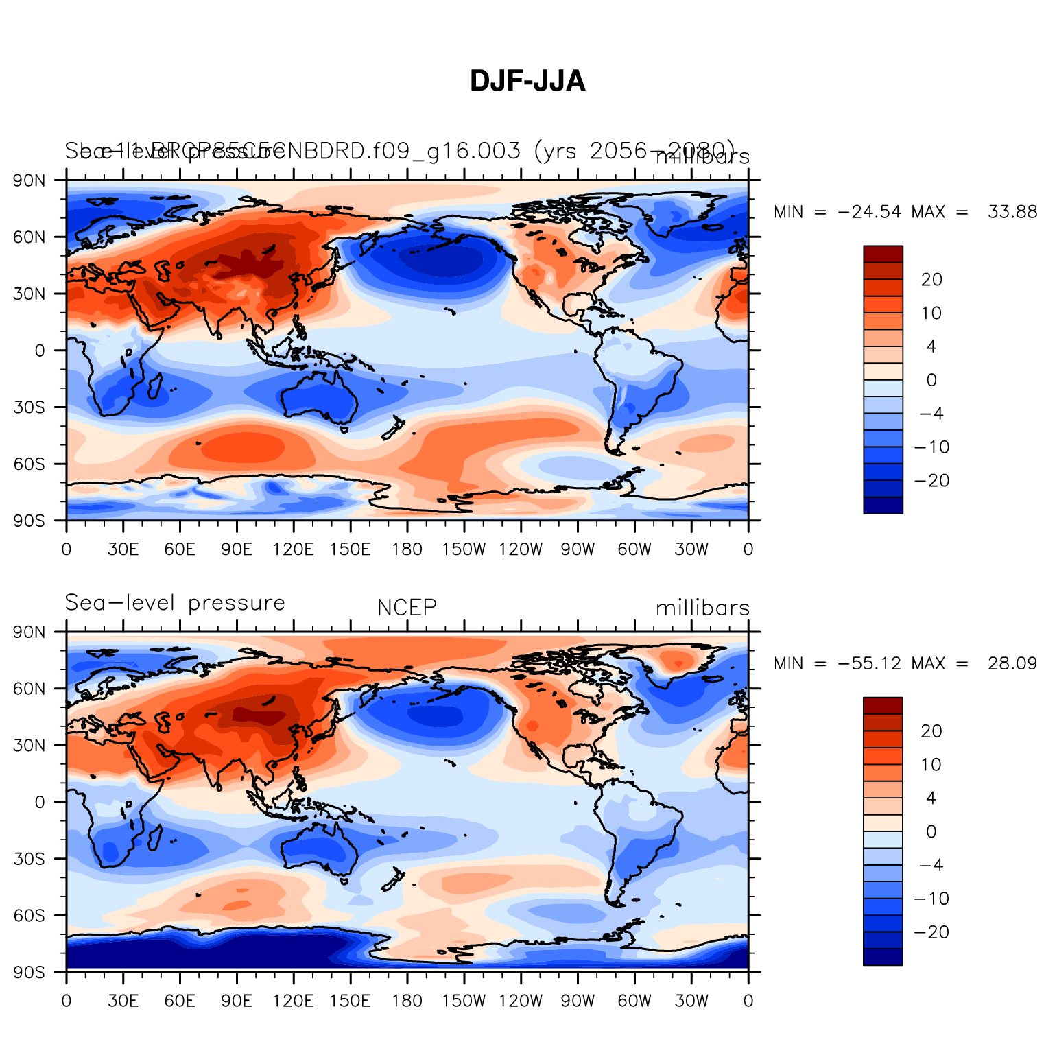 b.e11.BRCP85C5CNBDRD.f09_g16.003 DIAG Set 9 - Horizontal contour plots of DJF-JJA differences