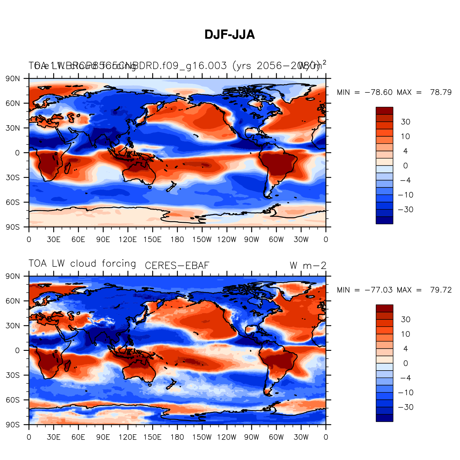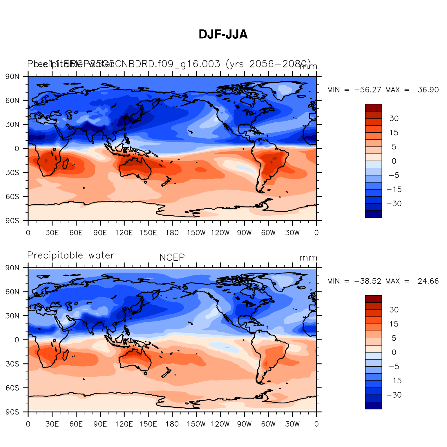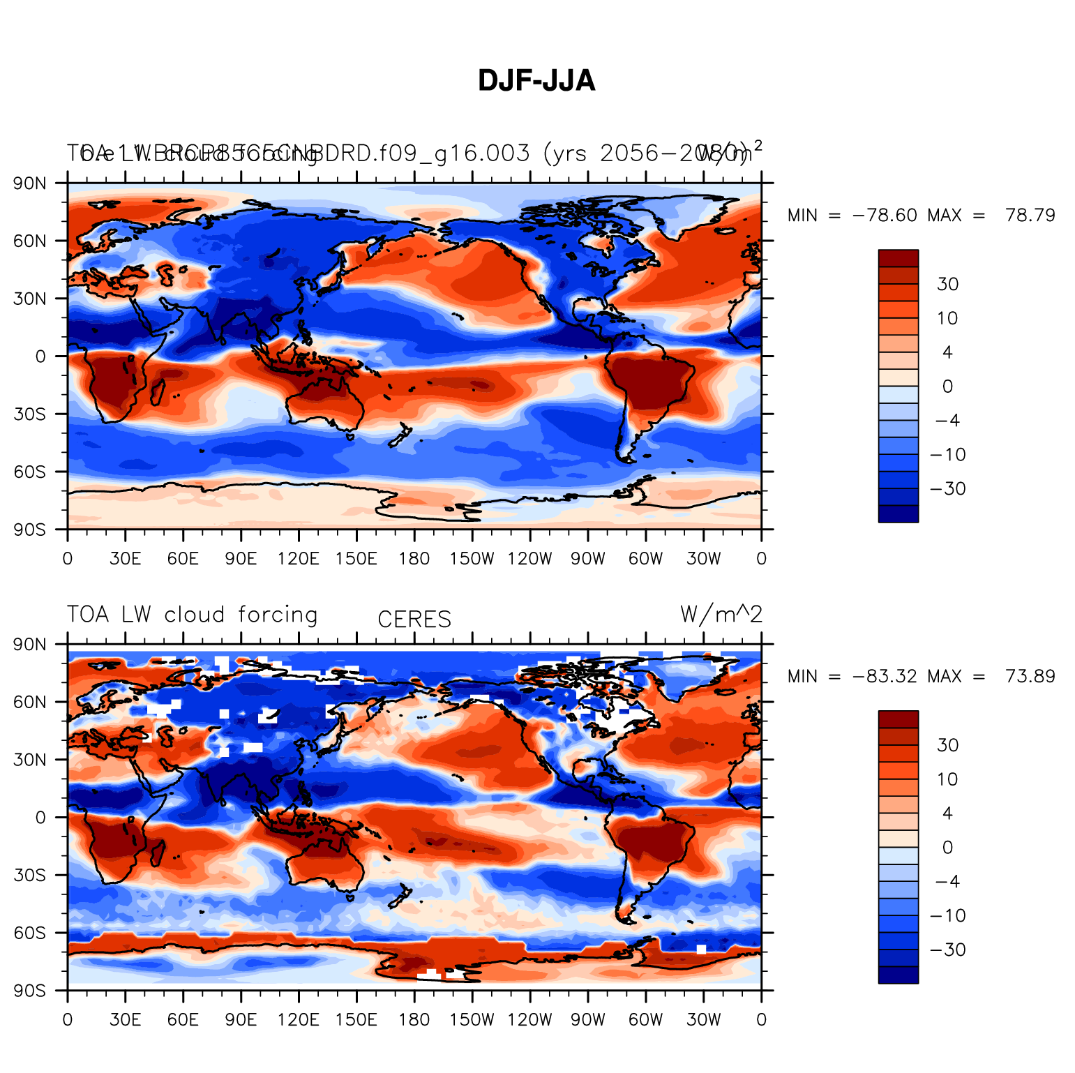 b.e11.BRCP85C5CNBDRD.f09_g16.003 DIAG Set 9 - Horizontal contour plots of DJF-JJA differences