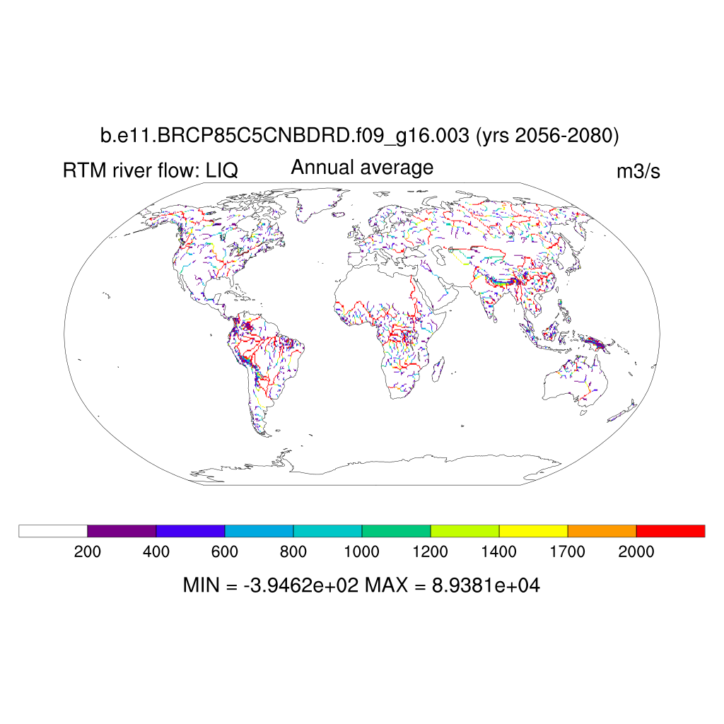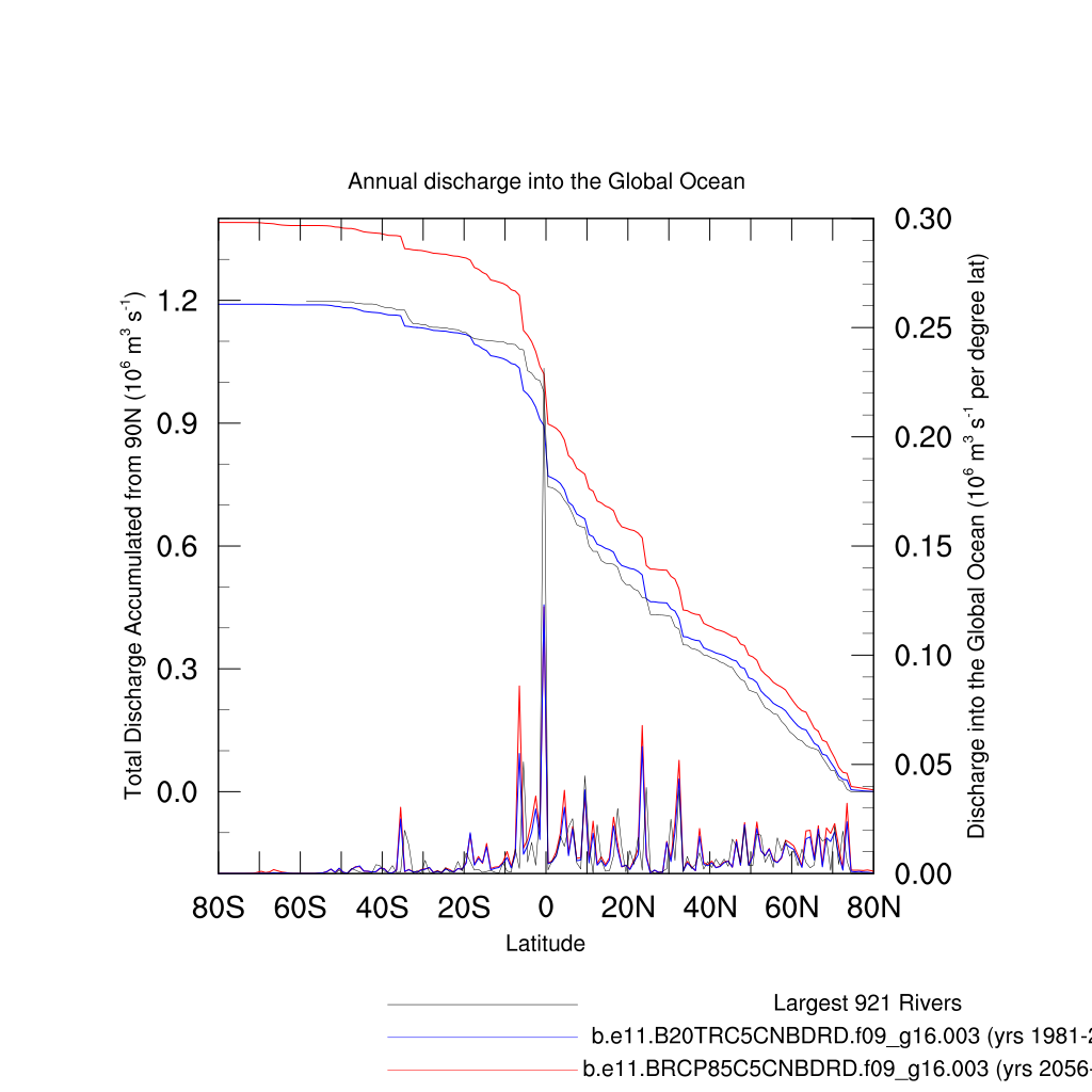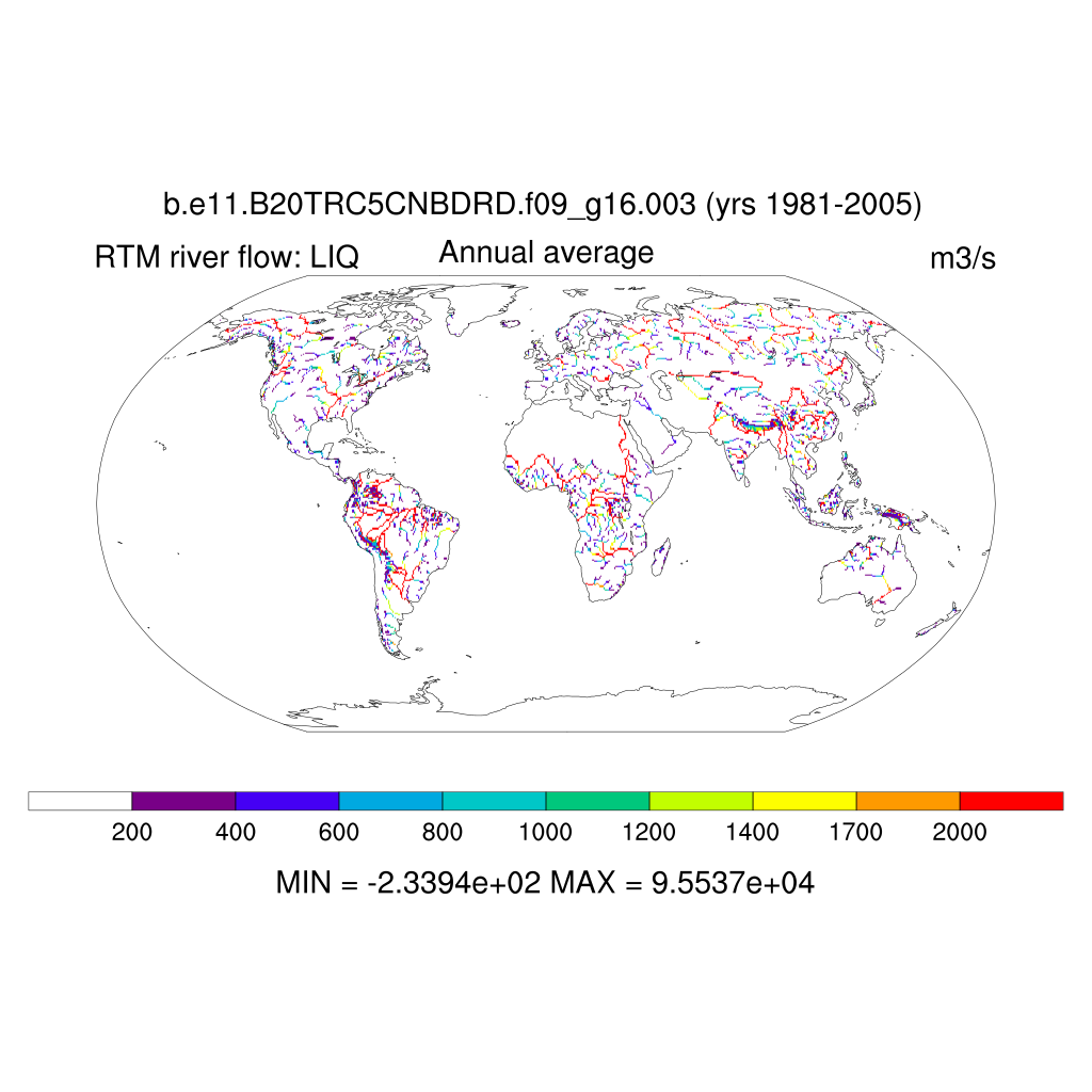 Set 7 Description: Line plots, tables, and maps of RTM river flow and discharge to oceans