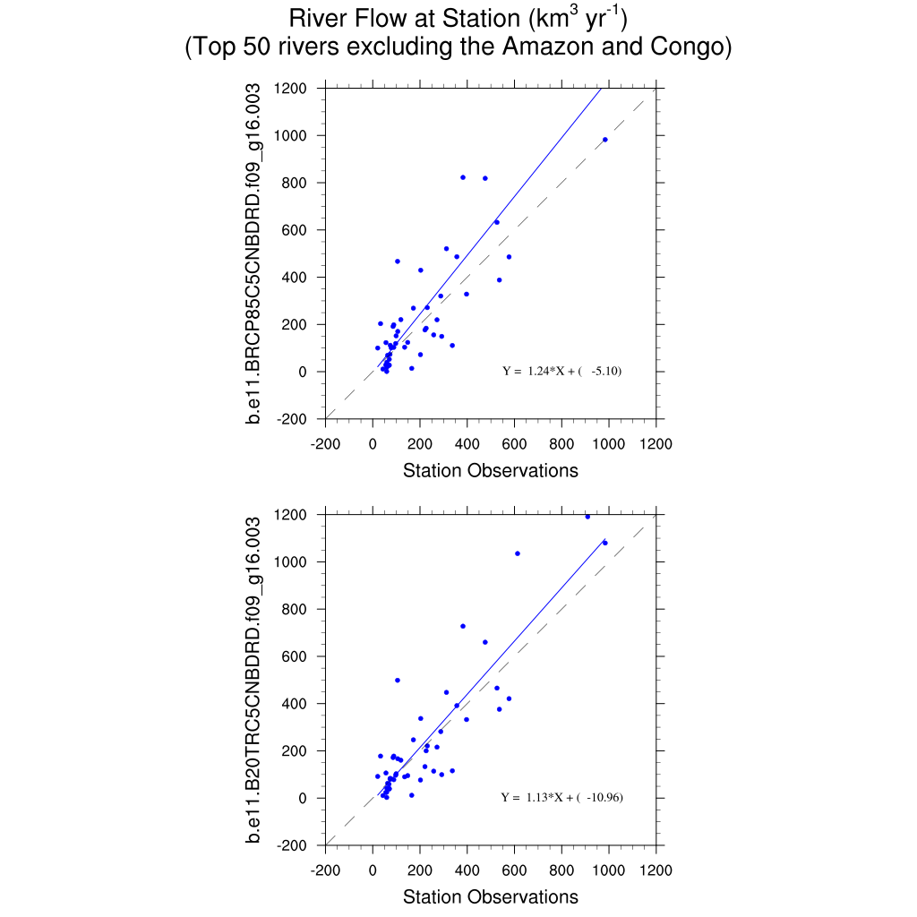 | RTM flow at station versus obs for world's 50 largest rivers (QCHANR) | plot | |