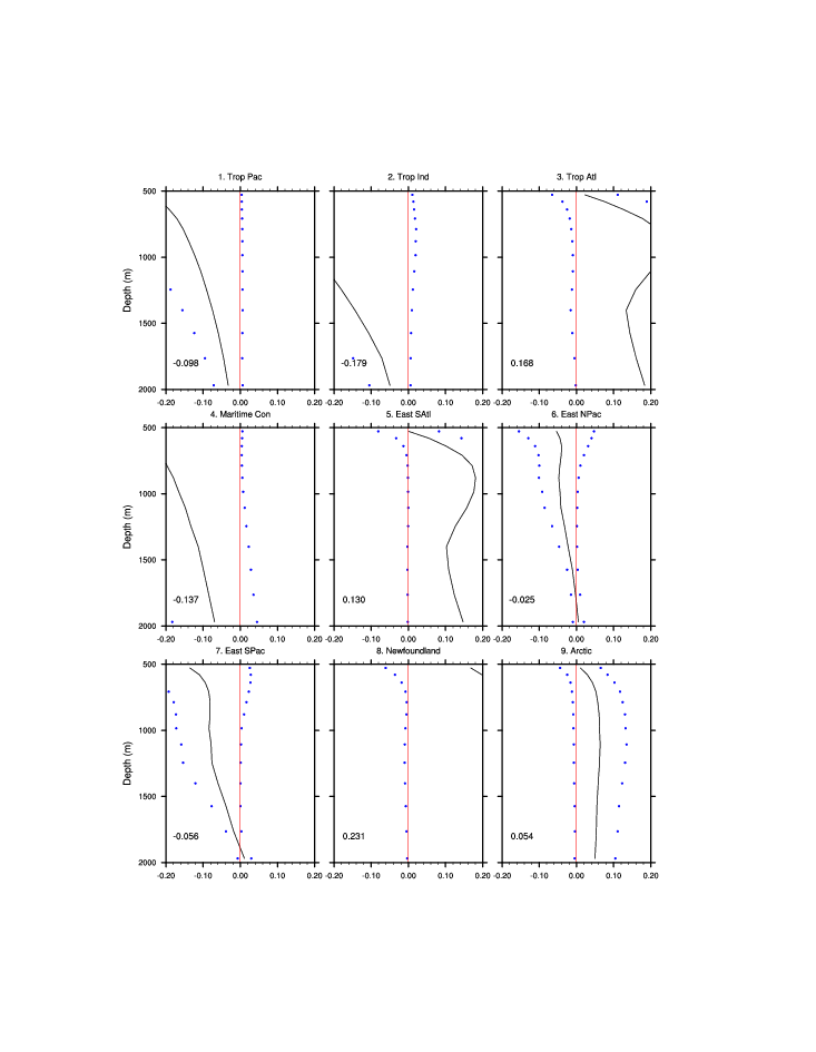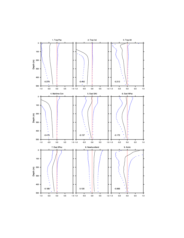 | Regional average T & S anomaly vs. depth