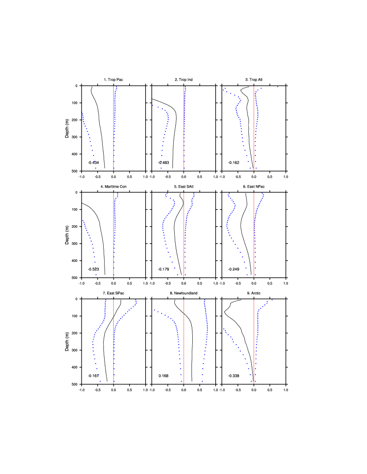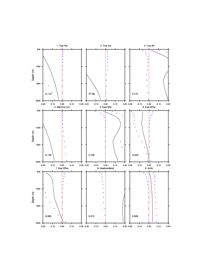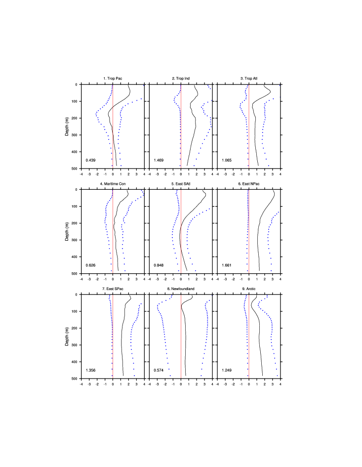| Regional average T & S anomaly vs. depth