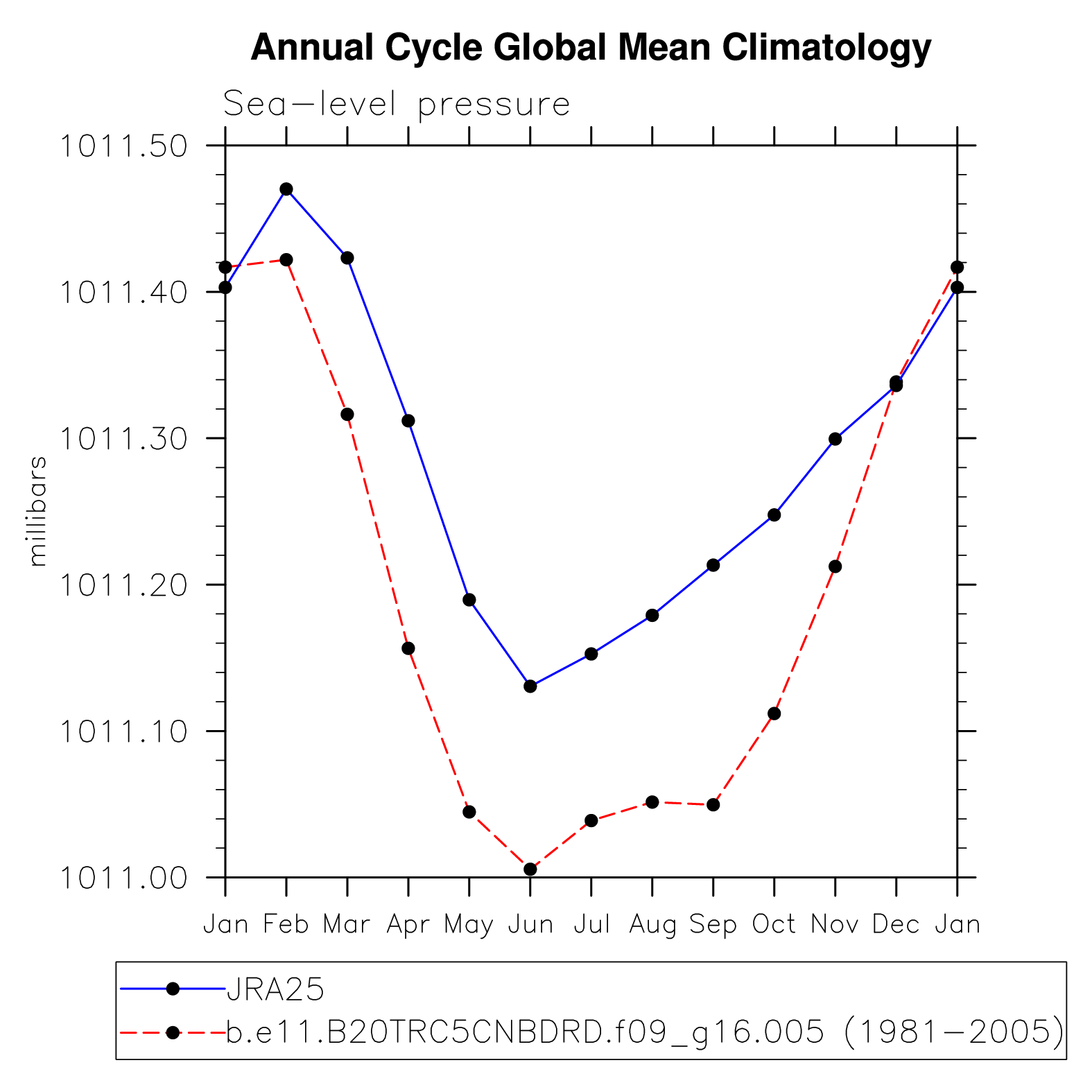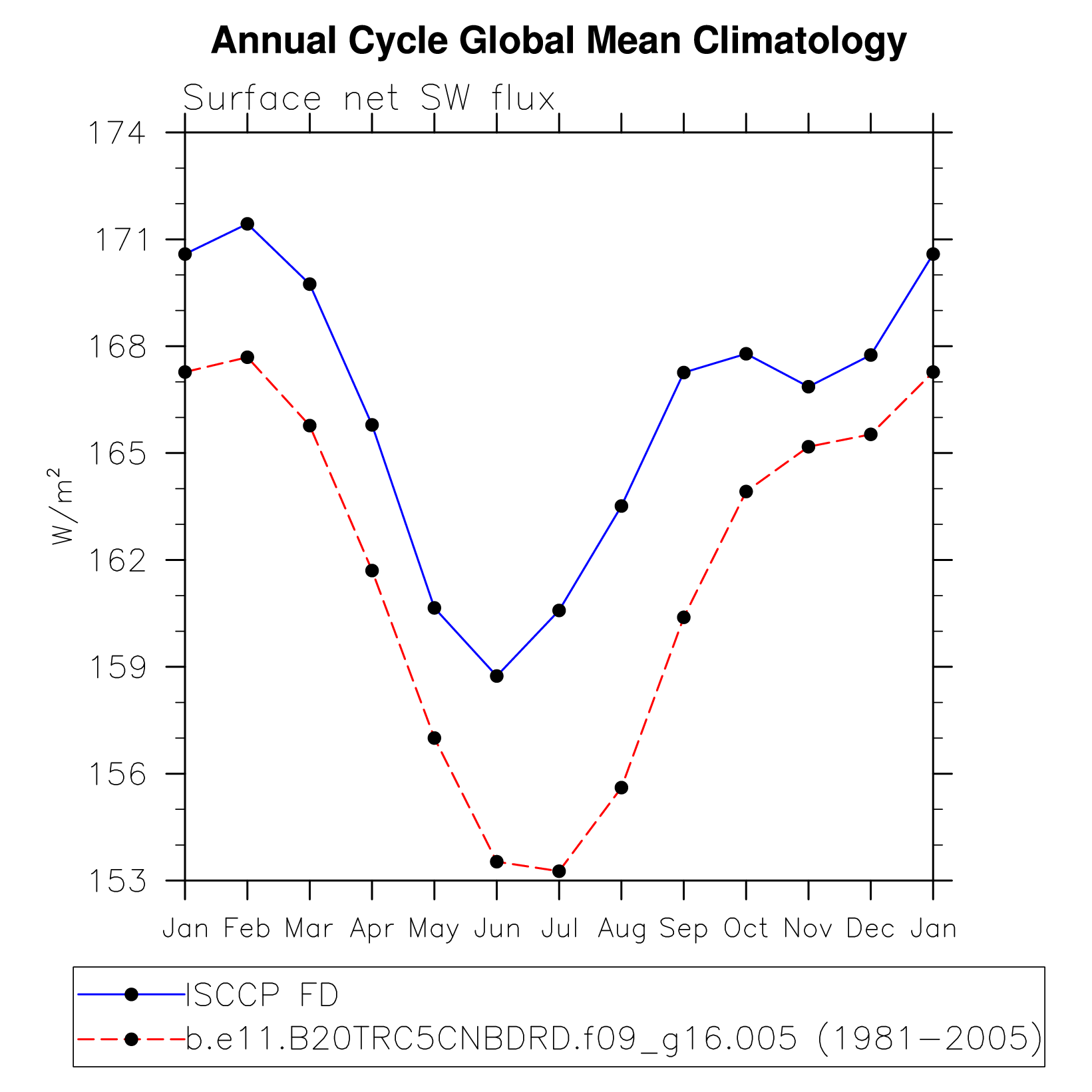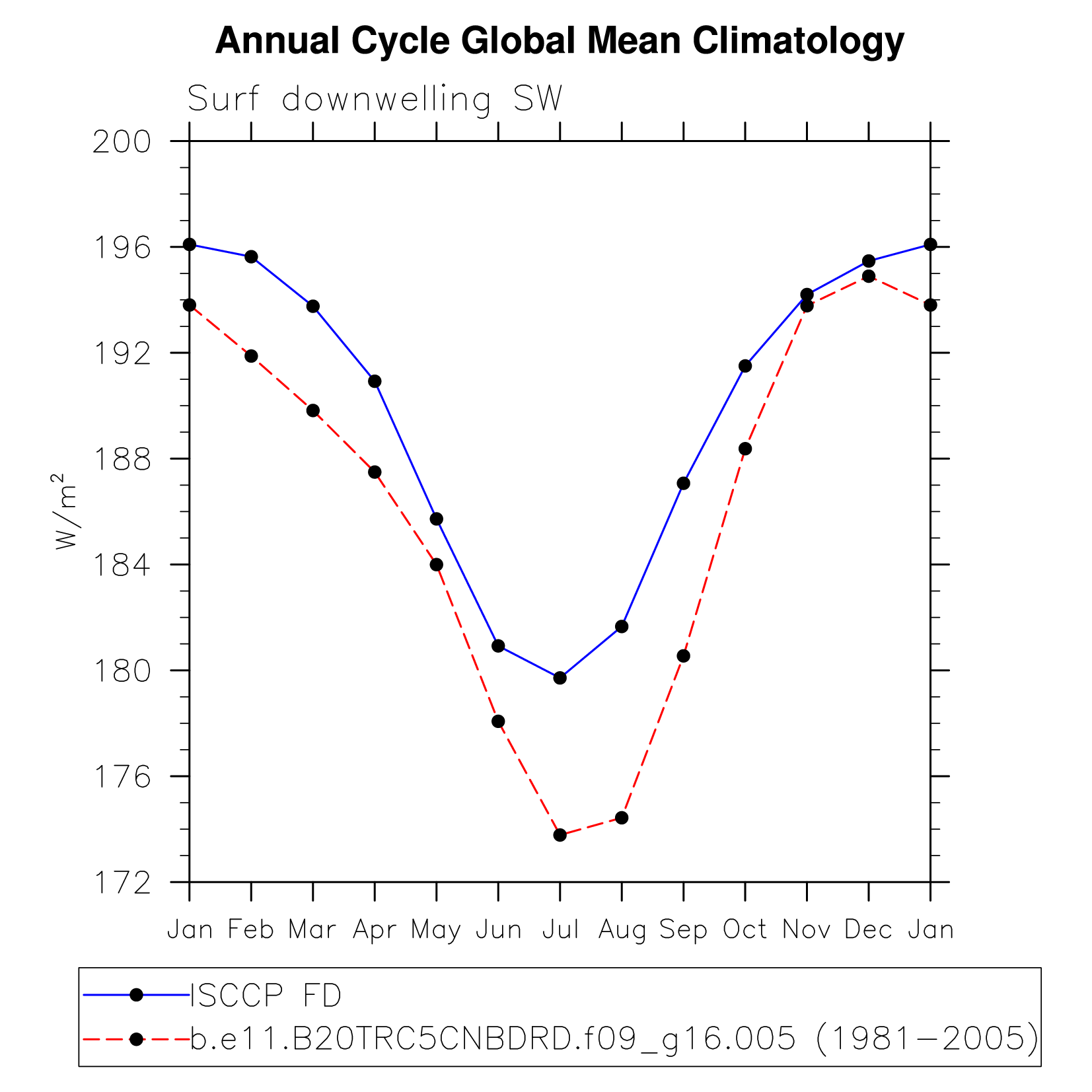 DIAG Set 10 - Annual cycle line plots of global means