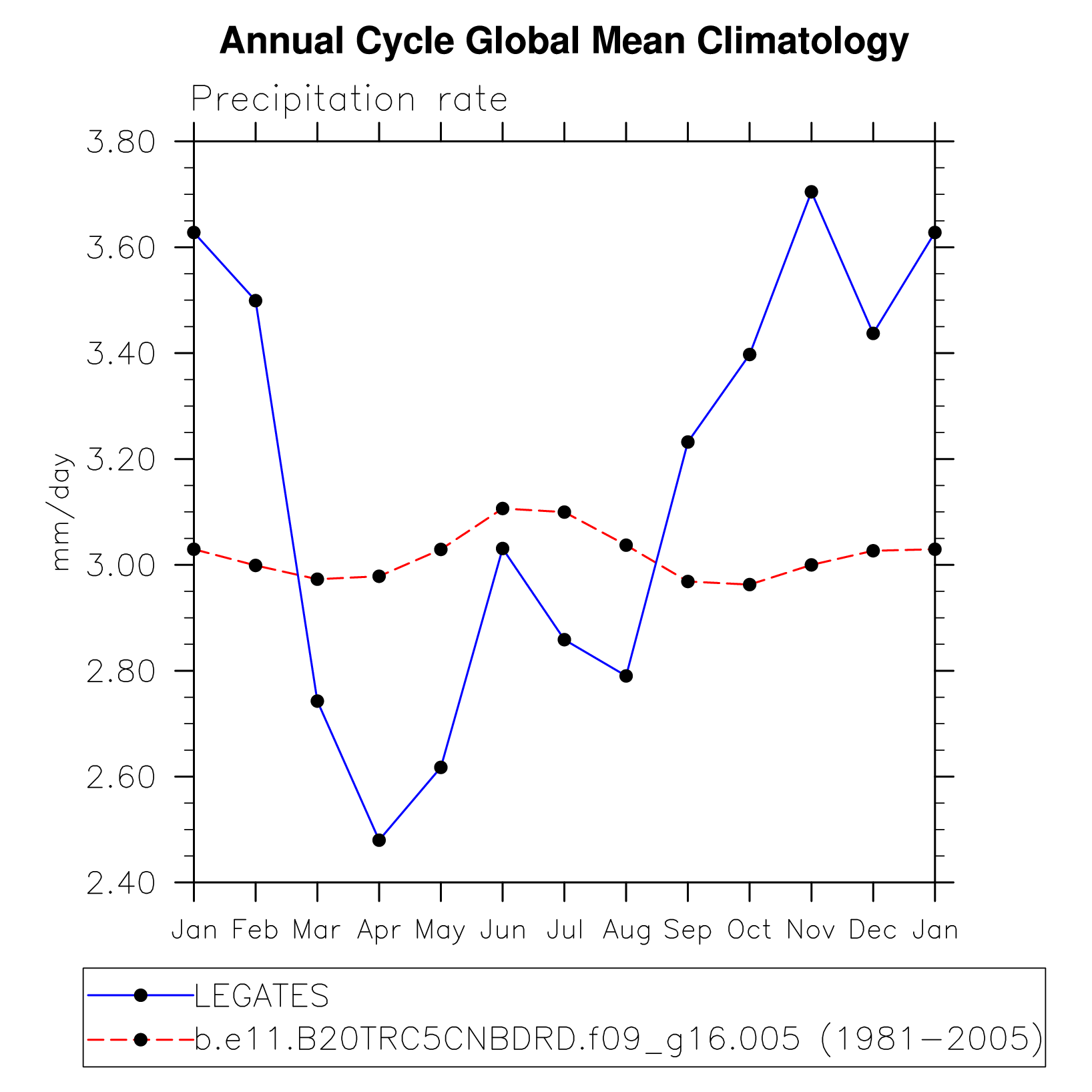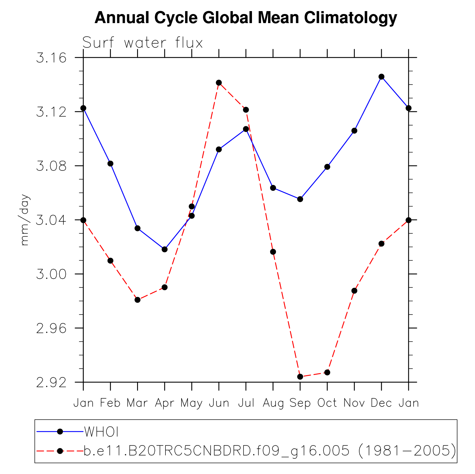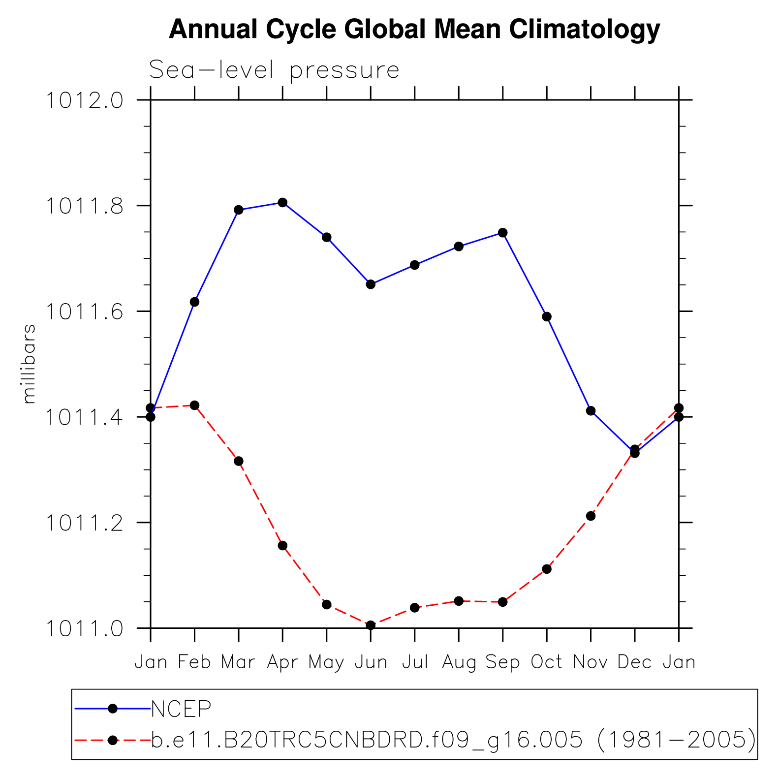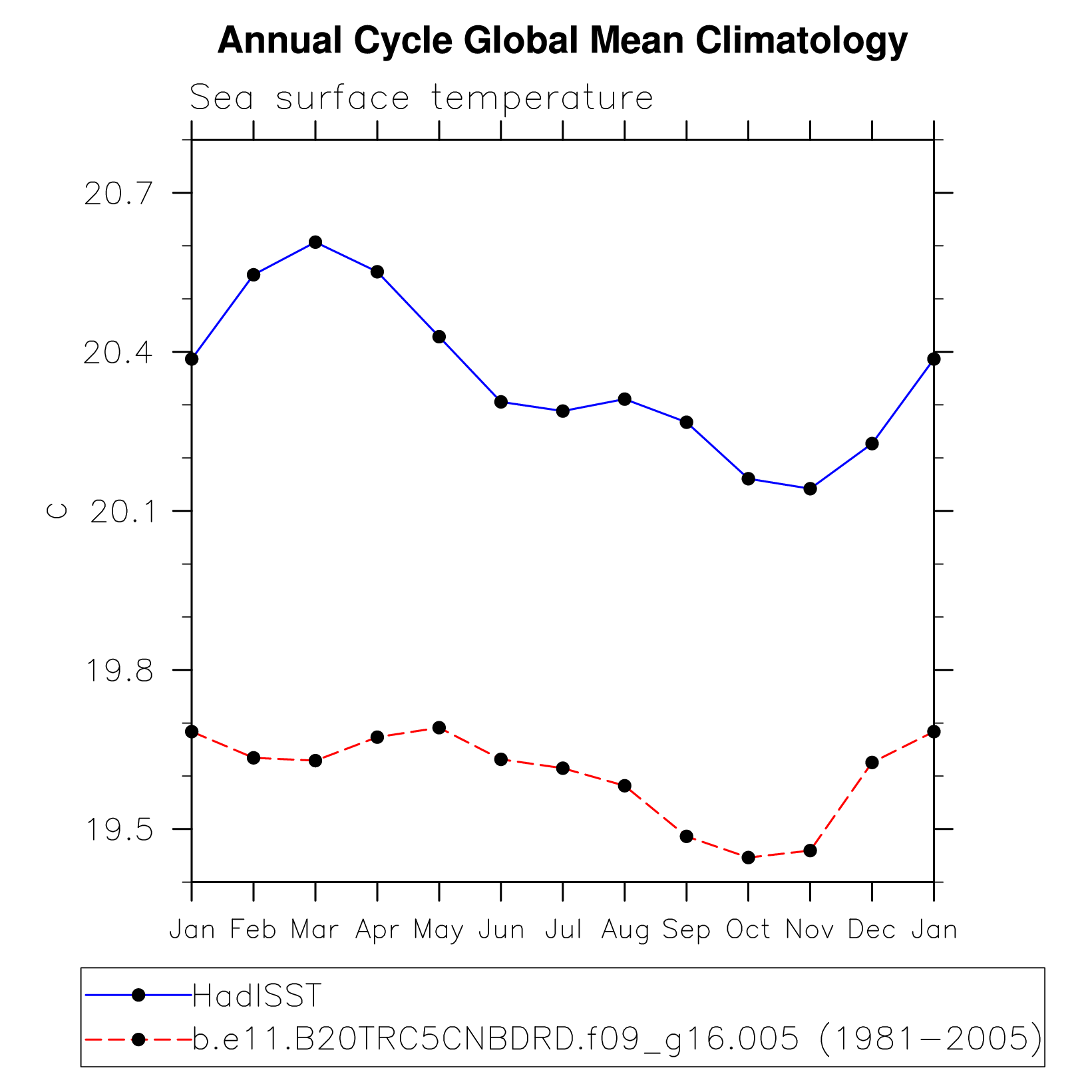 DIAG Set 10 - Annual cycle line plots of global means