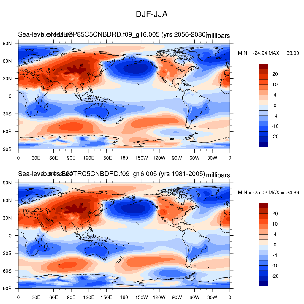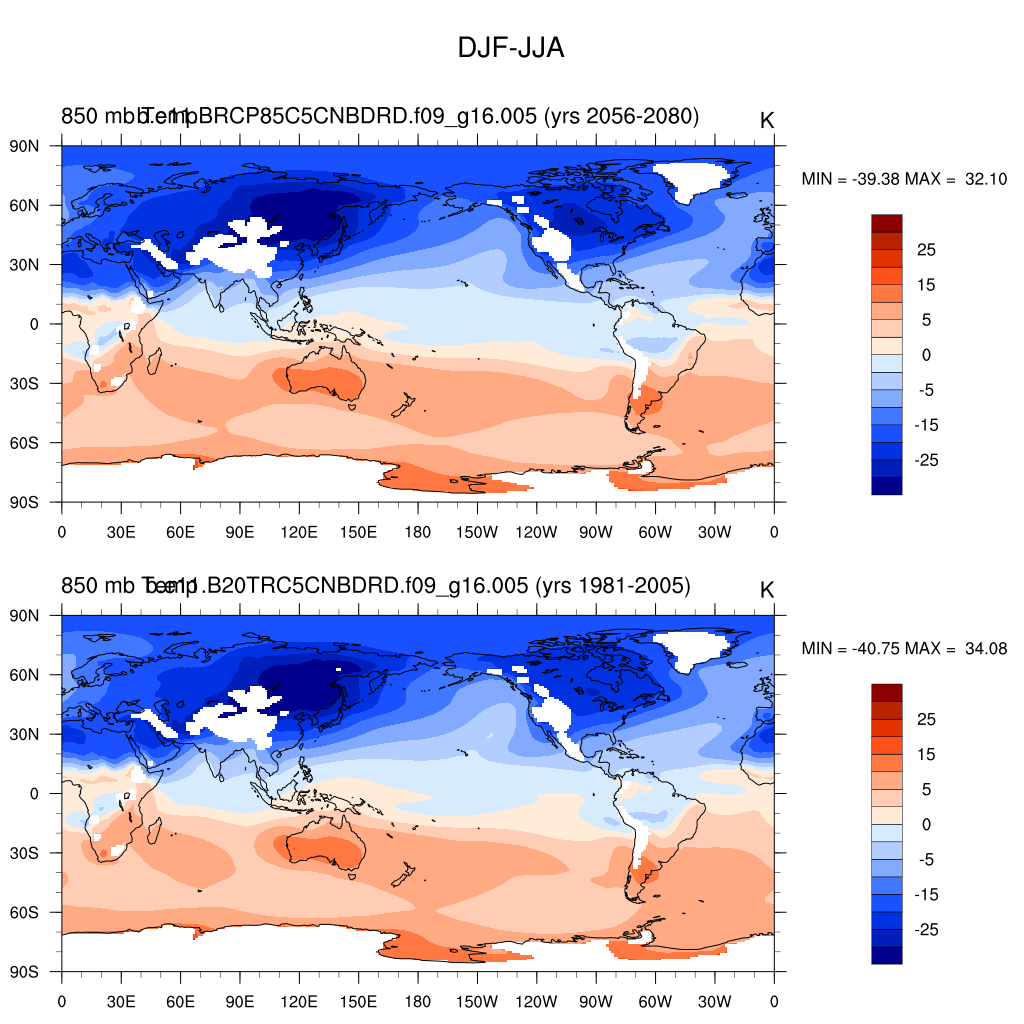 DIAG Set 9 - Horizontal contour plots of DJF-JJA differences