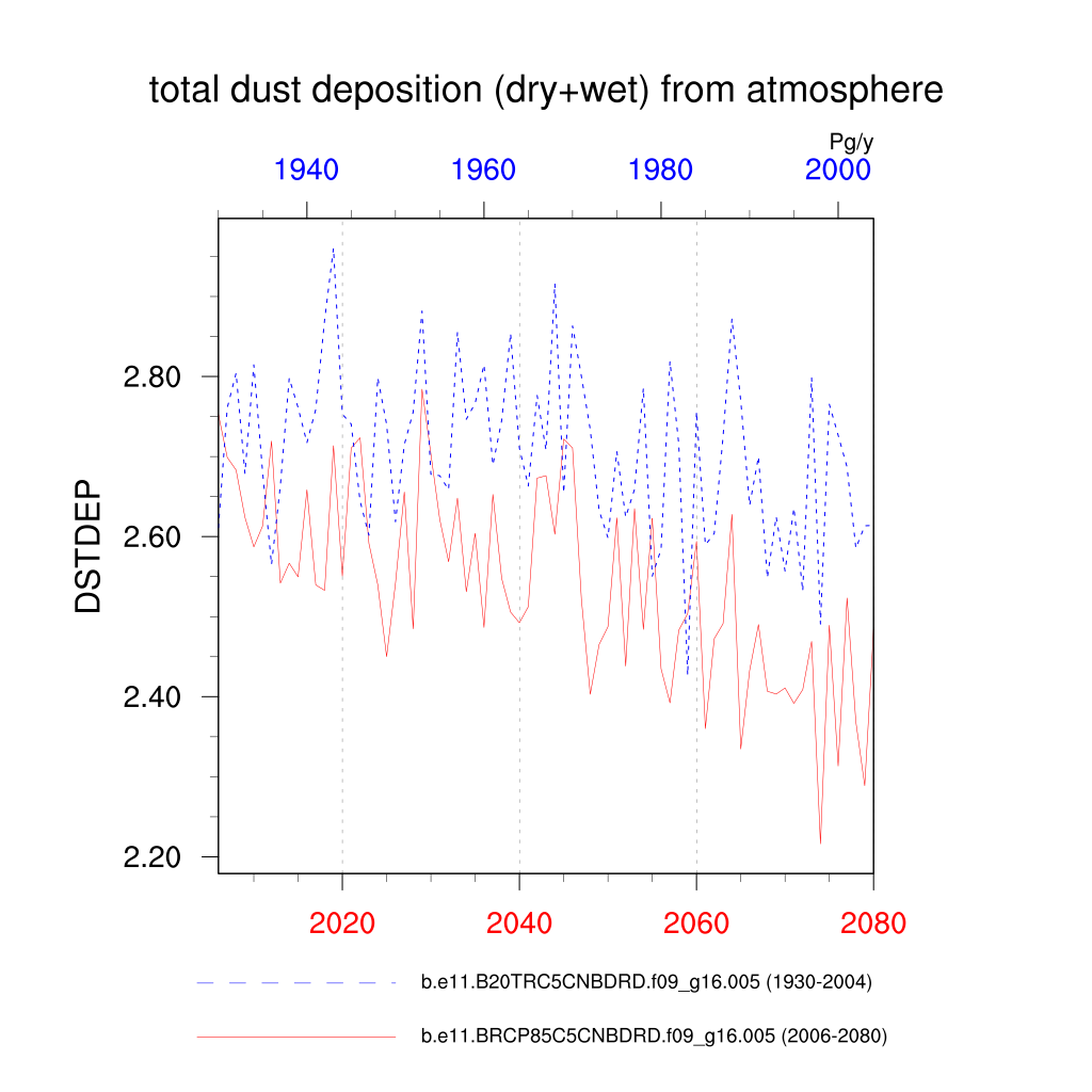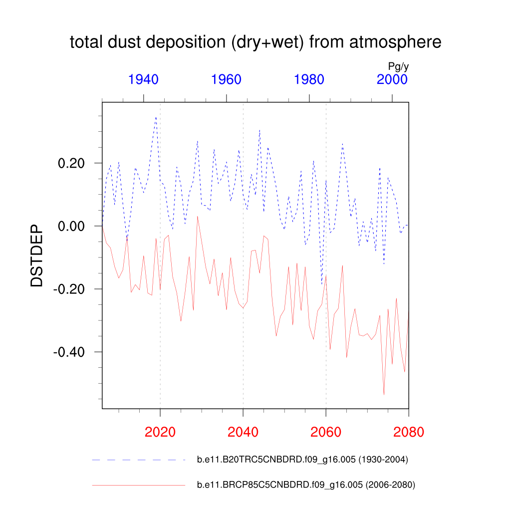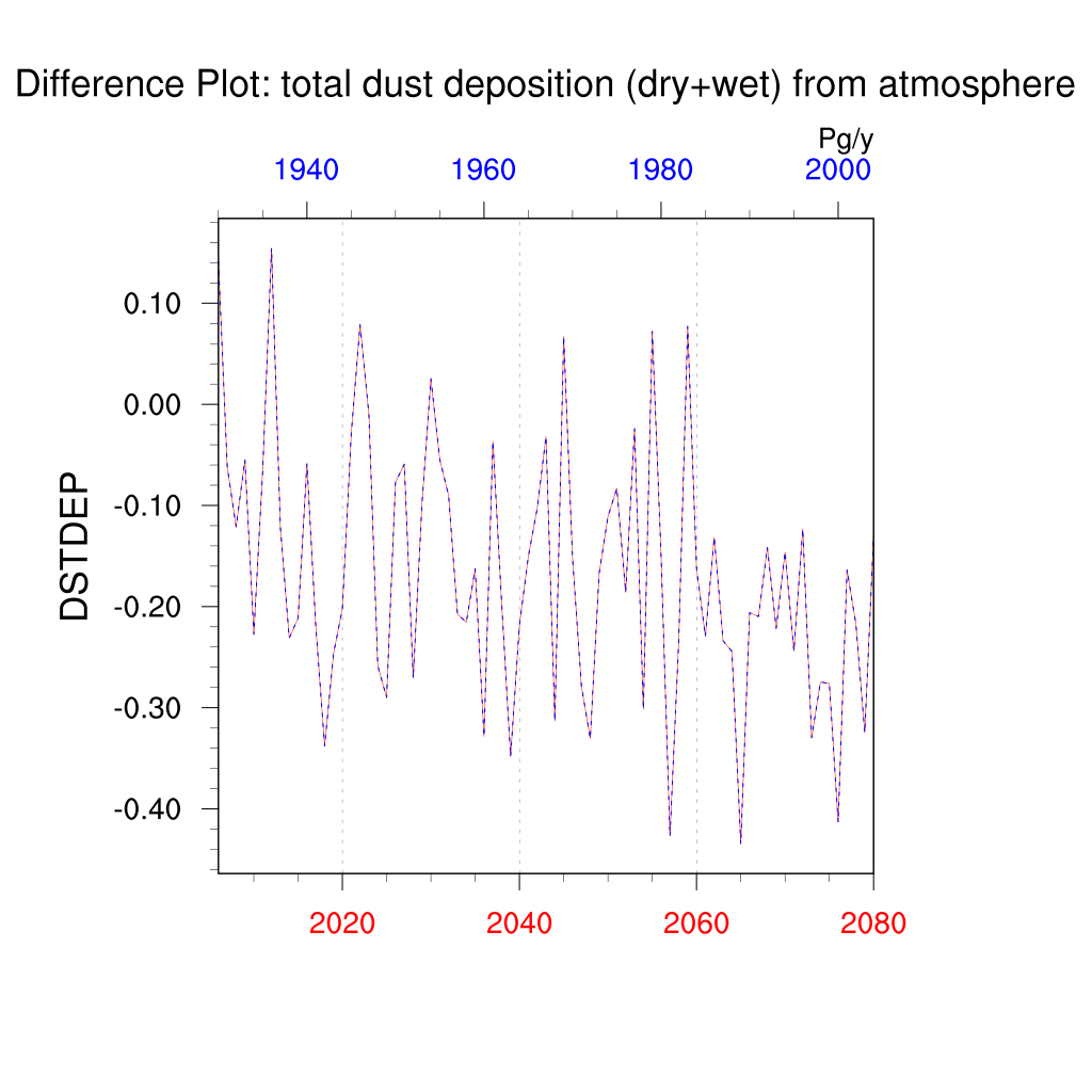 | total dust deposition (dry+wet) from atmosphere (DSTDEP) | TrendPlot | DifferencePlot | AnomalyPlot | ||