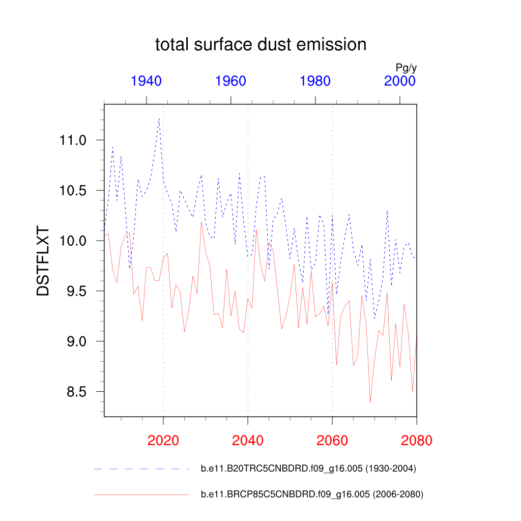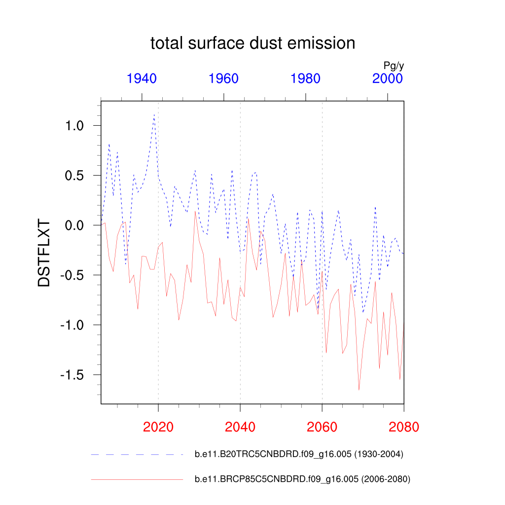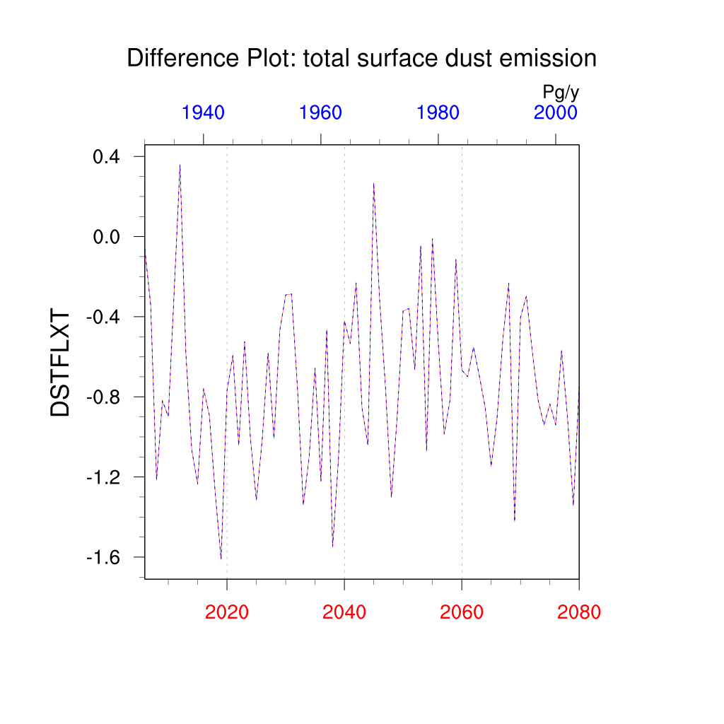 | total surface dust emission (DSTFLXT) | TrendPlot | DifferencePlot | AnomalyPlot | ||
