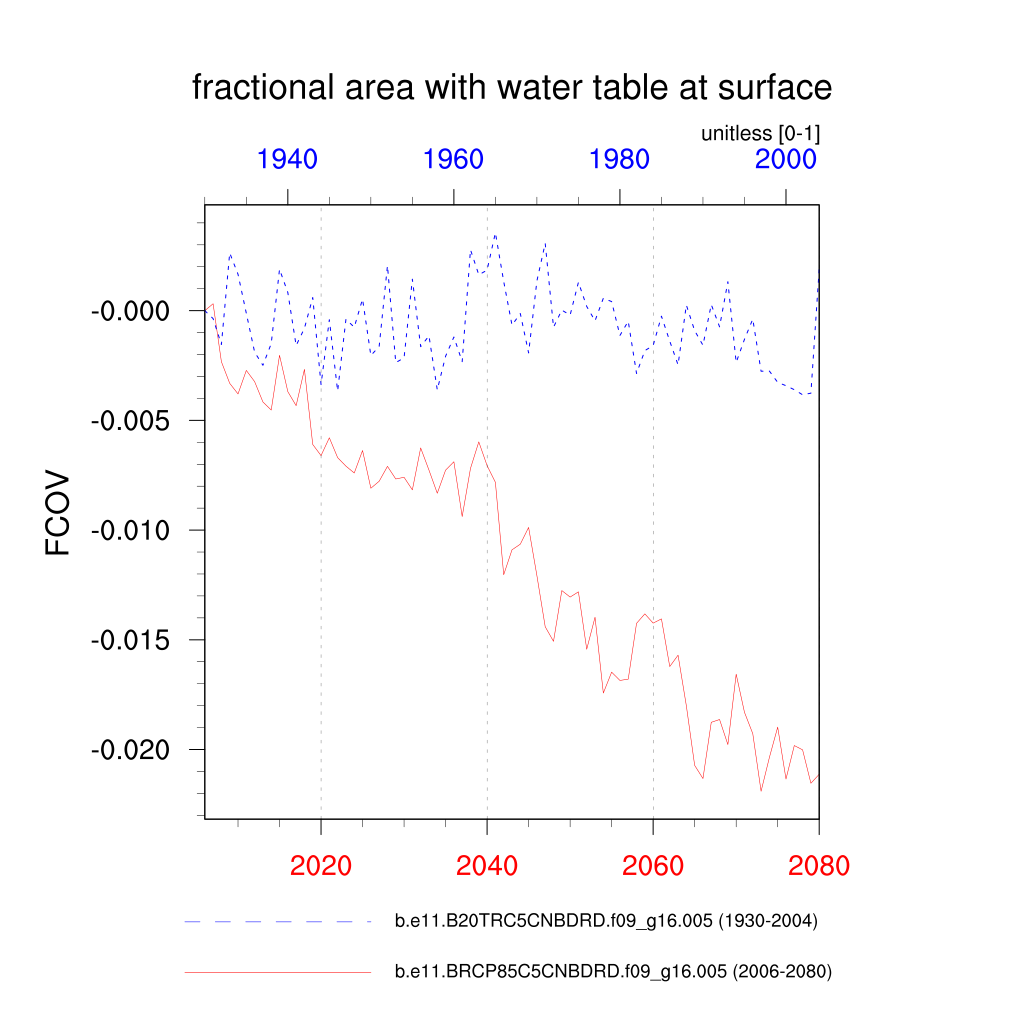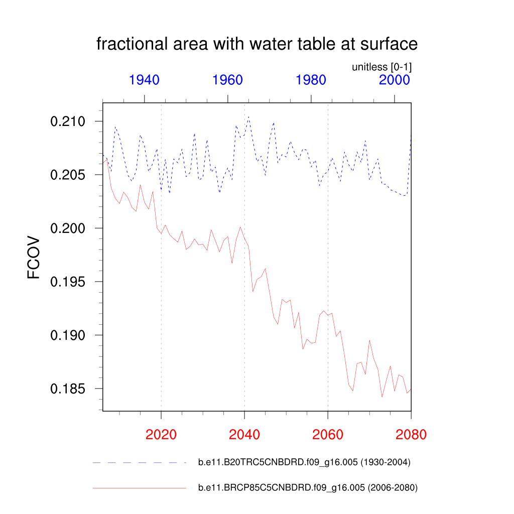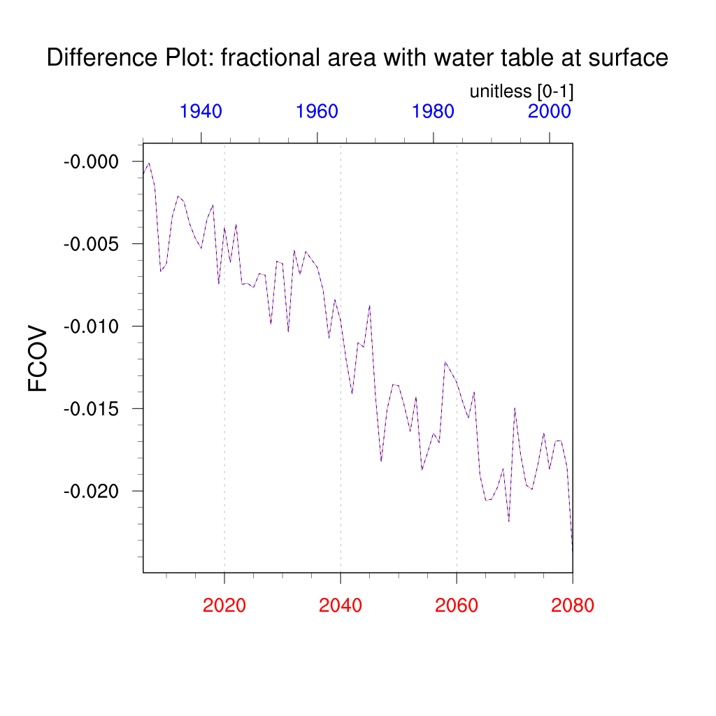 | fractional area with water table at surface (FCOV) | TrendPlot | DifferencePlot | AnomalyPlot | ||