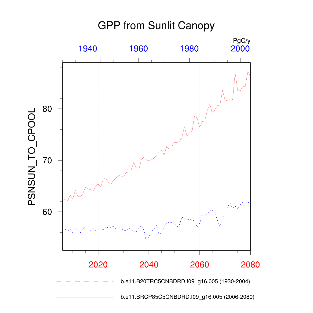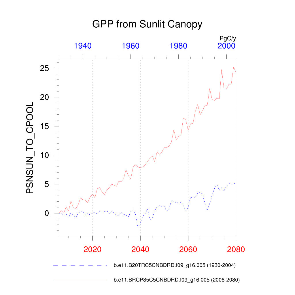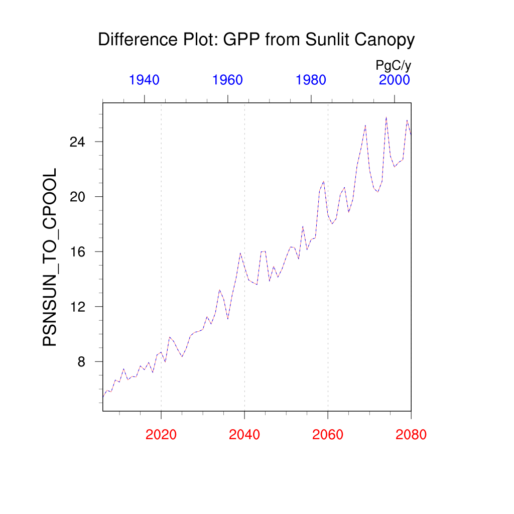 | GPP from Sunlit Canopy (PSNSUN_TO_CPOOL) | TrendPlot | DifferencePlot | AnomalyPlot | ||