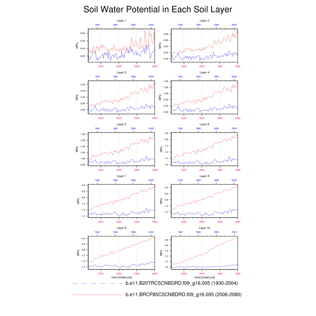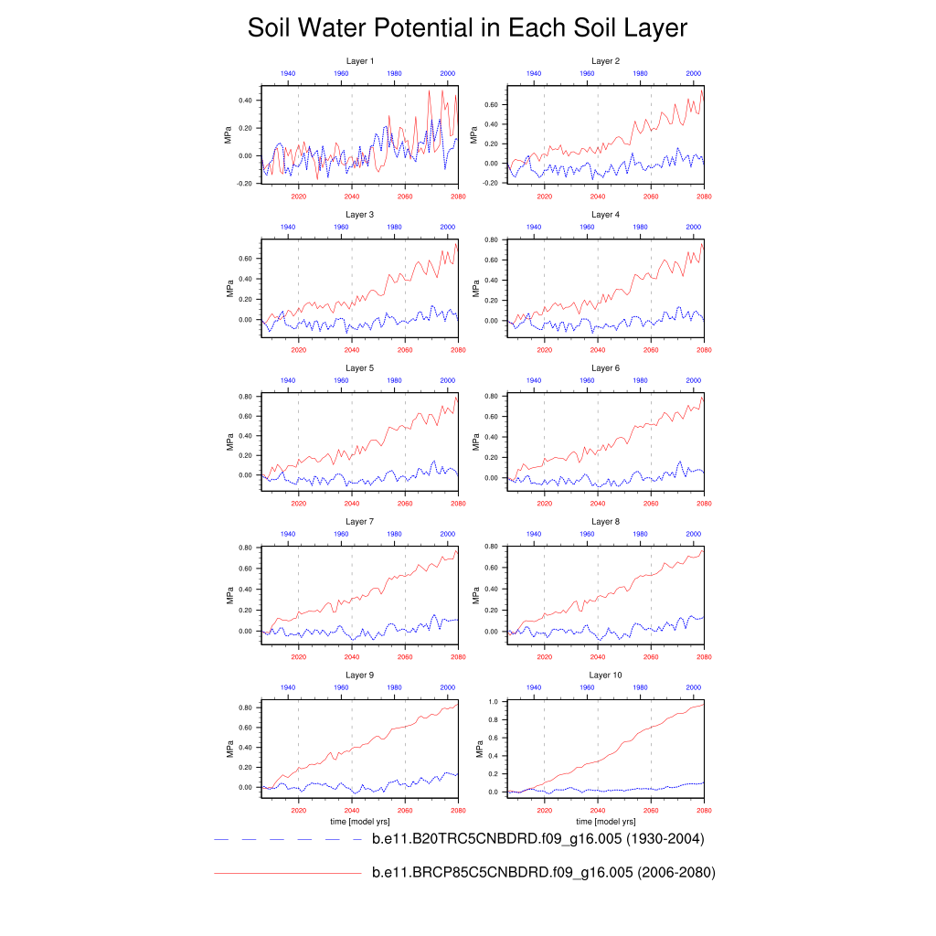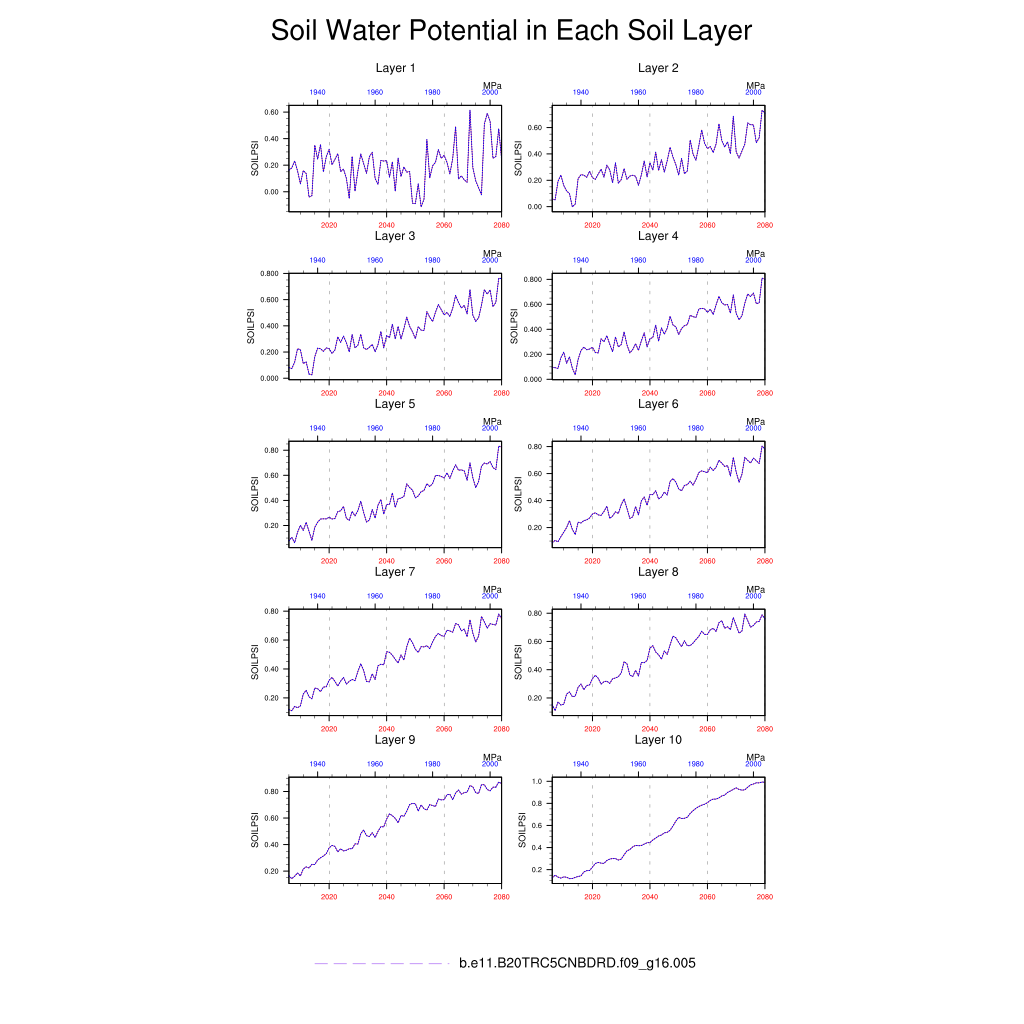 | Soil Water Potential in Each Soil Layer (SOILPSI) | TrendPlot | DifferencePlot | AnomalyPlot | ||