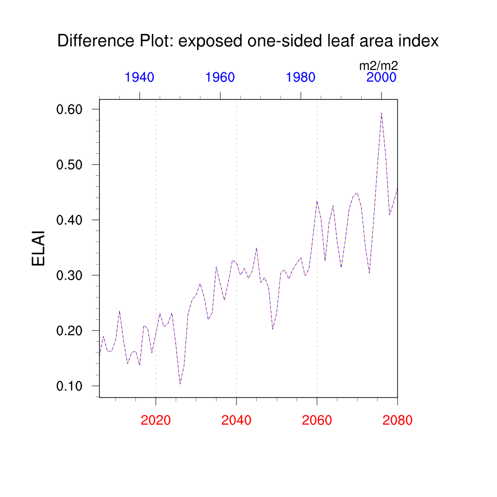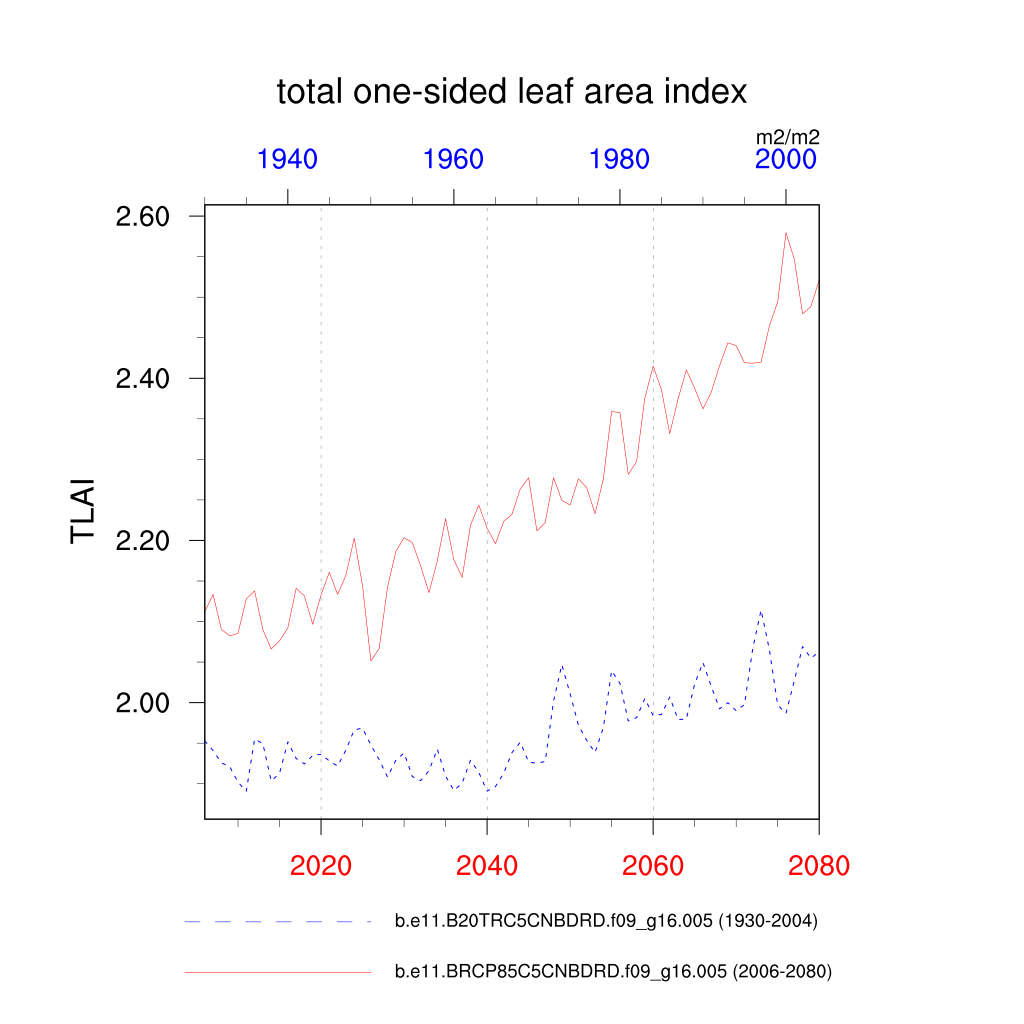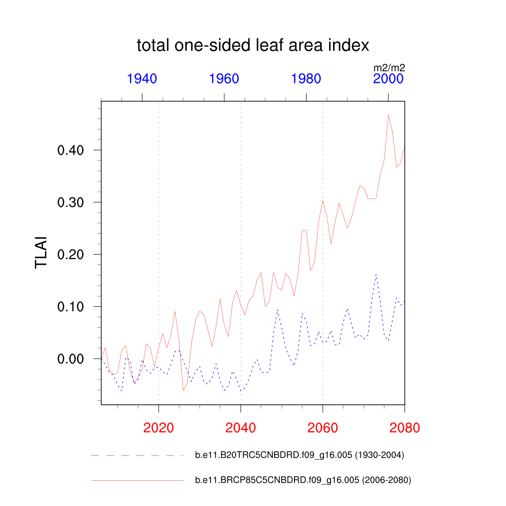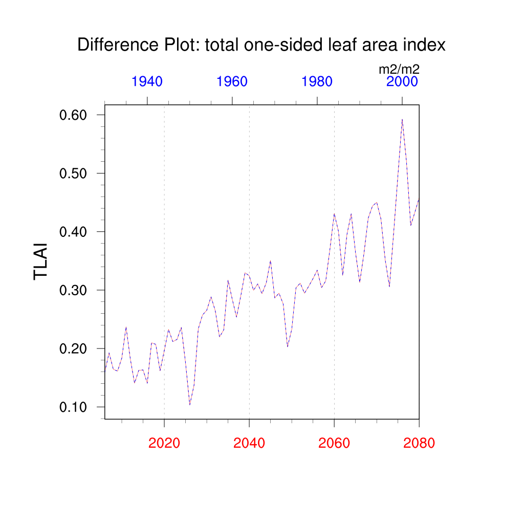 | total one-sided leaf area index (TLAI) | TrendPlot | DifferencePlot | AnomalyPlot | ||