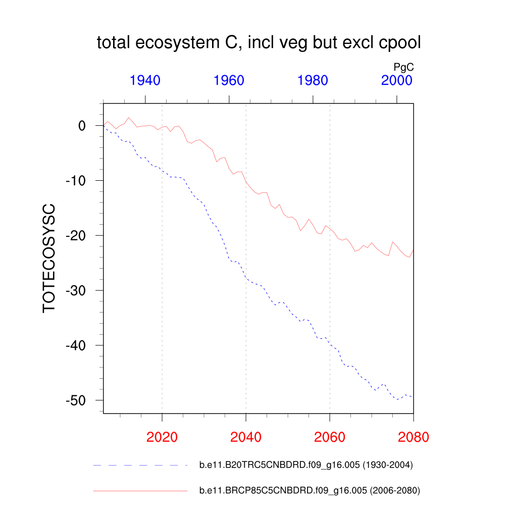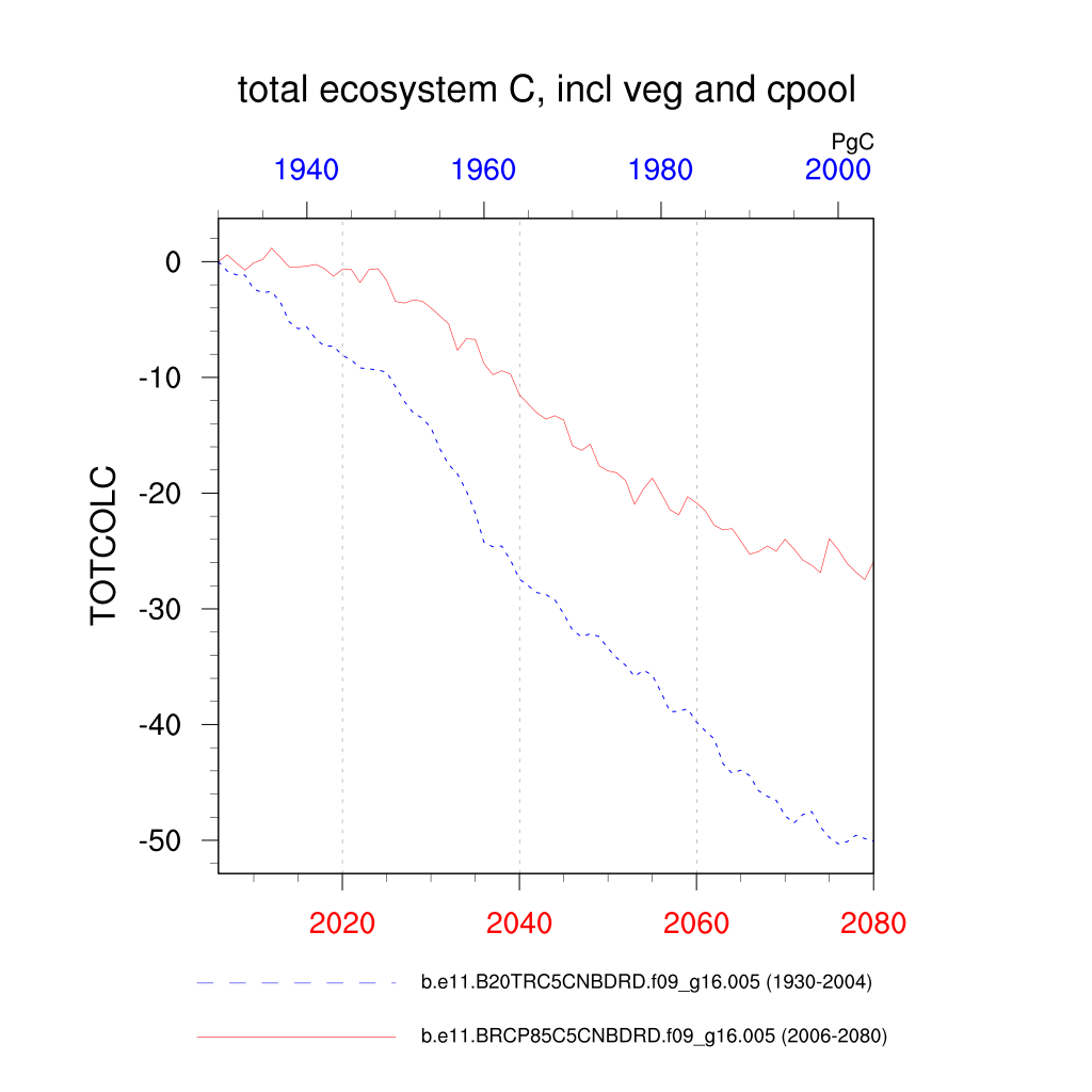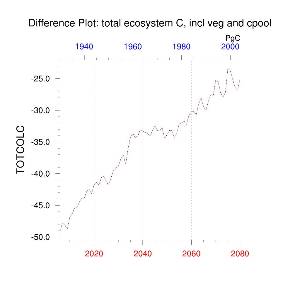 | total ecosystem C, incl veg and cpool (TOTCOLC) | TrendPlot | DifferencePlot | AnomalyPlot | ||