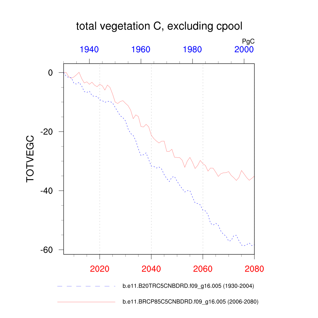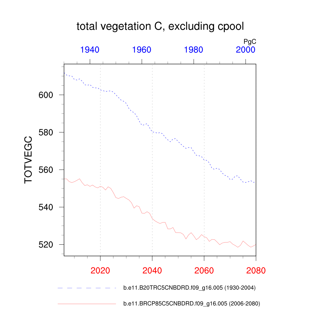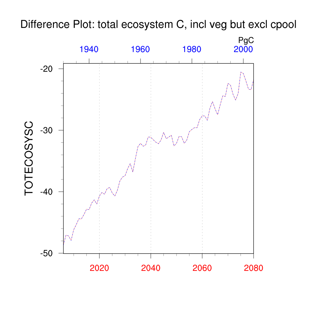| total vegetation C, excluding cpool (TOTVEGC) | TrendPlot | DifferencePlot | AnomalyPlot | ||